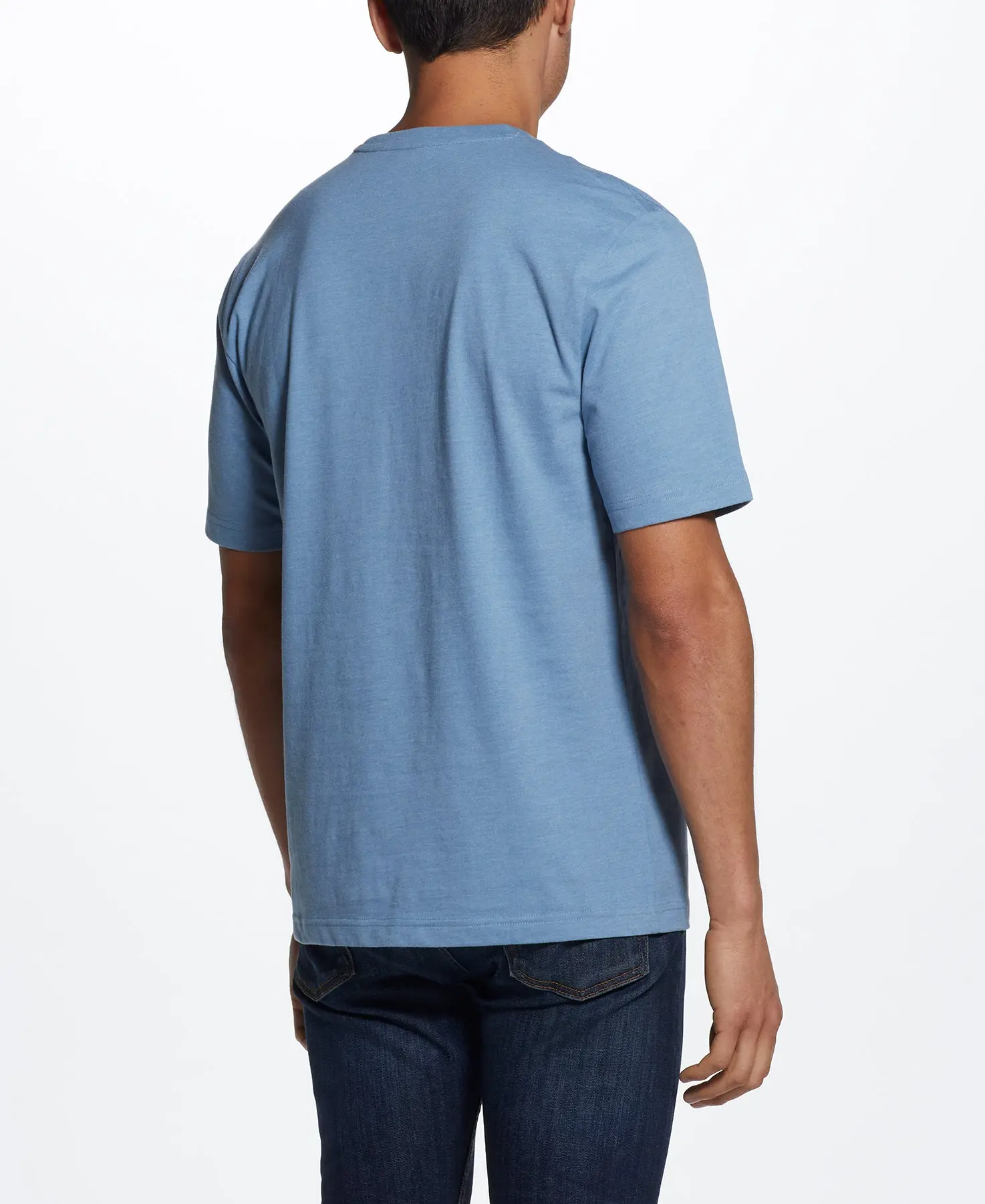 Short Sleeve Sueded Microstripe Henley In Sea Spray