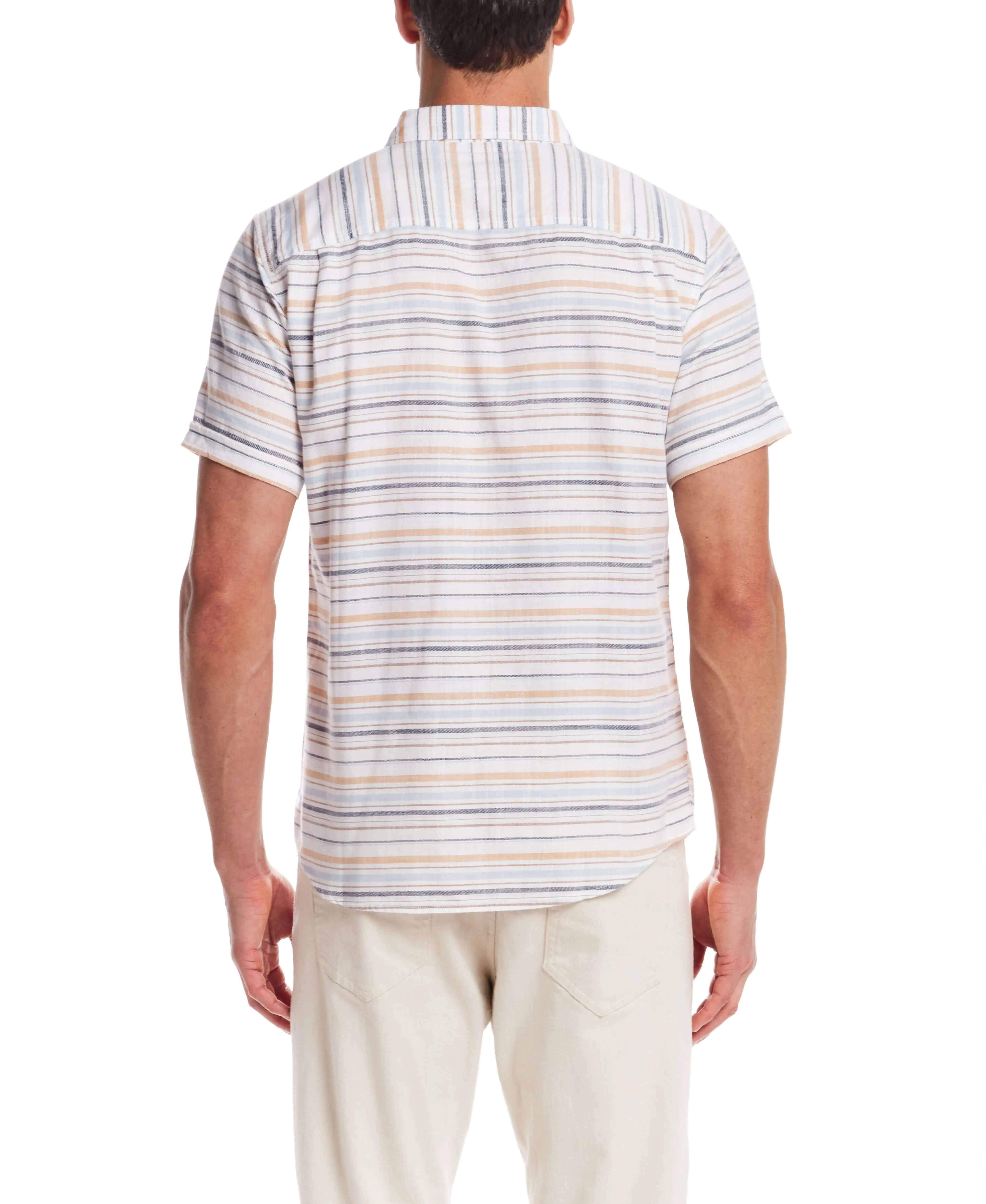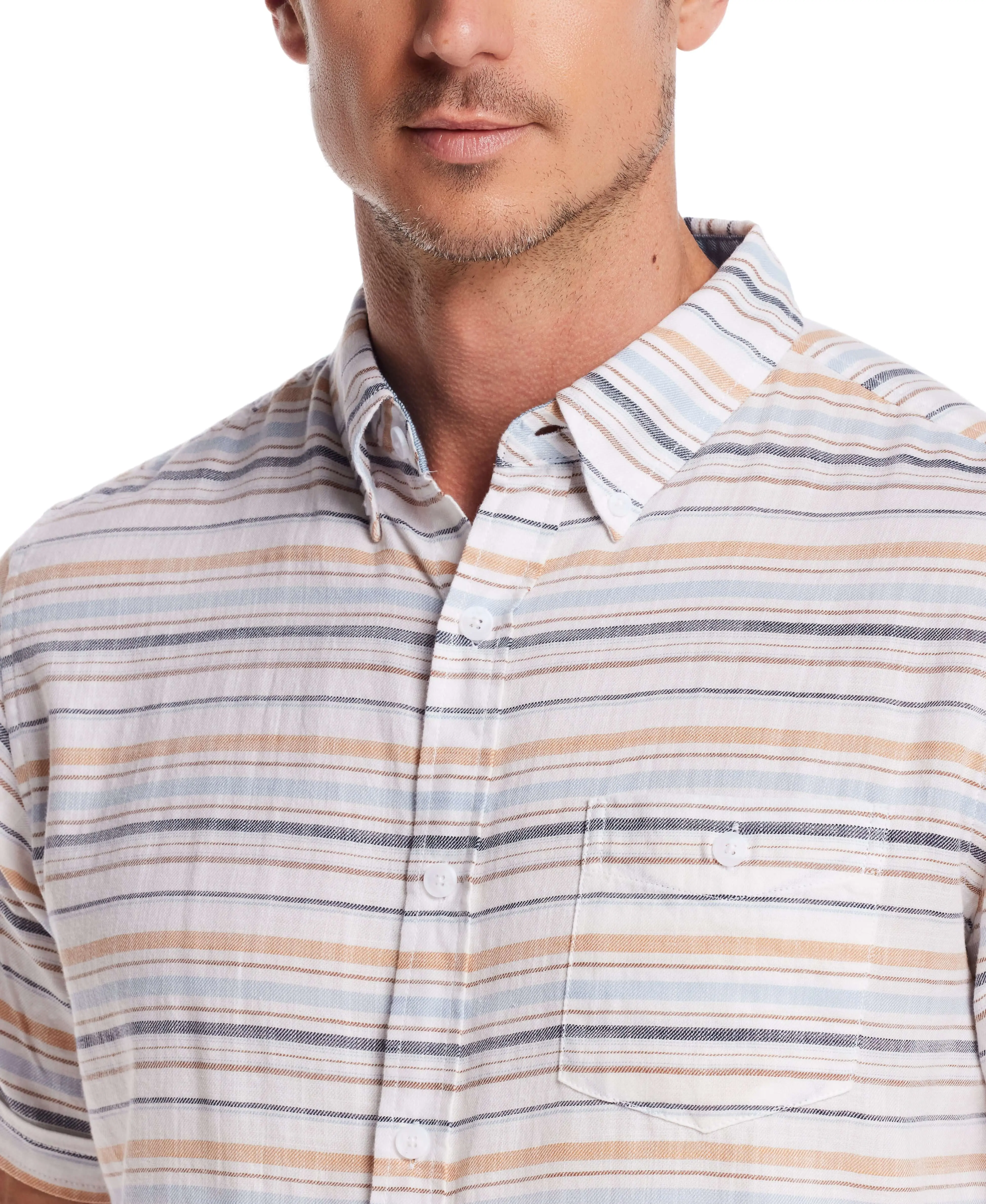 Short Sleeve Country Twill Stripe Shirt in White Sand