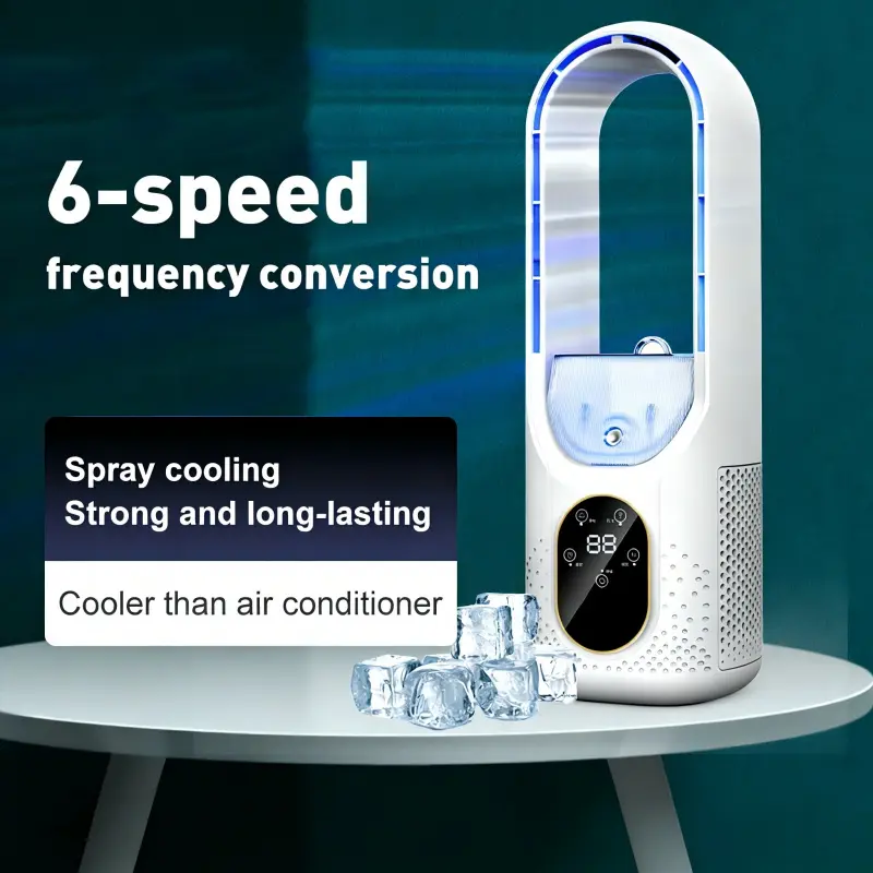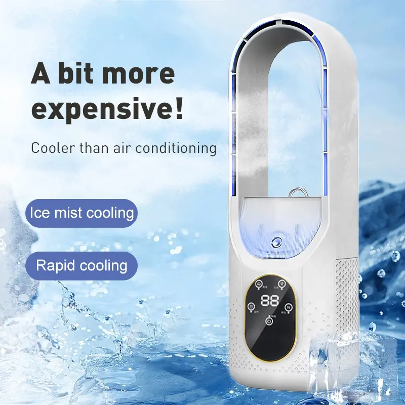 Mini Desktop Fan, Office Cooling Humidifier, Leafless Spray Cooler, USB Cold Fan, Energy Efficient, Perfect for Home & Office Use
