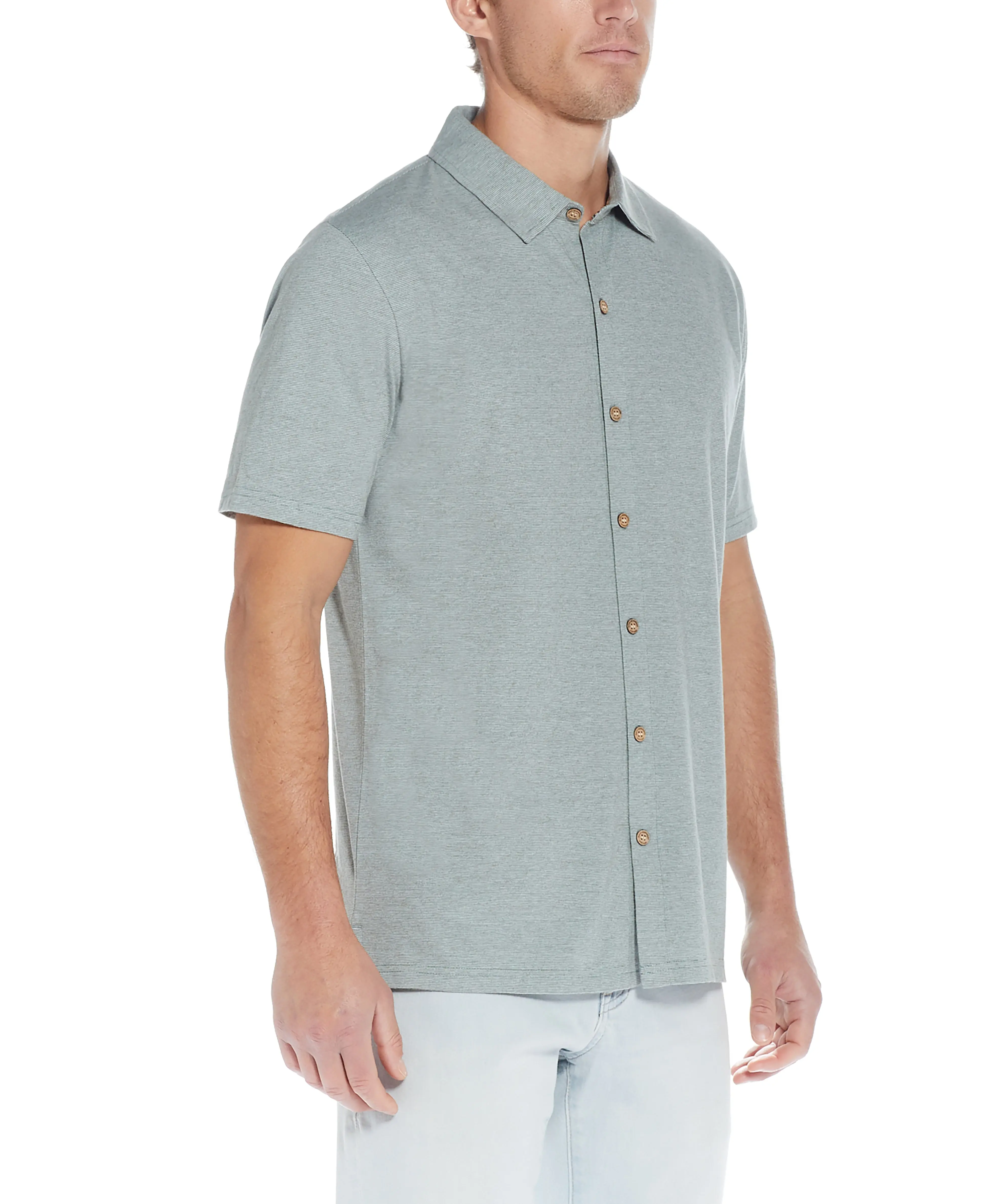 Short Sleeve Sueded Microstripe Henley In Sea Spray