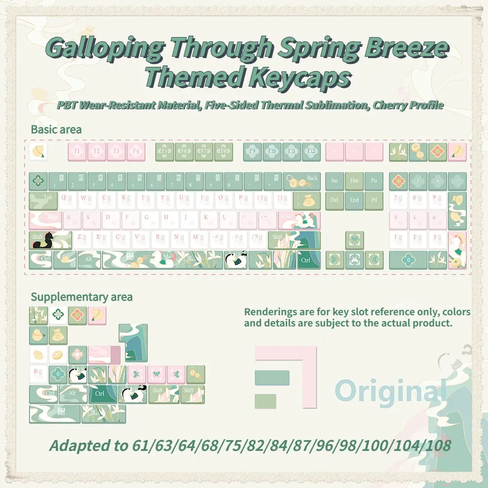 New Galloping Through Spring Breeze Theme Keycaps, Cherry Profile, Dual Color Pbt, Heat Transfer, Durable, High Aesthetic, for Mechanical Keyboard Players