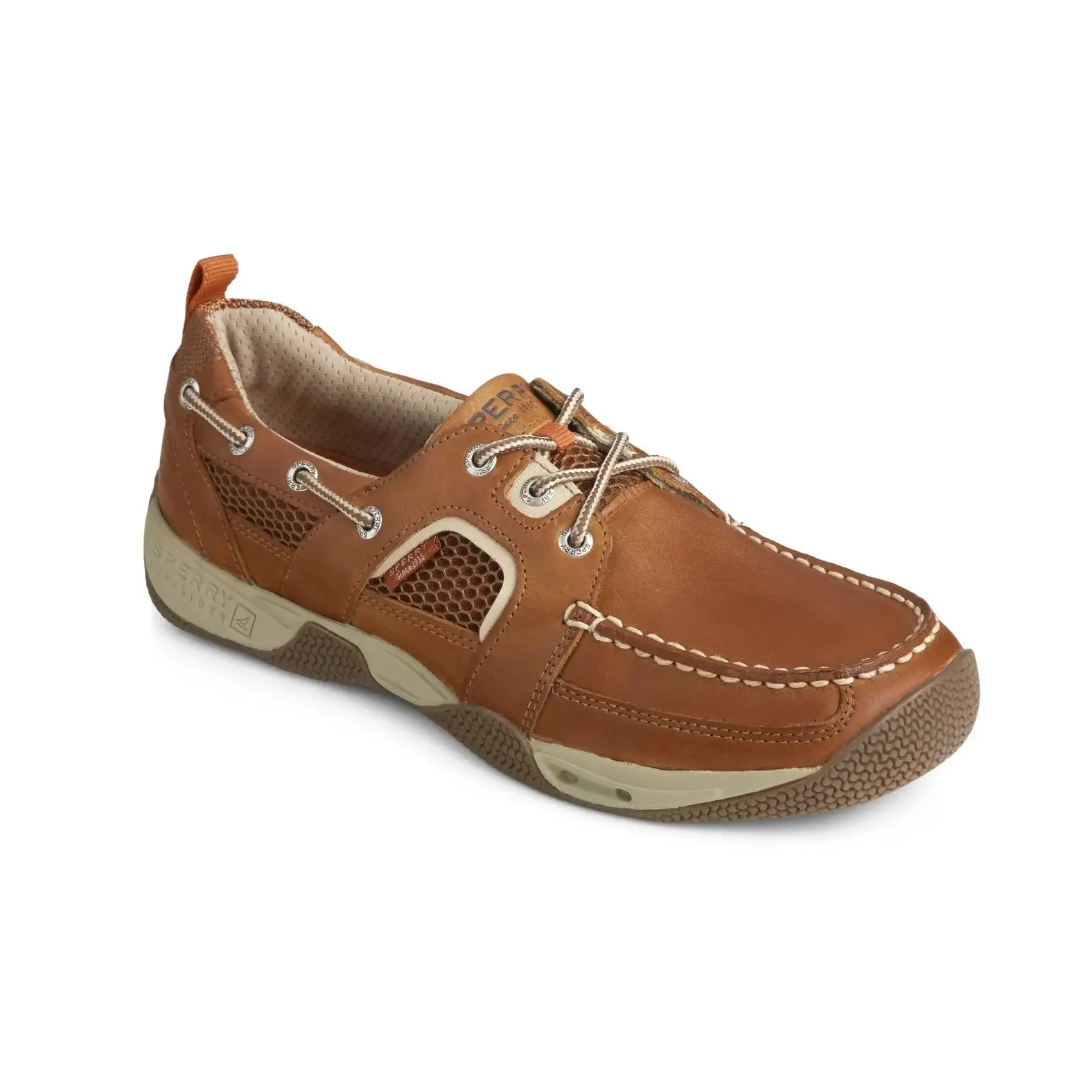 The Sperry Men's Sea Kite Sport Moc boat shoe combines classic boat shoe design with water-ready performance. Full-grain leather and handsewn construction deliver durability, while the molded EVA midsole absorbs impact and the Adaptive Wave Siping outsole grips wet and dry surfaces. The 360° Lacing System provides a customized fit, and the removable compression-molded footbed ensures all-day comfort. Versatile enough for deck or water, styled for everyday wear.