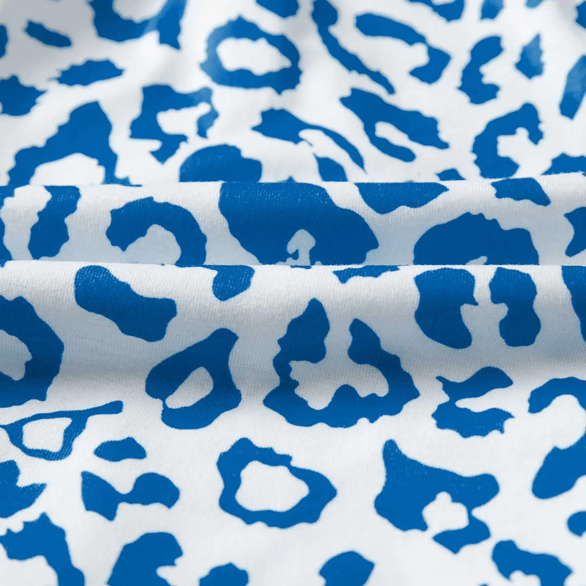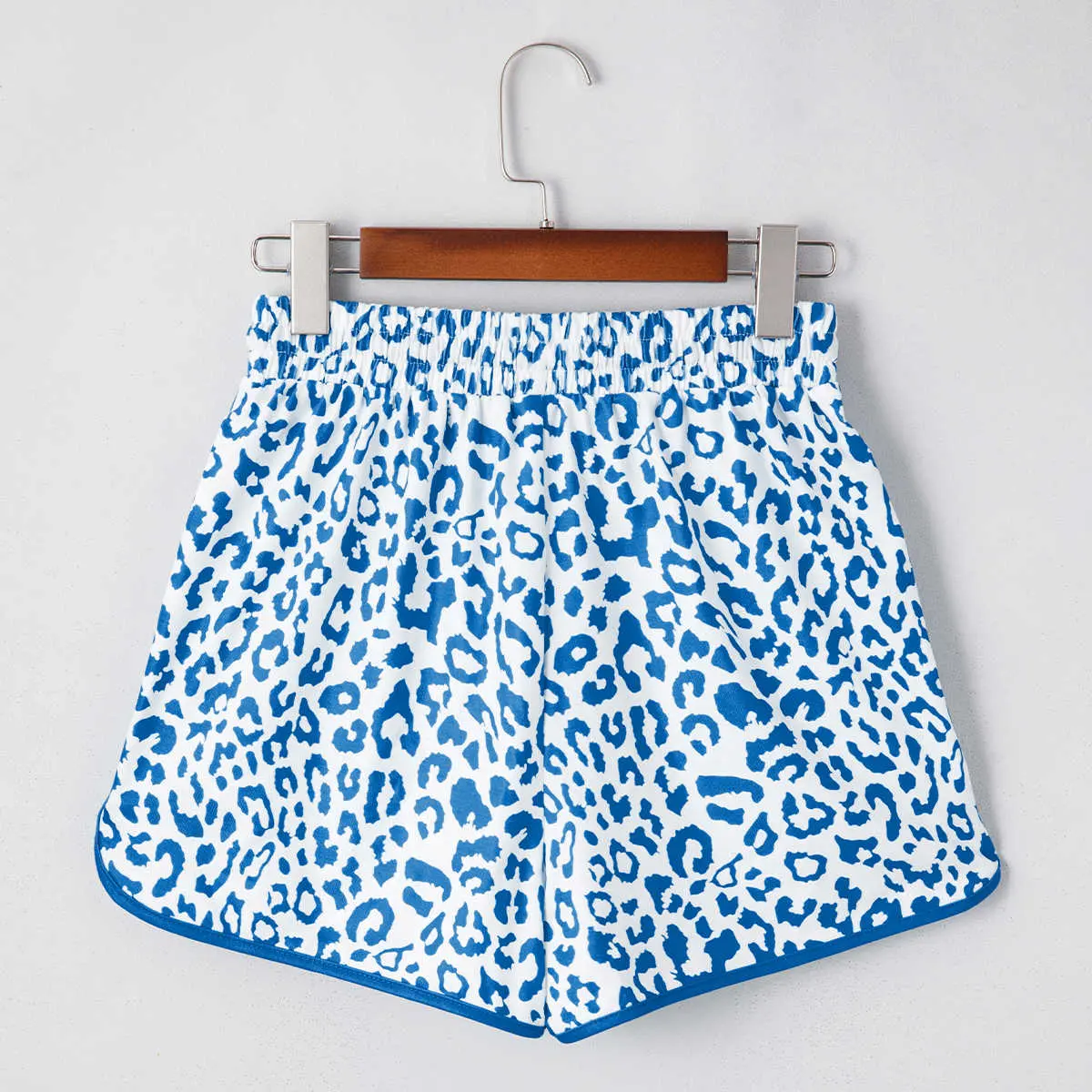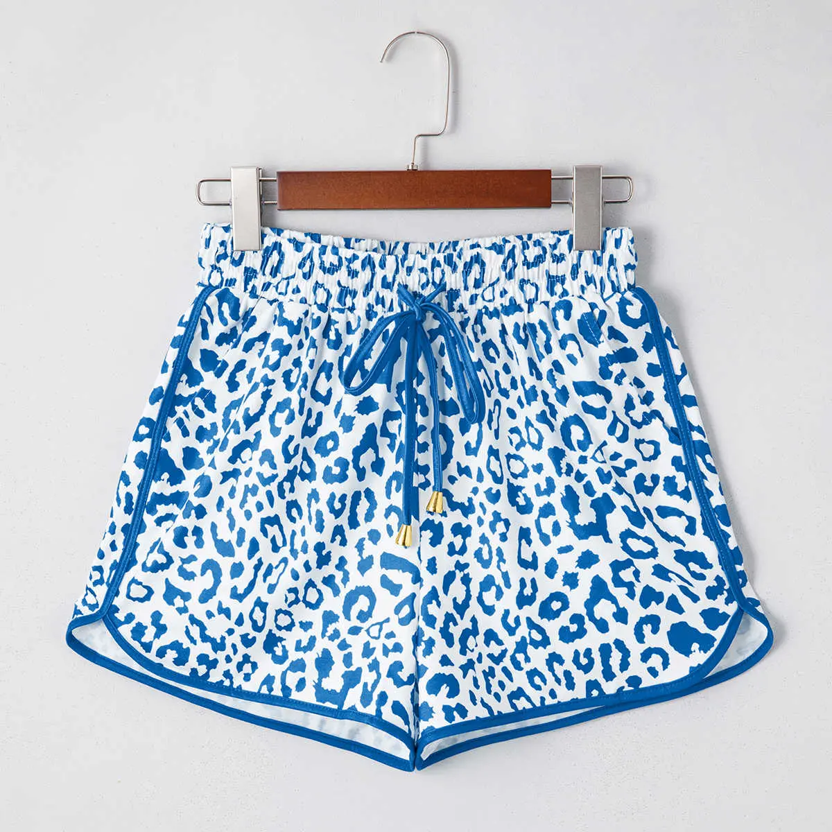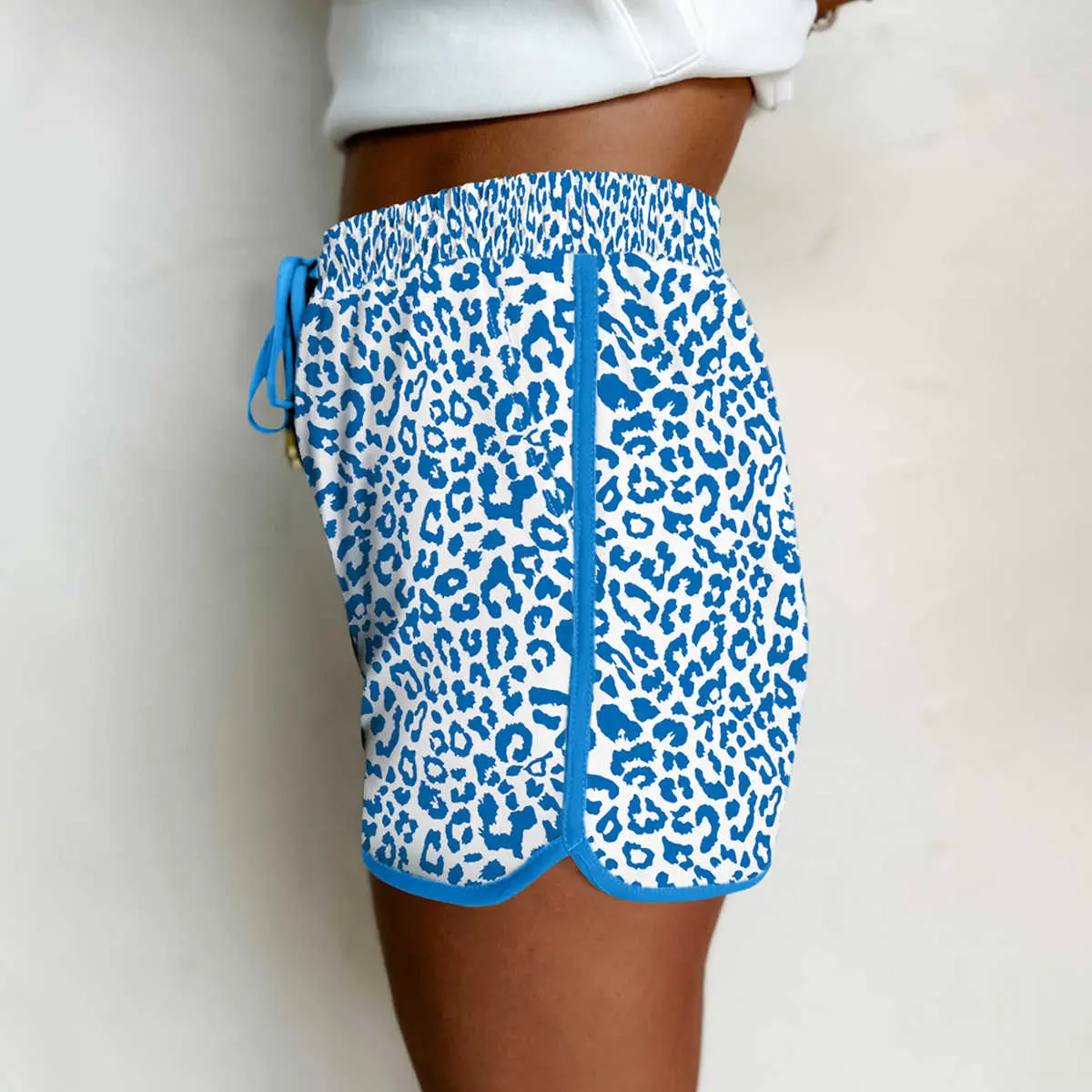 Blue Leopard Elastic Waistband Lace up Contrast Trim Casual Shorts