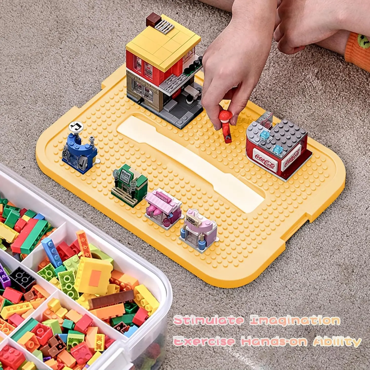 Toys Organizer Storage Case for Lego Box Kids Toy Stackable Building Blocks with Lids Bins Adjustable Lego Storage Containers Plastic Toy Box 1 Layer (Lemon)