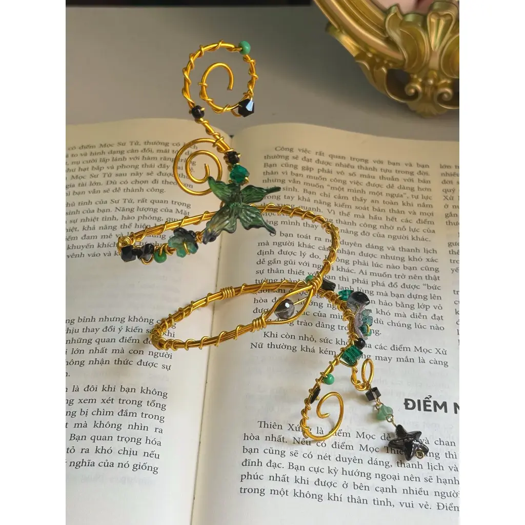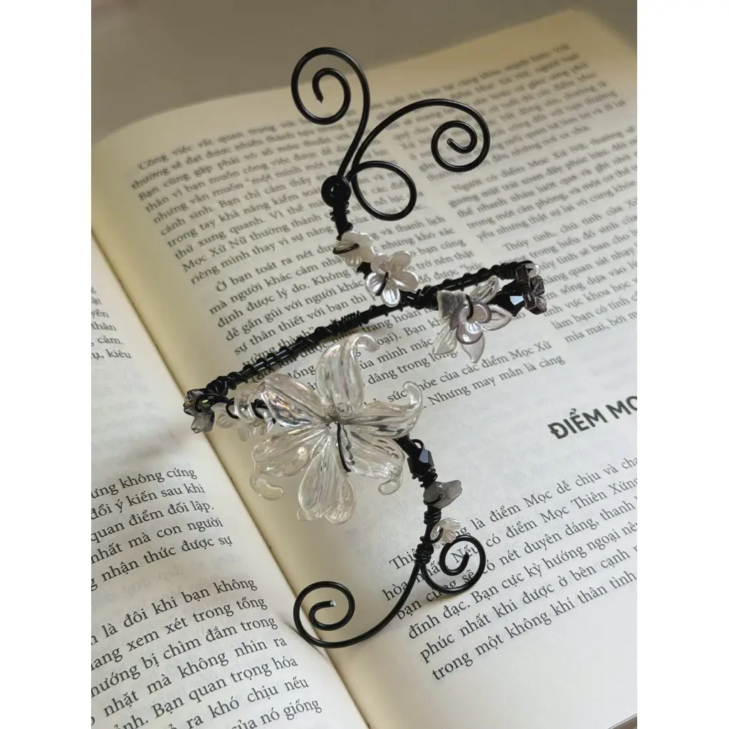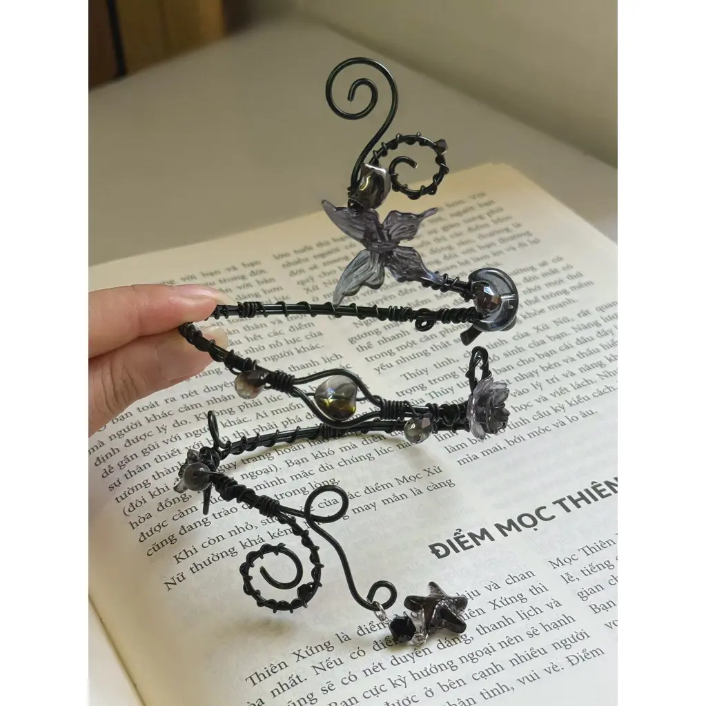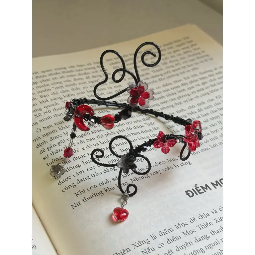 Crafted with a flexible aluminum base, combined with a mix of stones, acrylic, and glass beads for a unique and eye-catching look