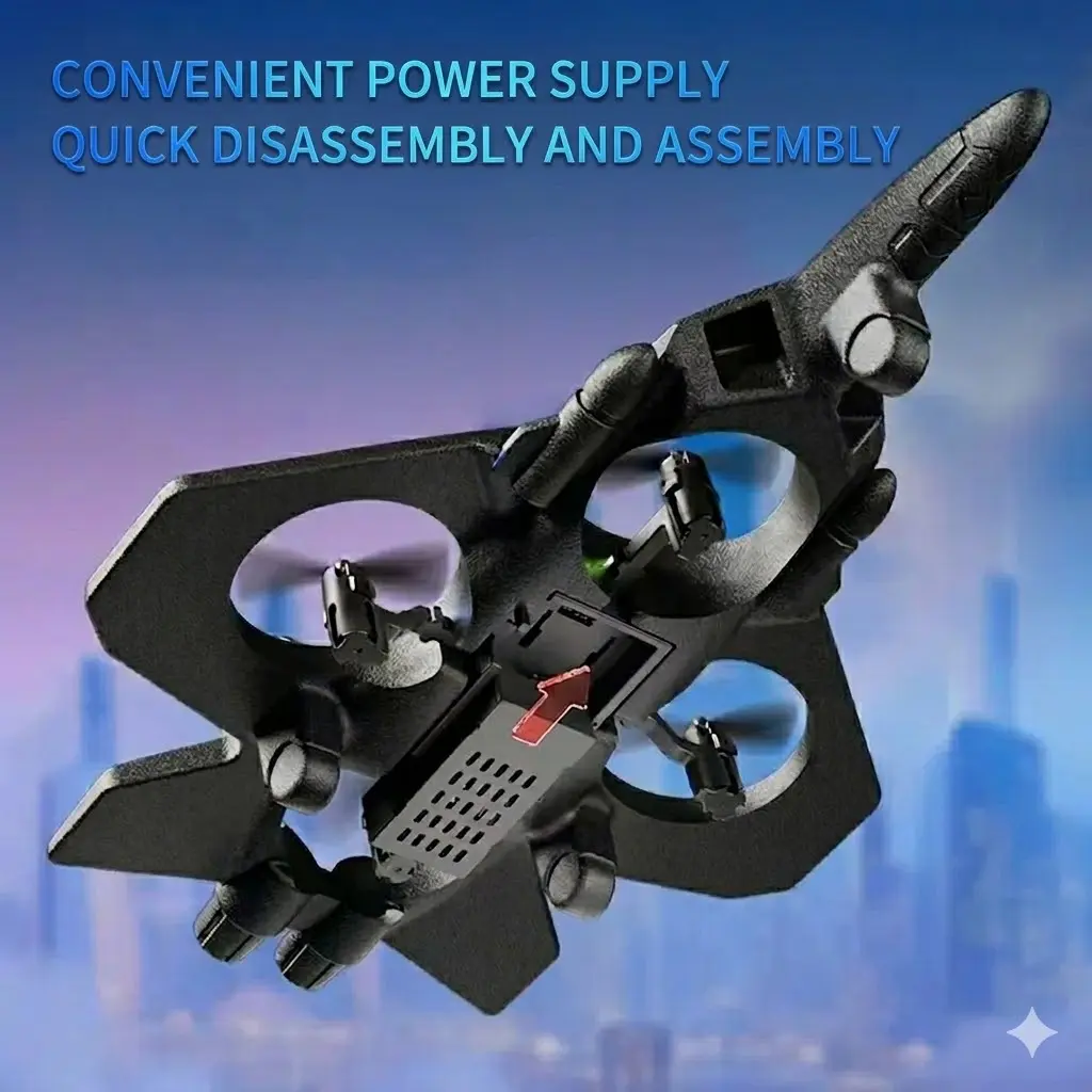 Exciting Features: - This RC Stunt Fighter Jet Toy offers 360° flips for thrilling flight. - Equipped with colorful LED lights, it adds a vibrant touch to playtime. - Easy to fly, making it perfect for beginners. - Features vertical takeoff and landing, enhancing play options.