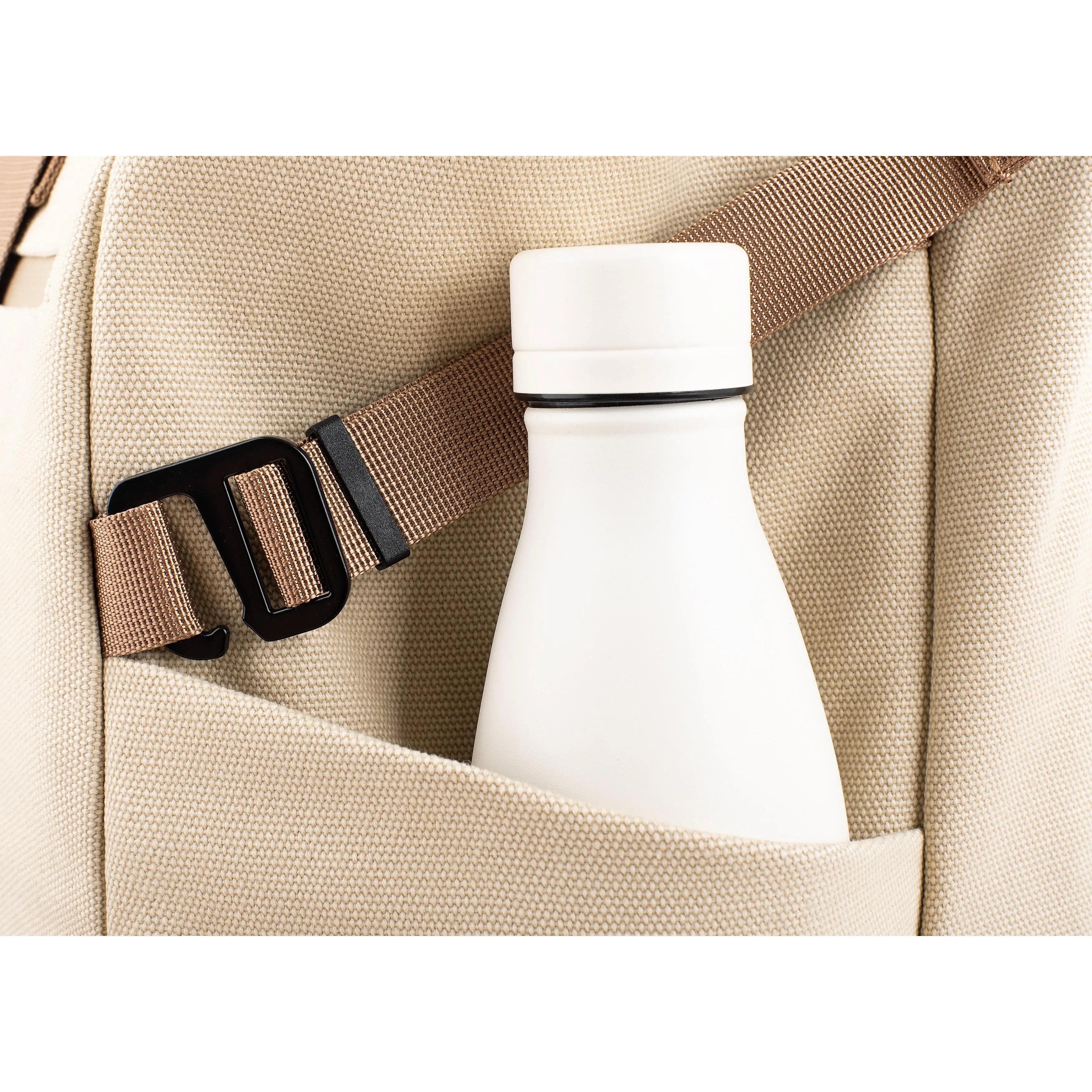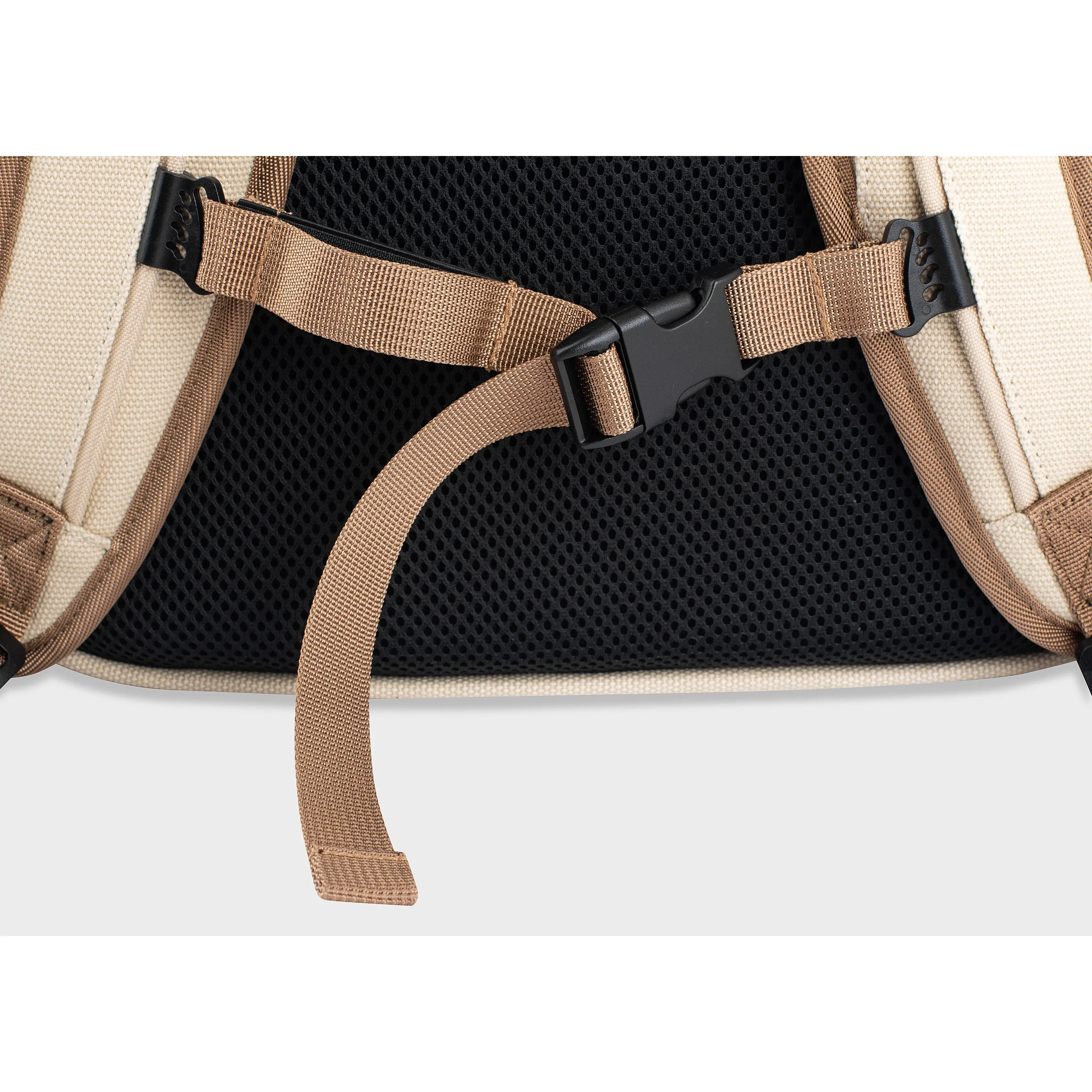 We are proud to bring another hemp product to life. , with a new expandable design and a new hemp fabric that is more durable and more waterproof than ever. It starts as a casual 20L everyday bag when fully compressed and it grows up to 45L when fully expanded. The roll-up offers 10 extra litters above and the hidden kangaroo pocket offers 10 extra litters below. You can also attach our front bag in front for an extra 5 liters of space.