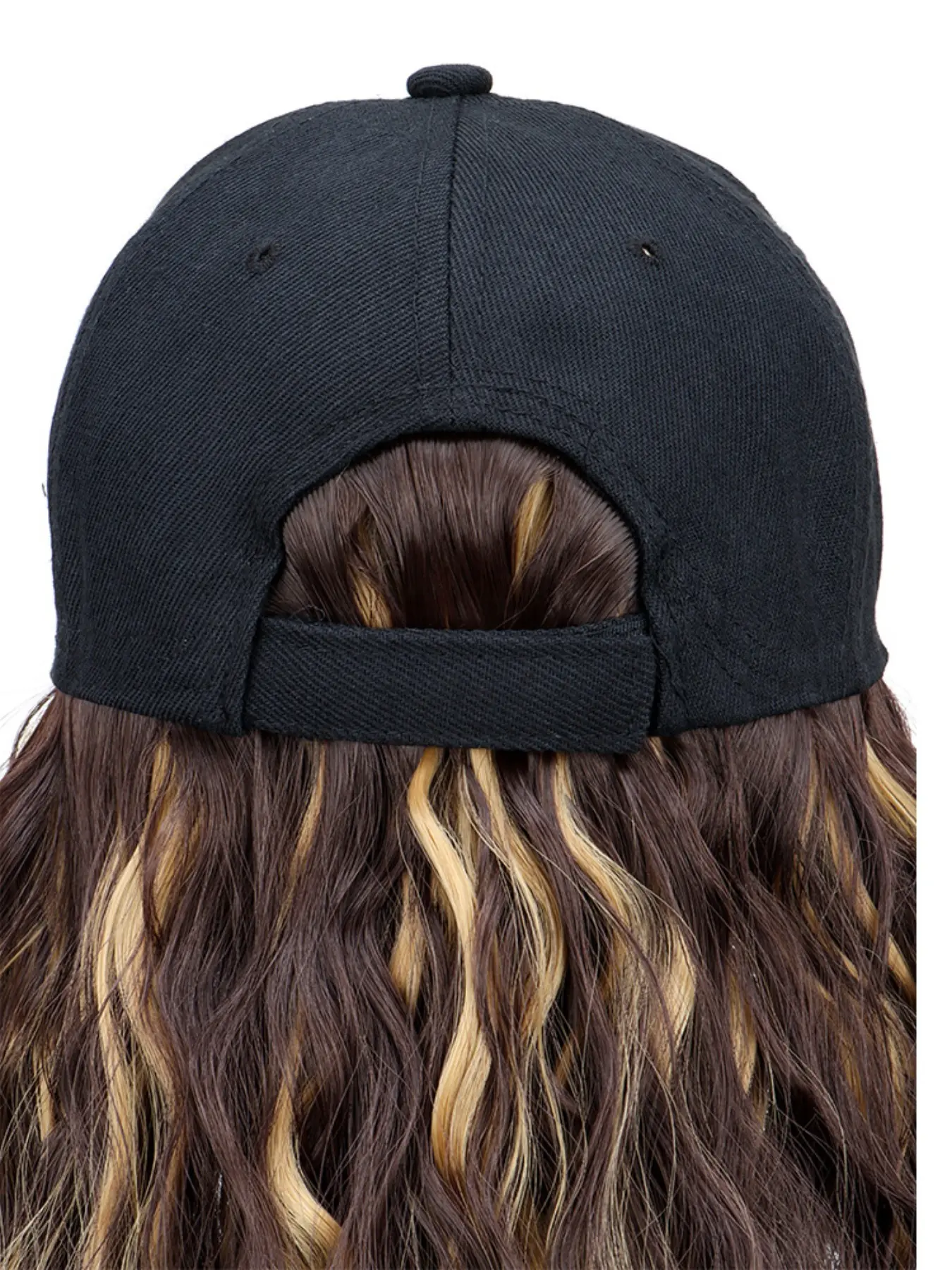 1pc Long Curly Synthetic Hair Wig with Bangs, Natural Look Baseball Cap Hair Extension, Easy to Style and Maintain, Multifunctional Design