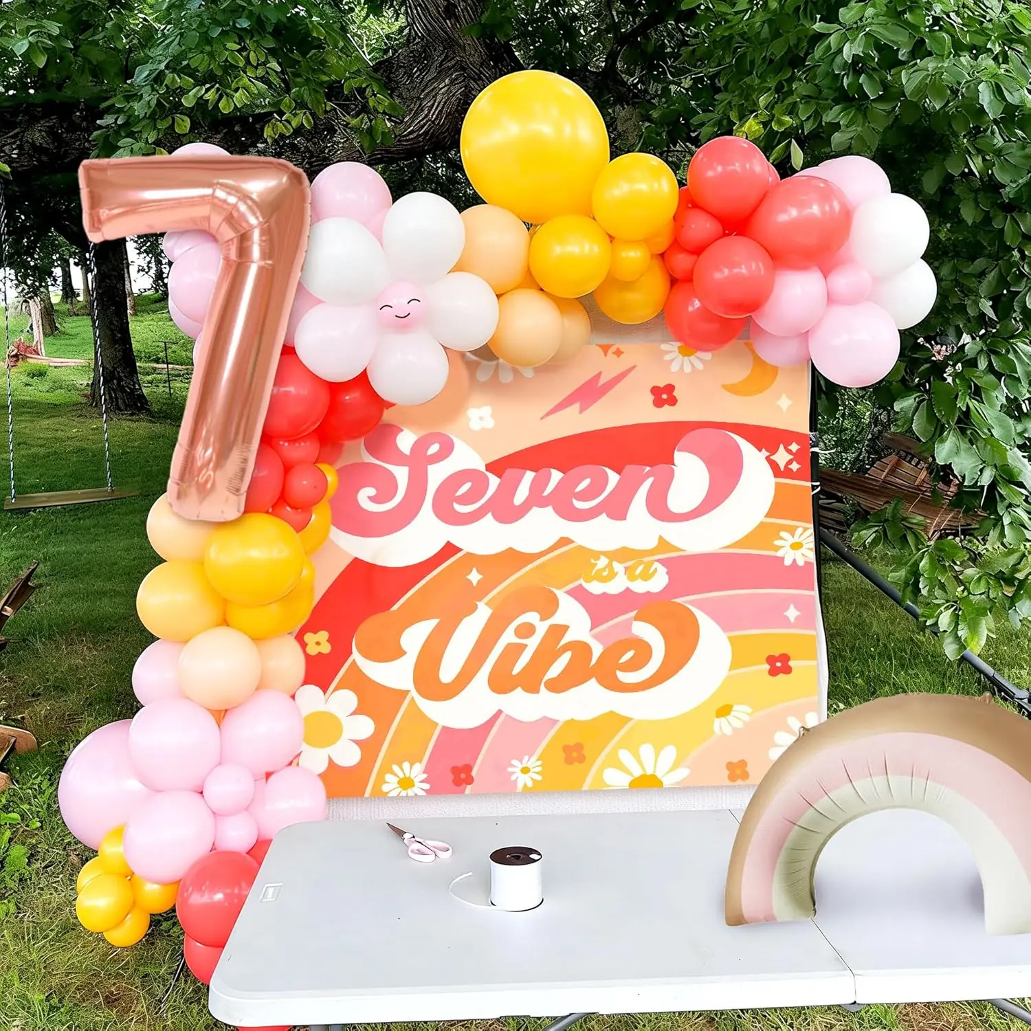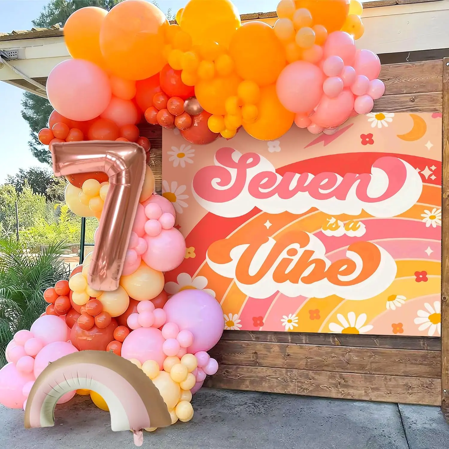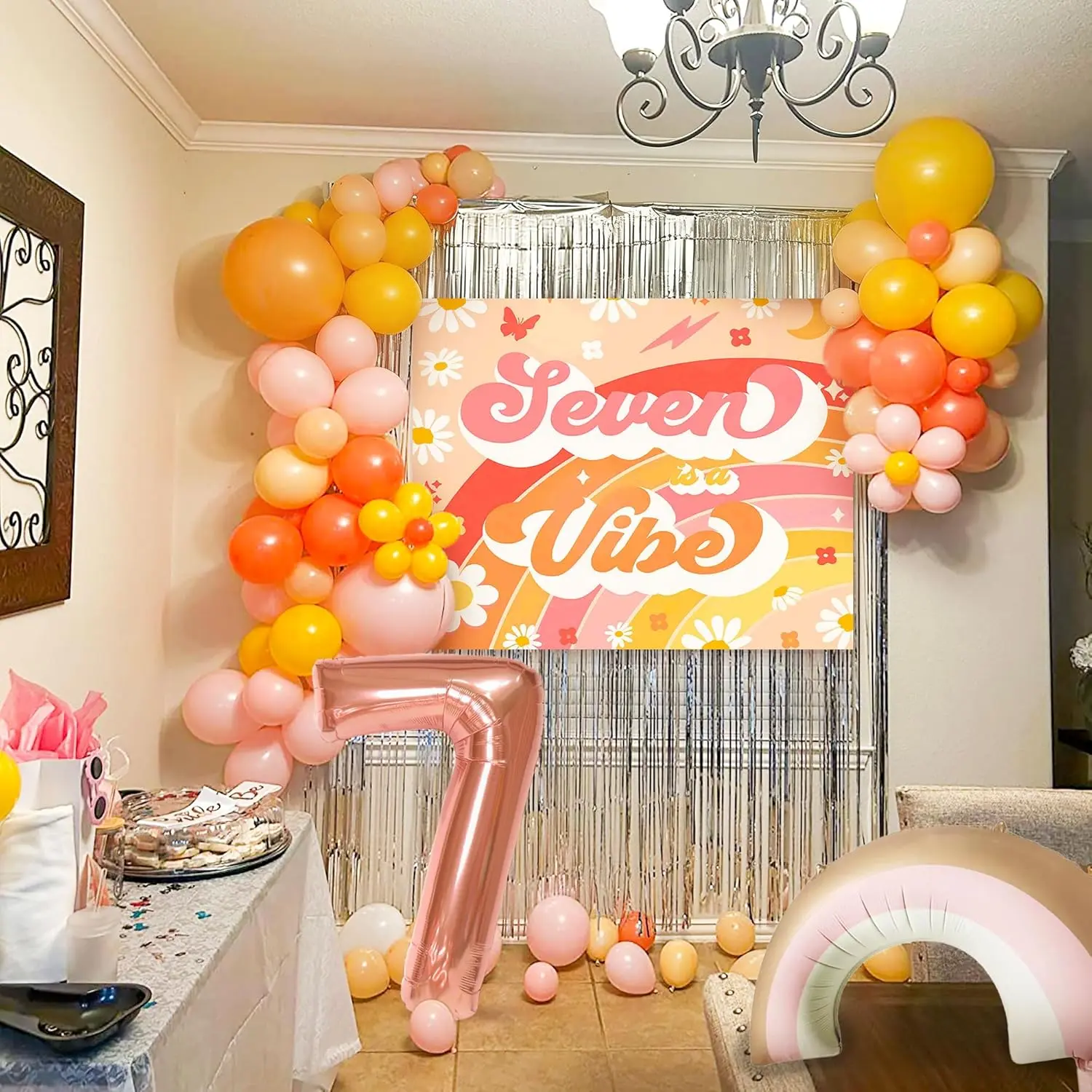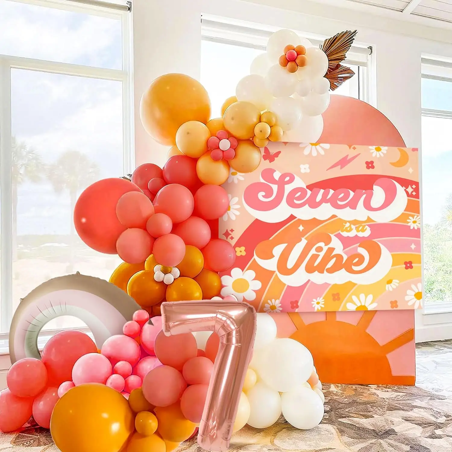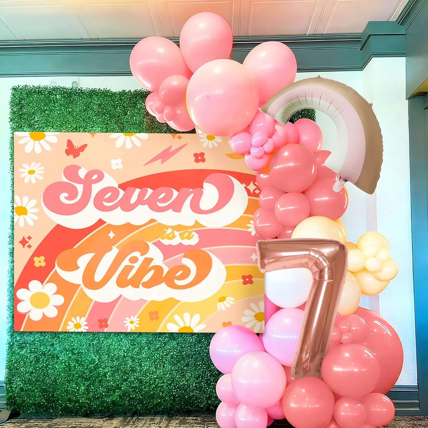 LaVenty Seven Is A Vibe Birthday Party Decorations Balloon Rainbow Daisy Balloons Vintage Groovy 7th Birthday Decorations Hippie Retro 7 Years Old Birthday Decoration