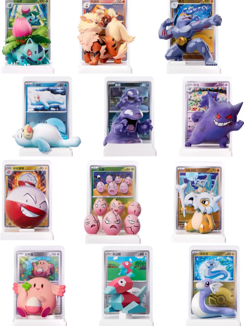 There are a possible 13 different figurines, with one of the 13, Machole being a rare/Chase figurine. Fat chase rather than having just a holographic card contains the 151 art rare for Machoke