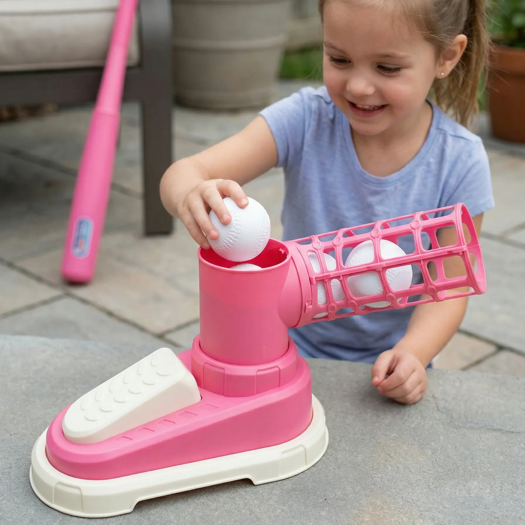 Fun Launcher Baseball Toy for Kids – Pop-Up Pitching Machine with Bat & 3 Balls – Outdoor Sports Game, Gift for Boys & Girls Ages 3-8,Children's foot-operated catapult baseball training machine, automatic baseball launcher for indoor and outdoor sports