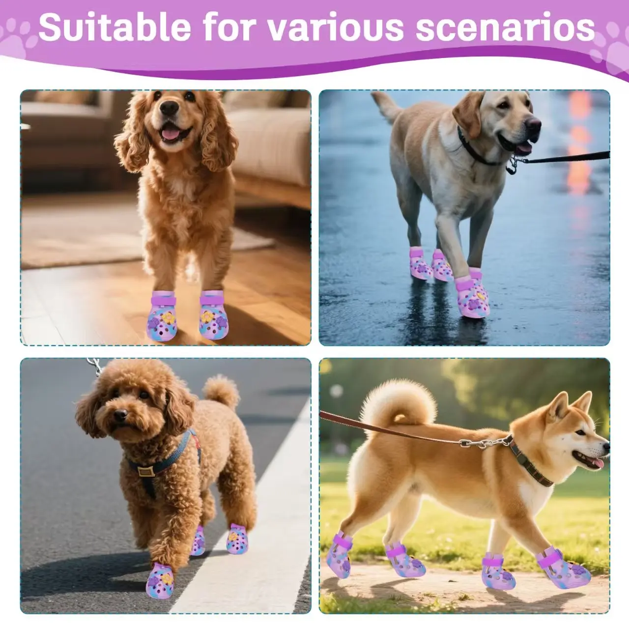 ·These lightweight dog shoes are suitable for a wide range of daily situations, including indoor walking, outdoor strolls, park visits, and different road conditions. They are designed for versatile use across multiple environments.