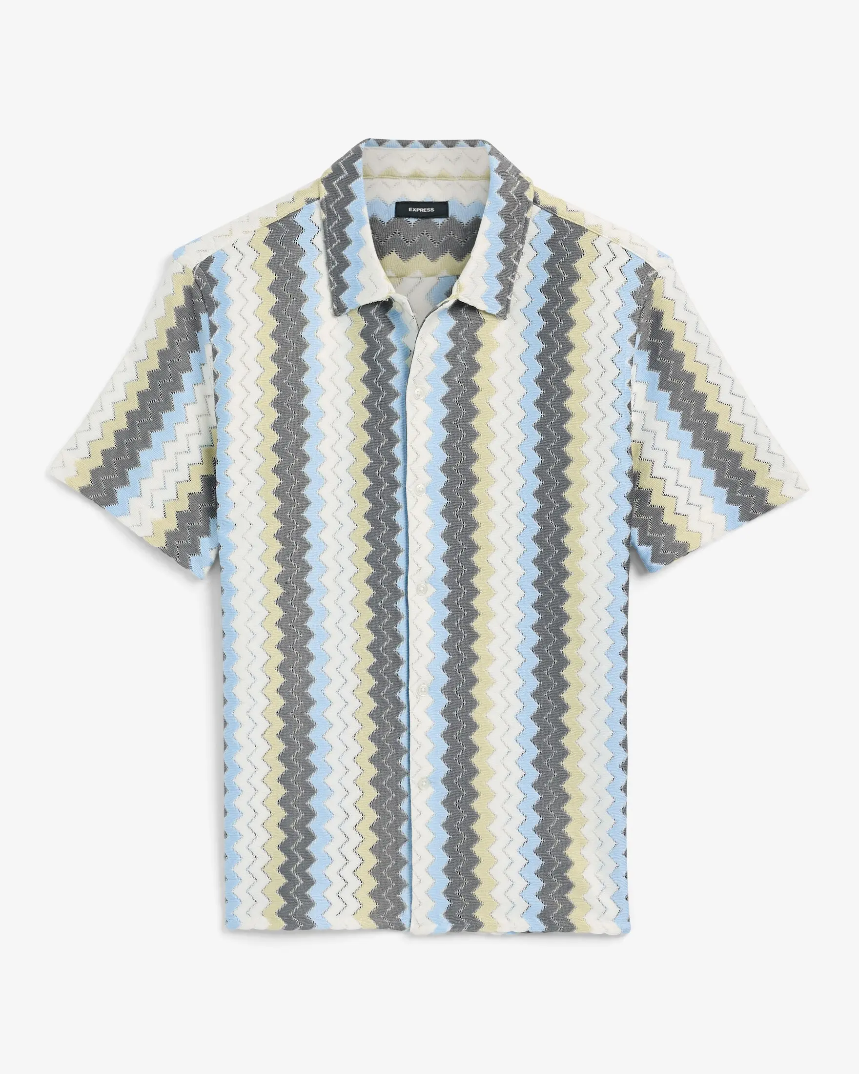 Express Textured Zig Zag Striped Short Sleeve Shirt
