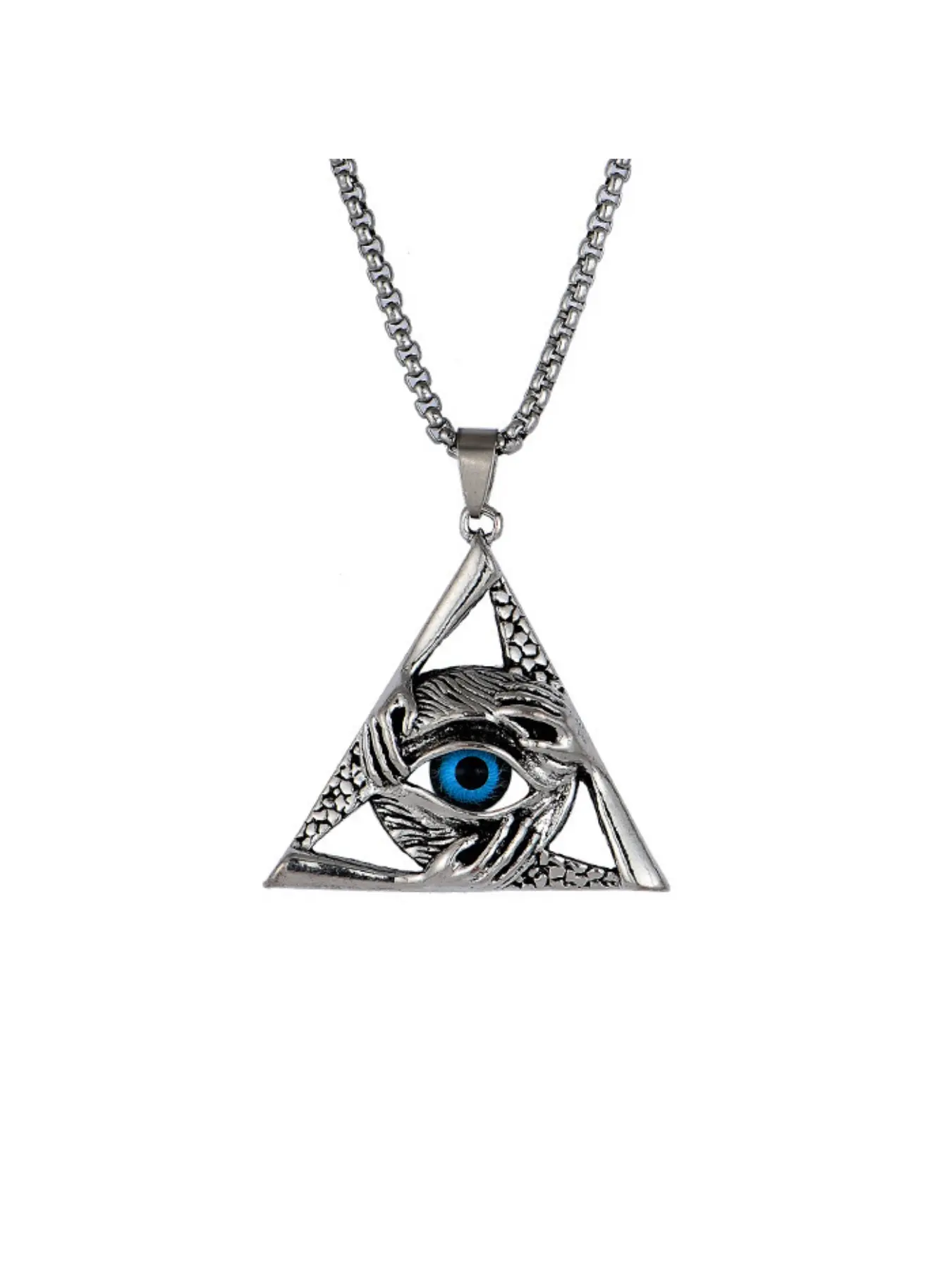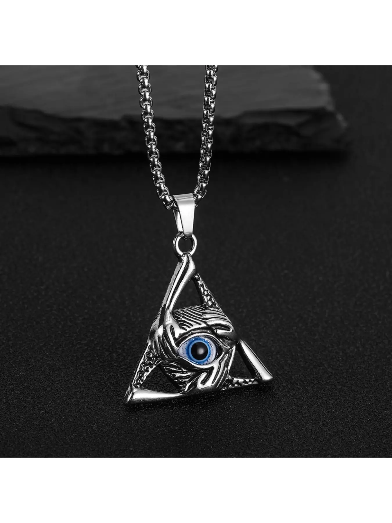 Vintage Triangular Evil Eye Pendant Necklace - Gothic Stainless Steel Chain for Men/Women