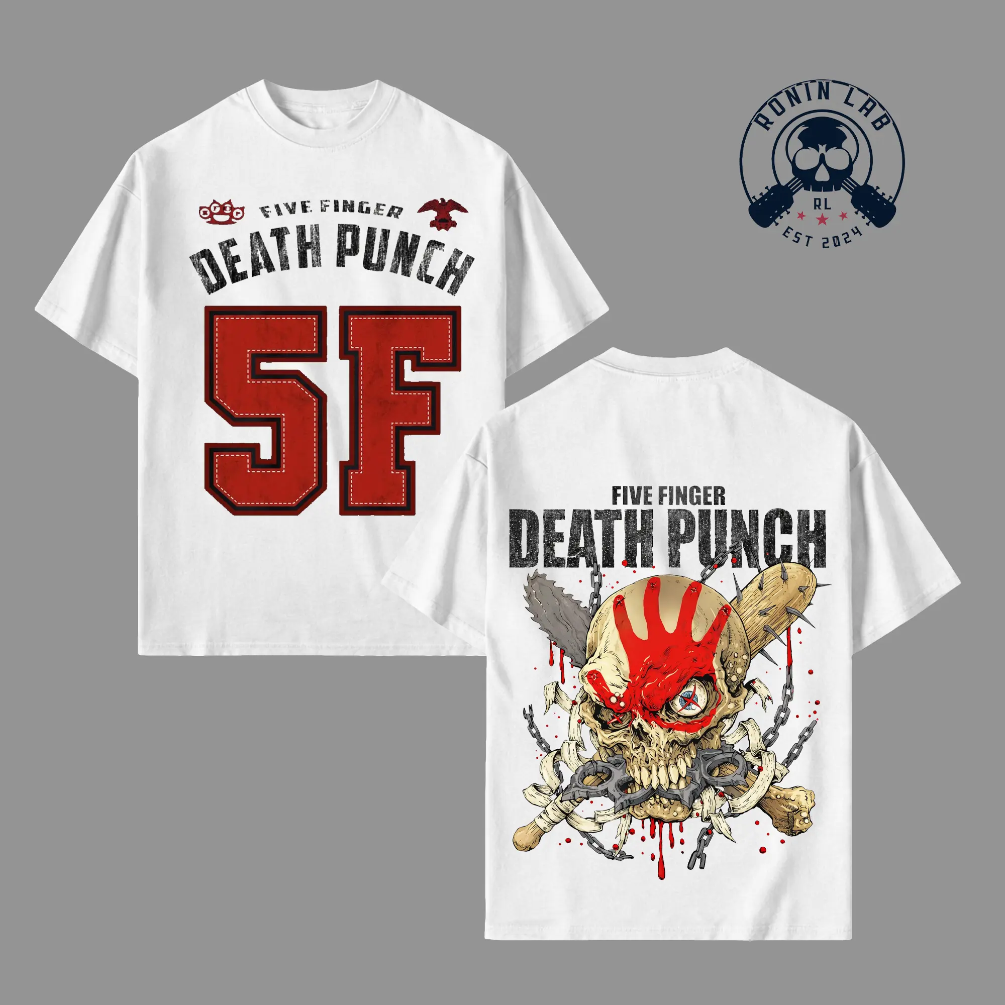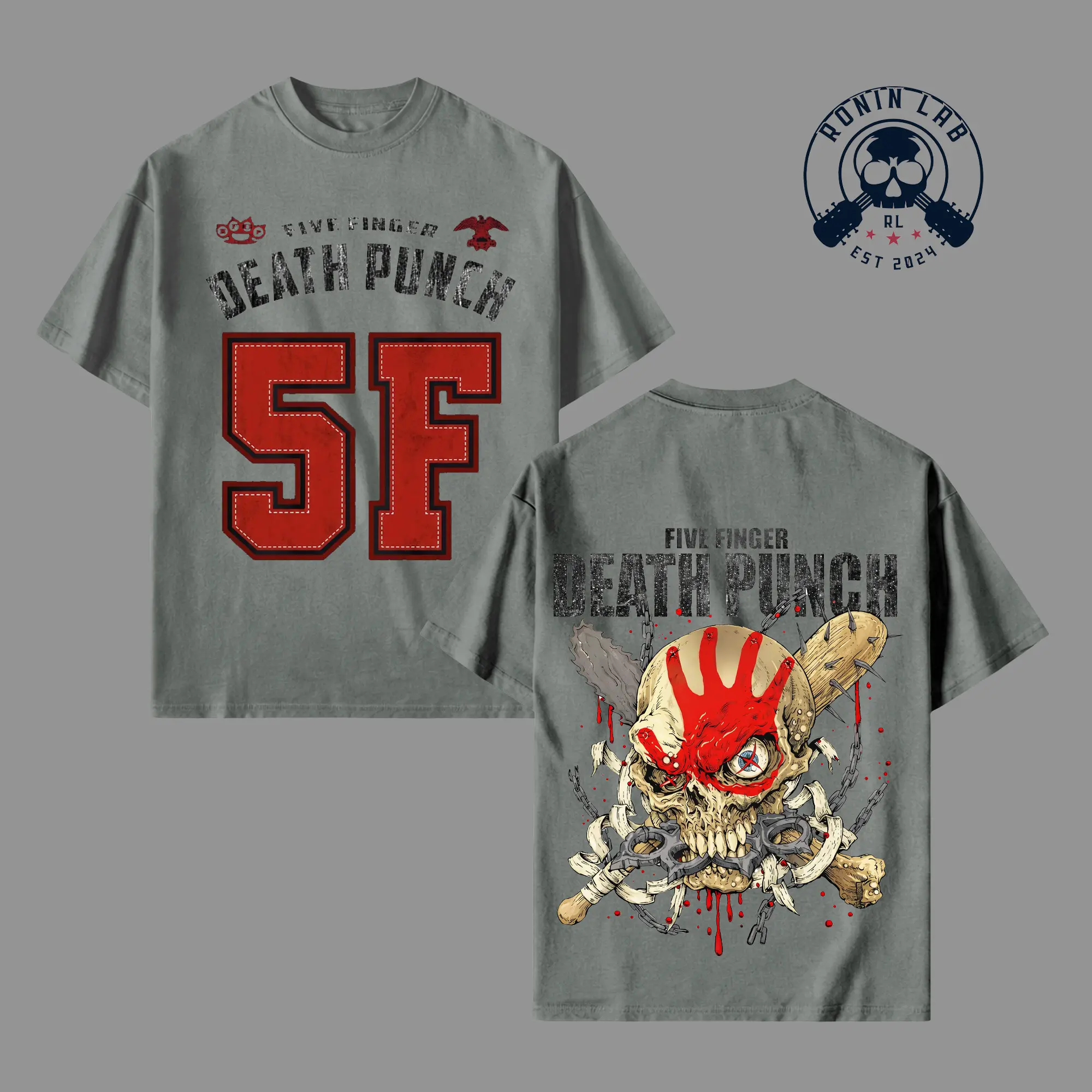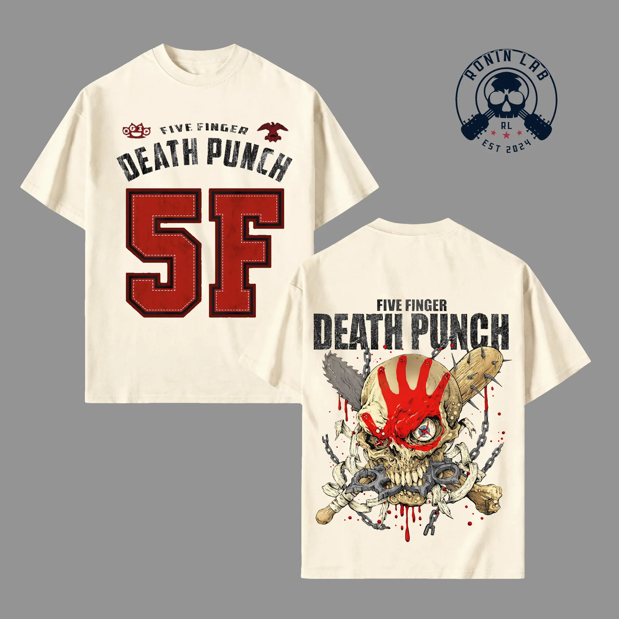 Five Finger Death Punch Skull Graphic T-Shirt, Oversized Cotton Tee, Heavy Metal Band Design Shirt, Streetwear Unisex