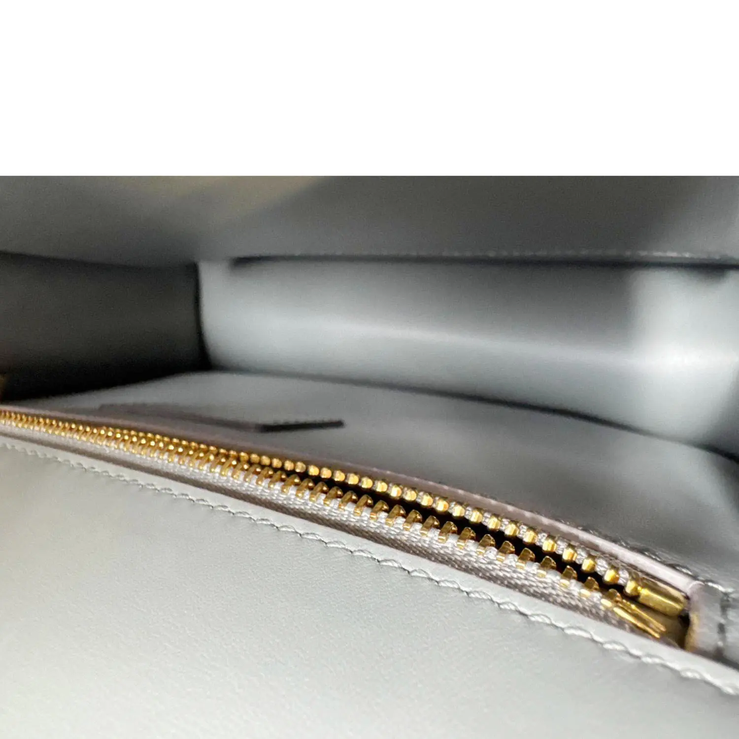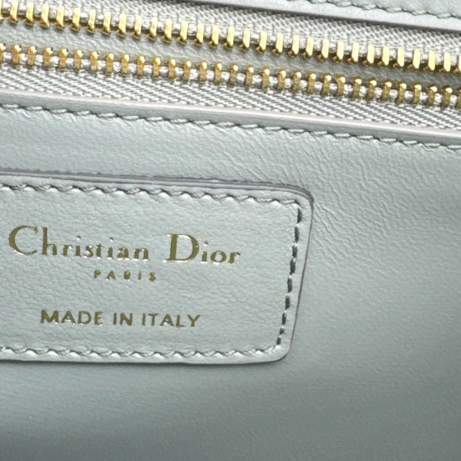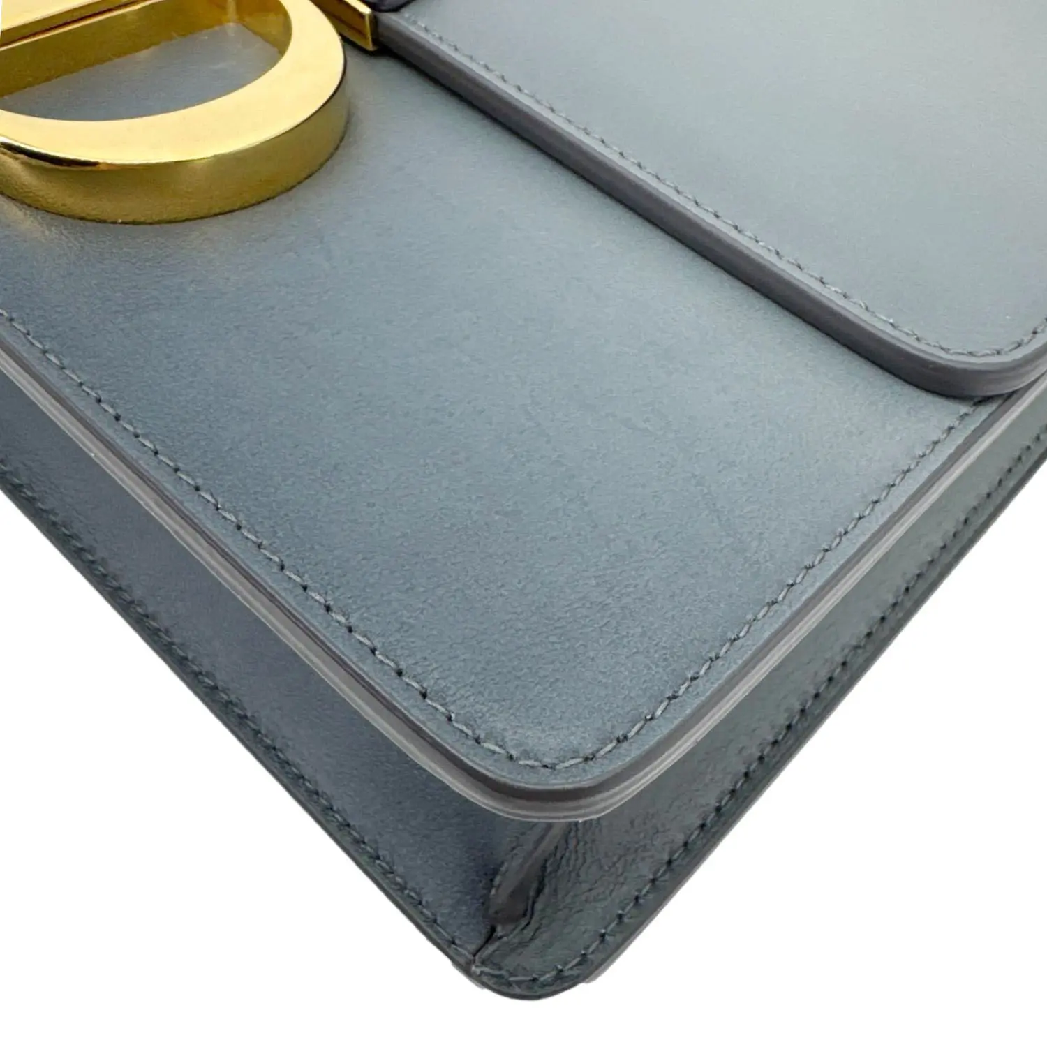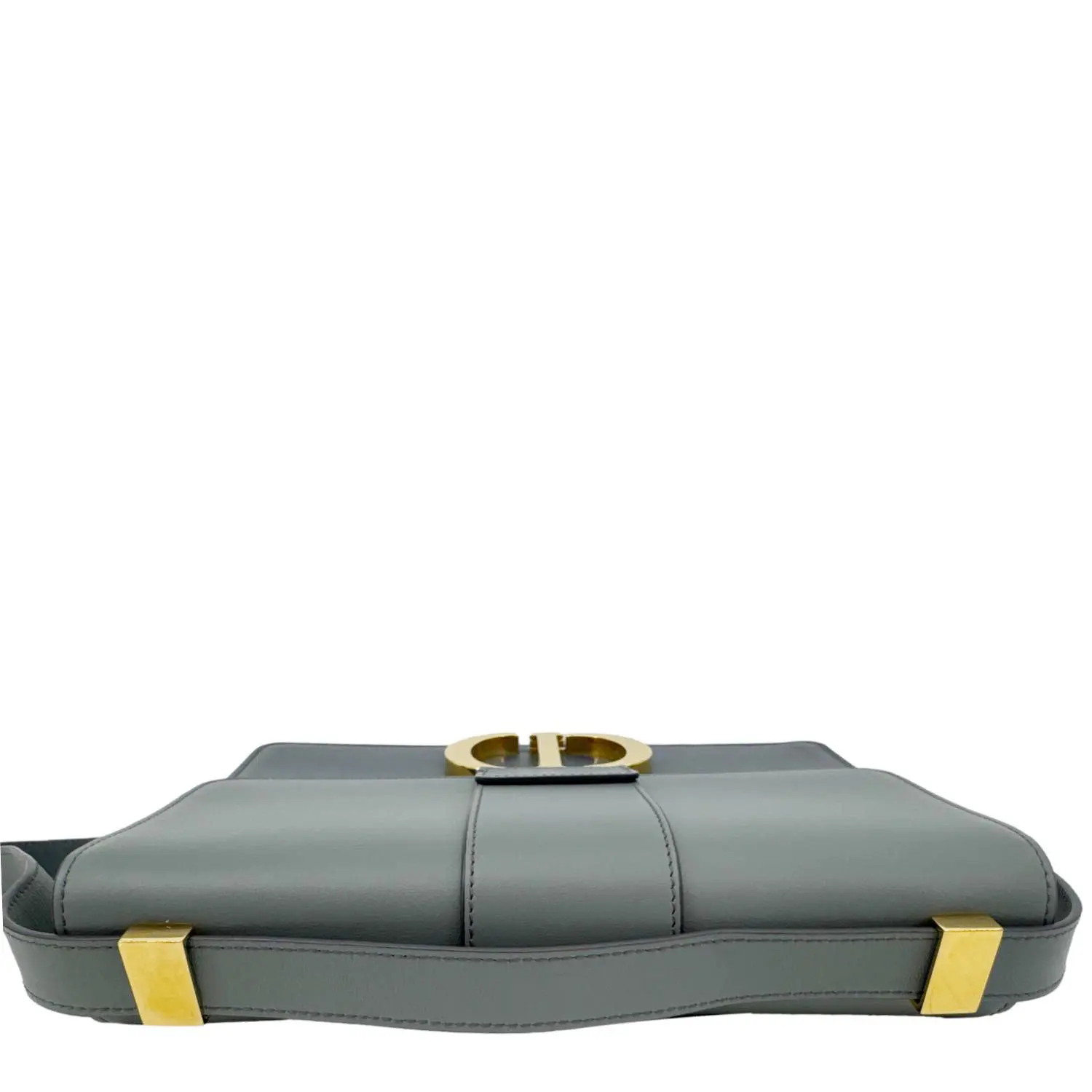 A chic and contemporary Dior crossbody featuring a subtle gray gradient calfskin leather with the signature CD clasp and embossed 30 Montaigne detail, blending timeless Parisian elegance with modern versatility.