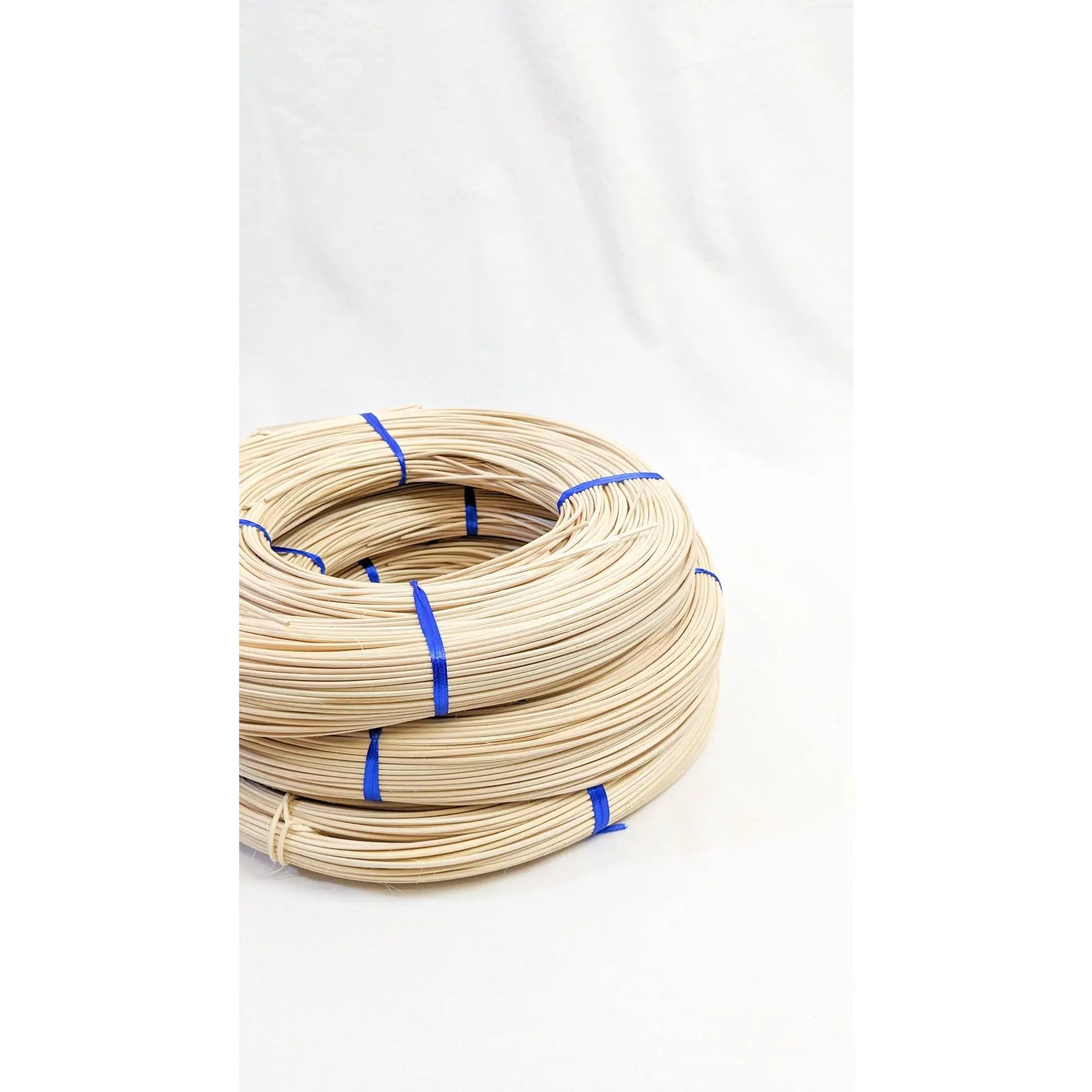 Rattan reed is made from the core of the rattan vine. This is a round reed which is a cylinder of reed round at the end and along its length.