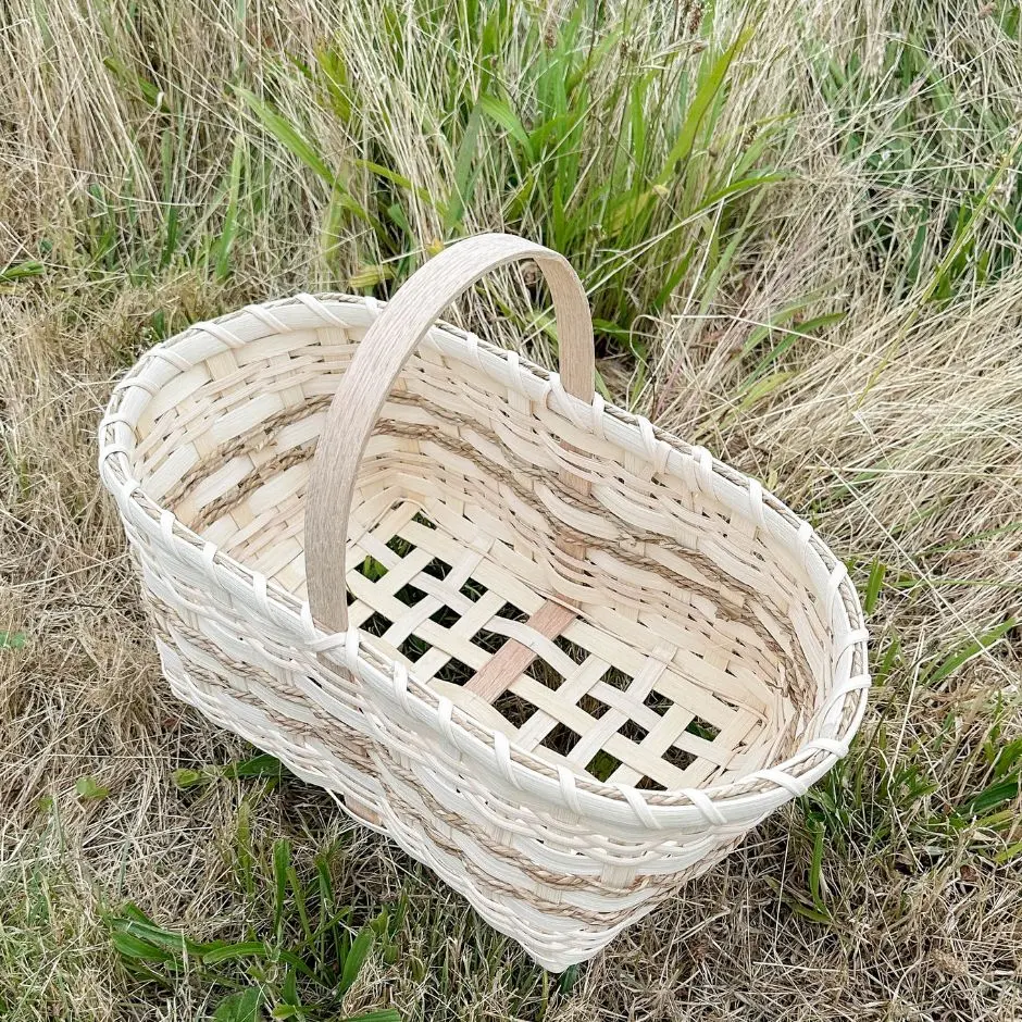 Our Market Basket Kit helps you create a sturdy, functional piece you’ll be proud to carry and use. With just a few hours of weaving, you’ll craft a roomy rectangular basket with a strong handle—perfect for shopping trips, picnics, or home storage.