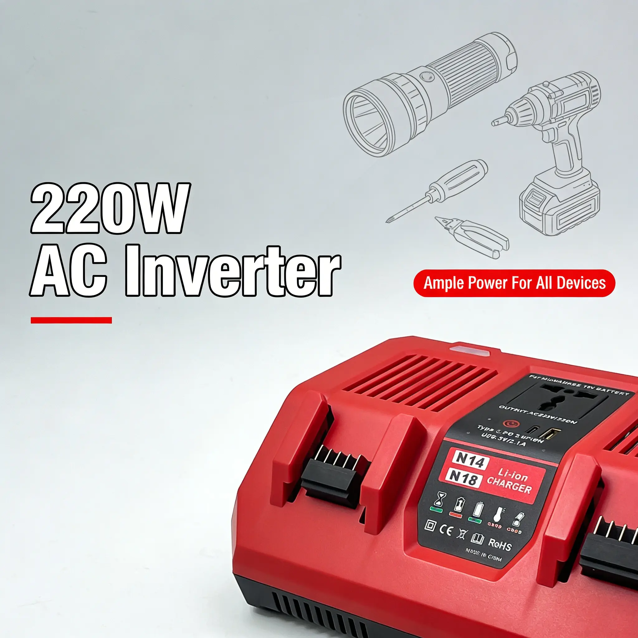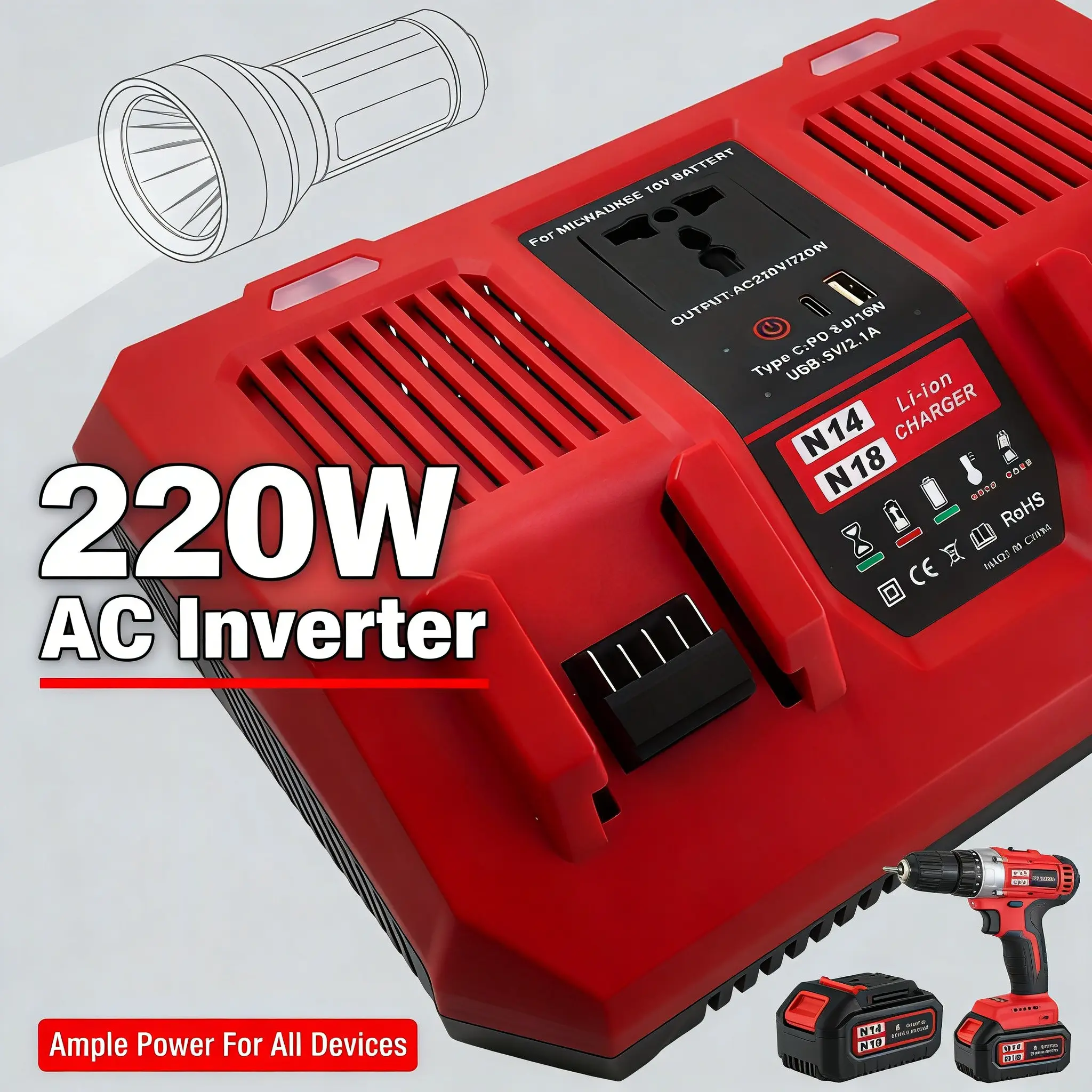 【220W AC Inverter & Multi-Scene Power Supply】