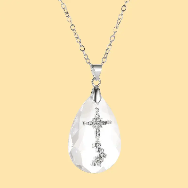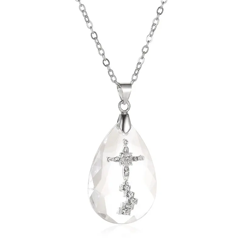 Fashionable Colorful Natural Stone Cross Rosary Necklace