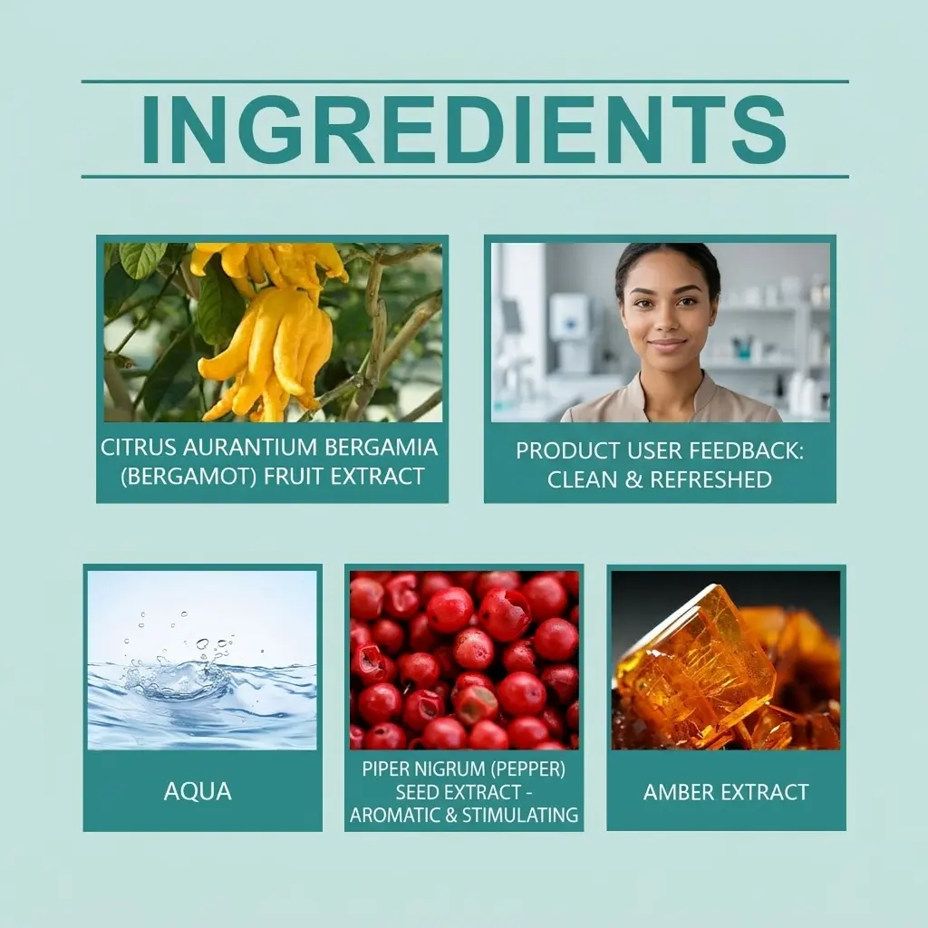 • Fragrance-Enhancing Ingredients: Made with pepper seed extract, amber extract, and citrus witch hazel extract to add depth, freshness, and a lively aromatic character.