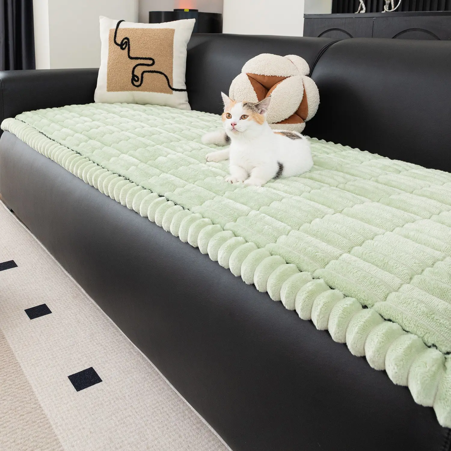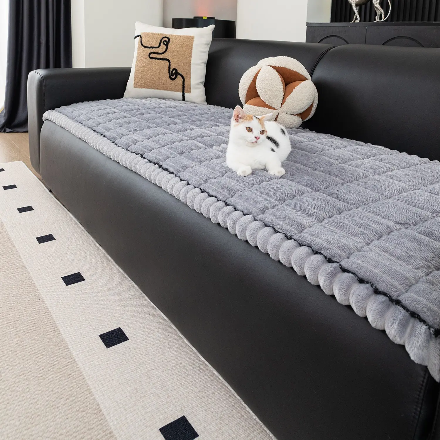1pc Crystal Velvet Sofa Pad, Soft Skin-Friendly Fabric, Warm Plaid Design, Pet Friendly, Machine & Hand Washable, All Season Use, Fits 1-5 Seat Sofas