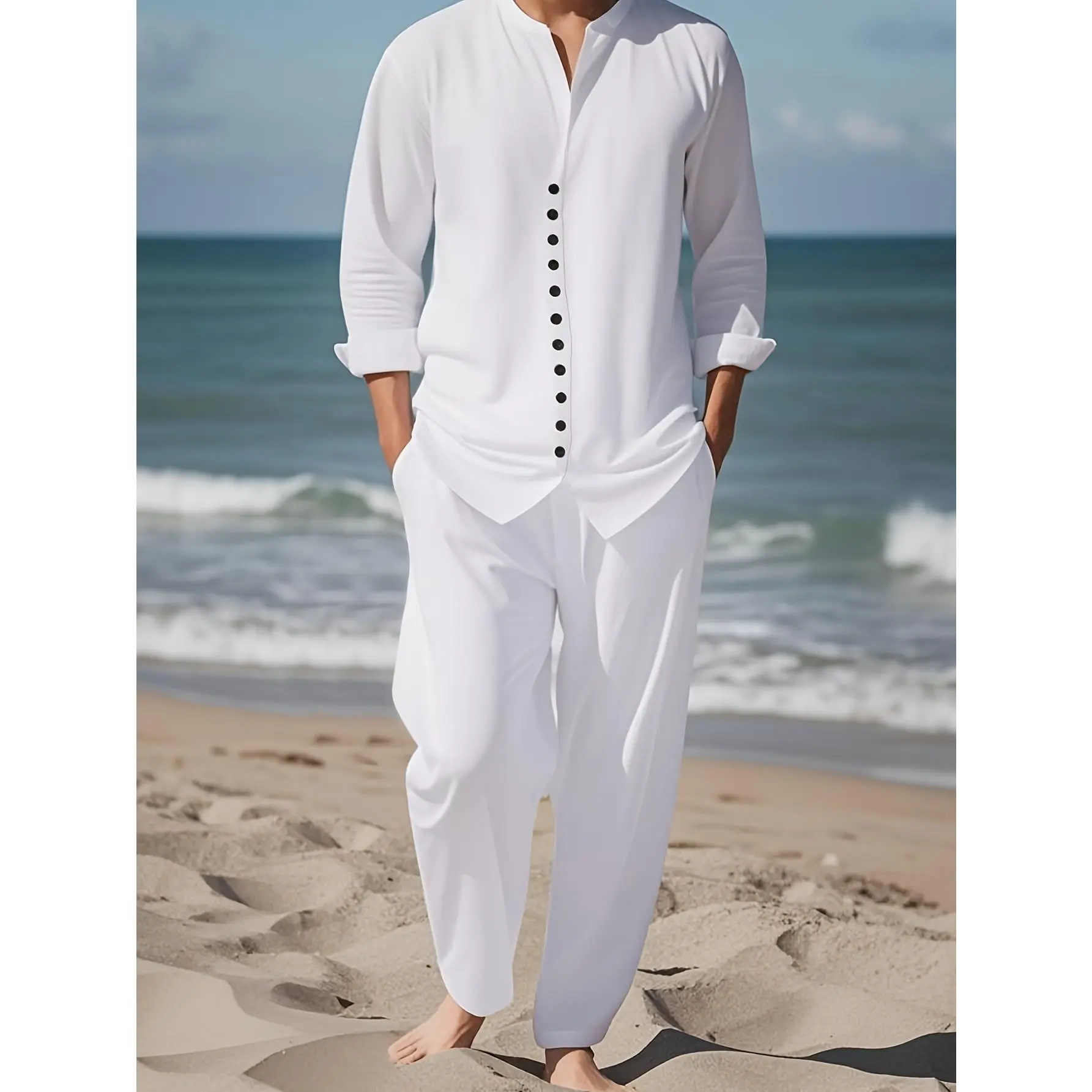 Men'S Fashion Print Suit, Casual Pure White Texture Print Pattern, Casual Party, Evening Party Daily Festival, Home, Four Seasons Stand-Up Collar Casual Suit