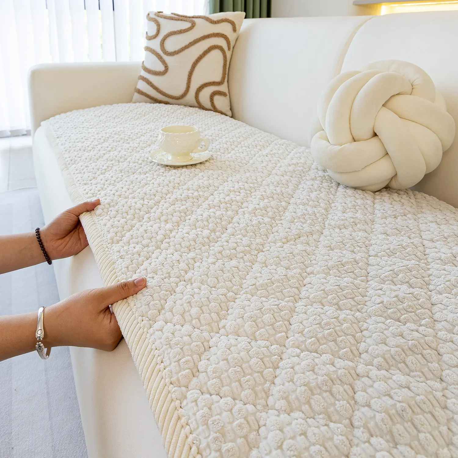1pc Single Solid Color Bubble Velvet Sofa Pad, Soft Skin-Friendly Material, Pet-Friendly Anti-Slip Design, Machine & Hand Washable, Fits Single to Five-Seater Sofas