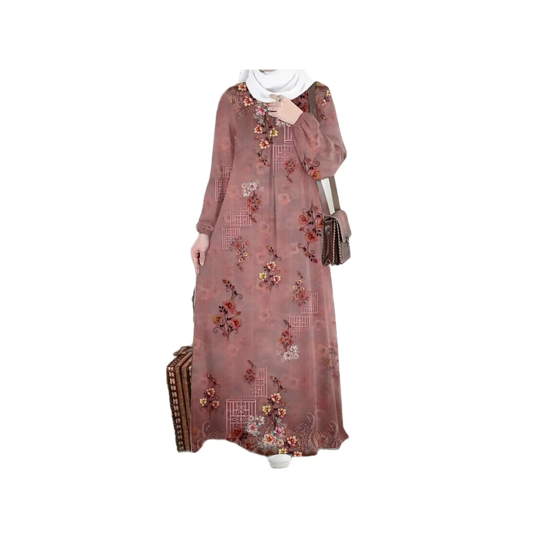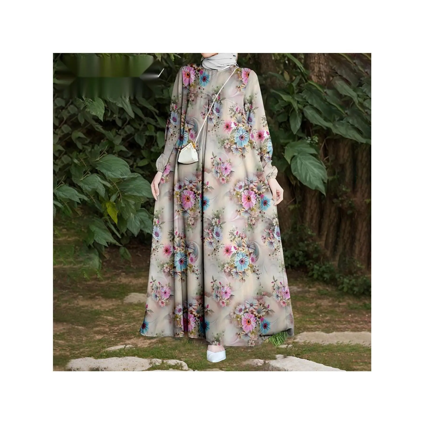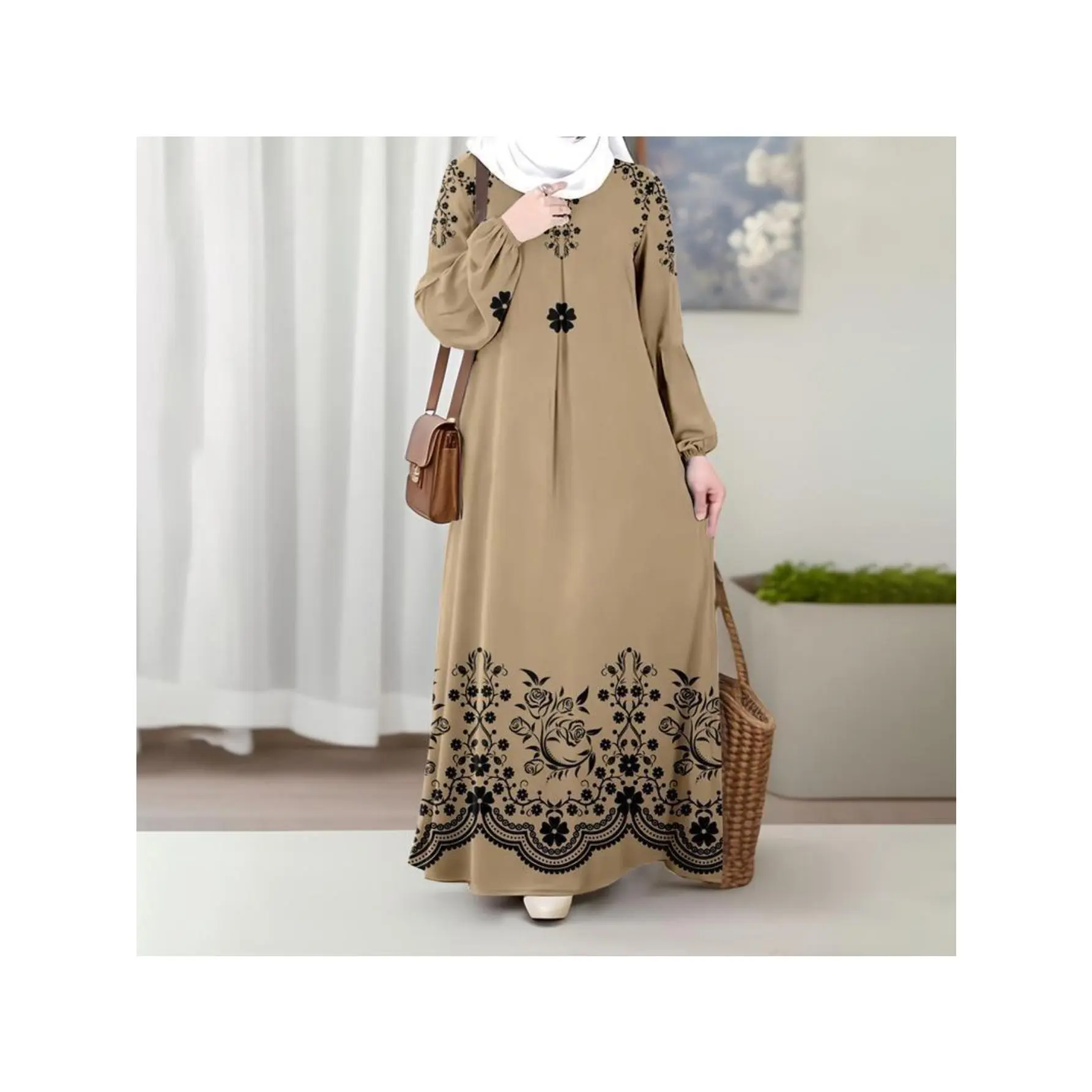 2023 New Muslim Middle Eastern Round Neck Printed Elegant Abaya