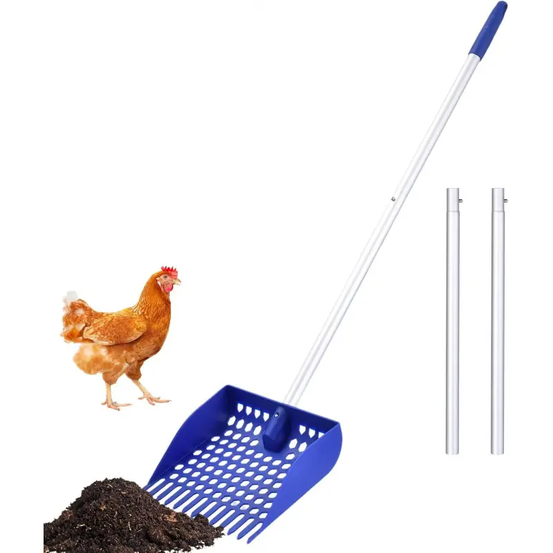24" to 70.9" Adjustable Large Cook Scooper for Chicken Poop - Lightweight Chicken Litter Scoop Cleaning Tool, Long Handle Detachable Shovel for Stall Farm Animals Poultry Litter Cleaning Sand Sifting