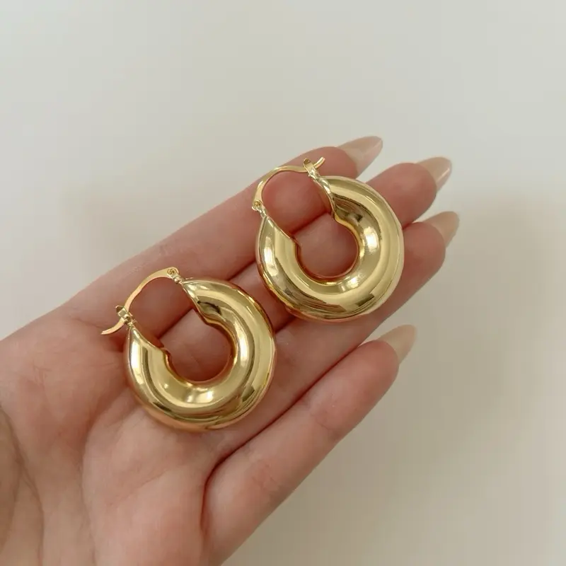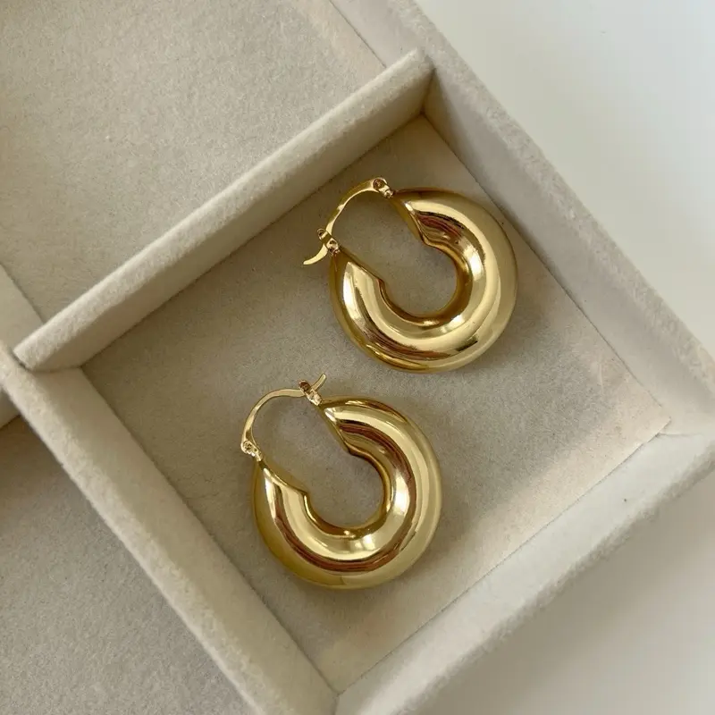 The Ultimate Chunky Hoops ✨ Achieve that high-end look with our Gold Chunky Hoop Earrings. Crafted with a premium rhodium-plated gold cover, these earrings offer a bold yet lightweight design. Tarnish-resistant and perfect for adding a touch of sophistication to any outfit.