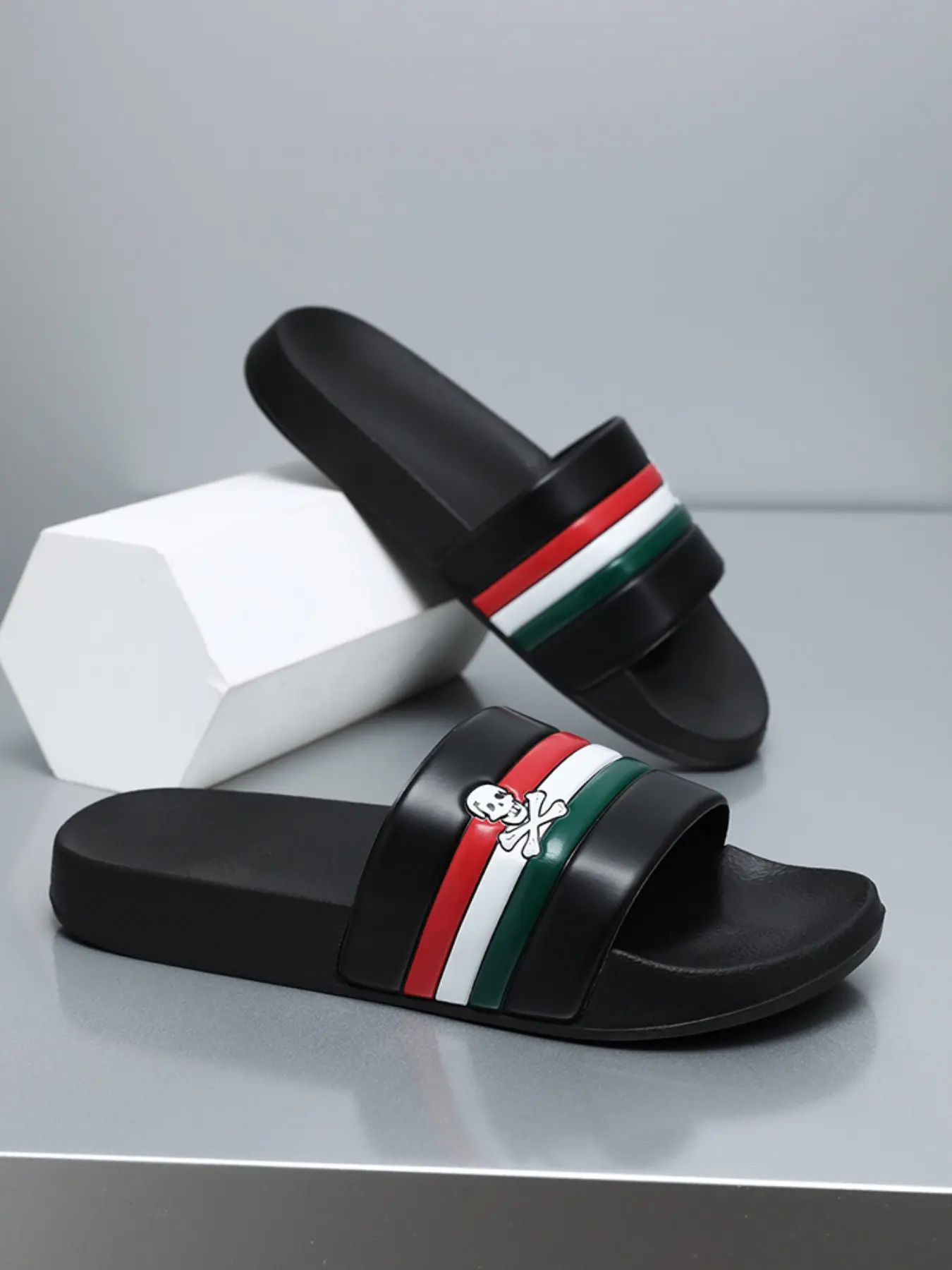 【Unique Decoration】: Adorned with skull head decoration and three-color stripes, adding a distinctive touch to your footwear.