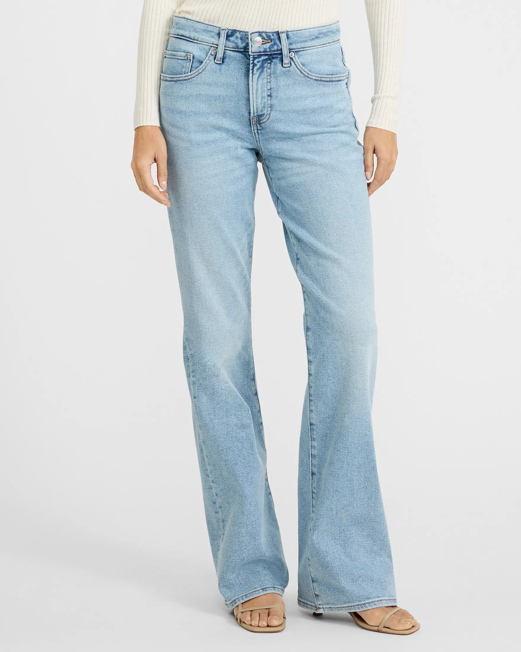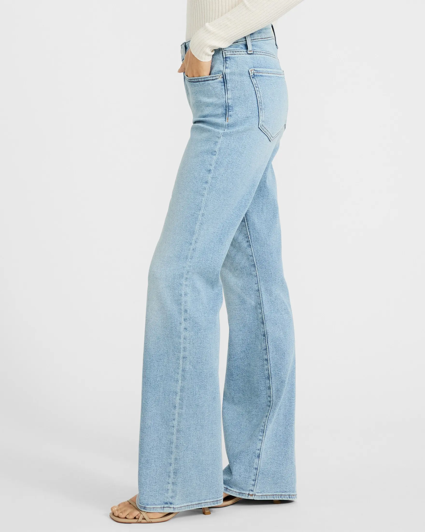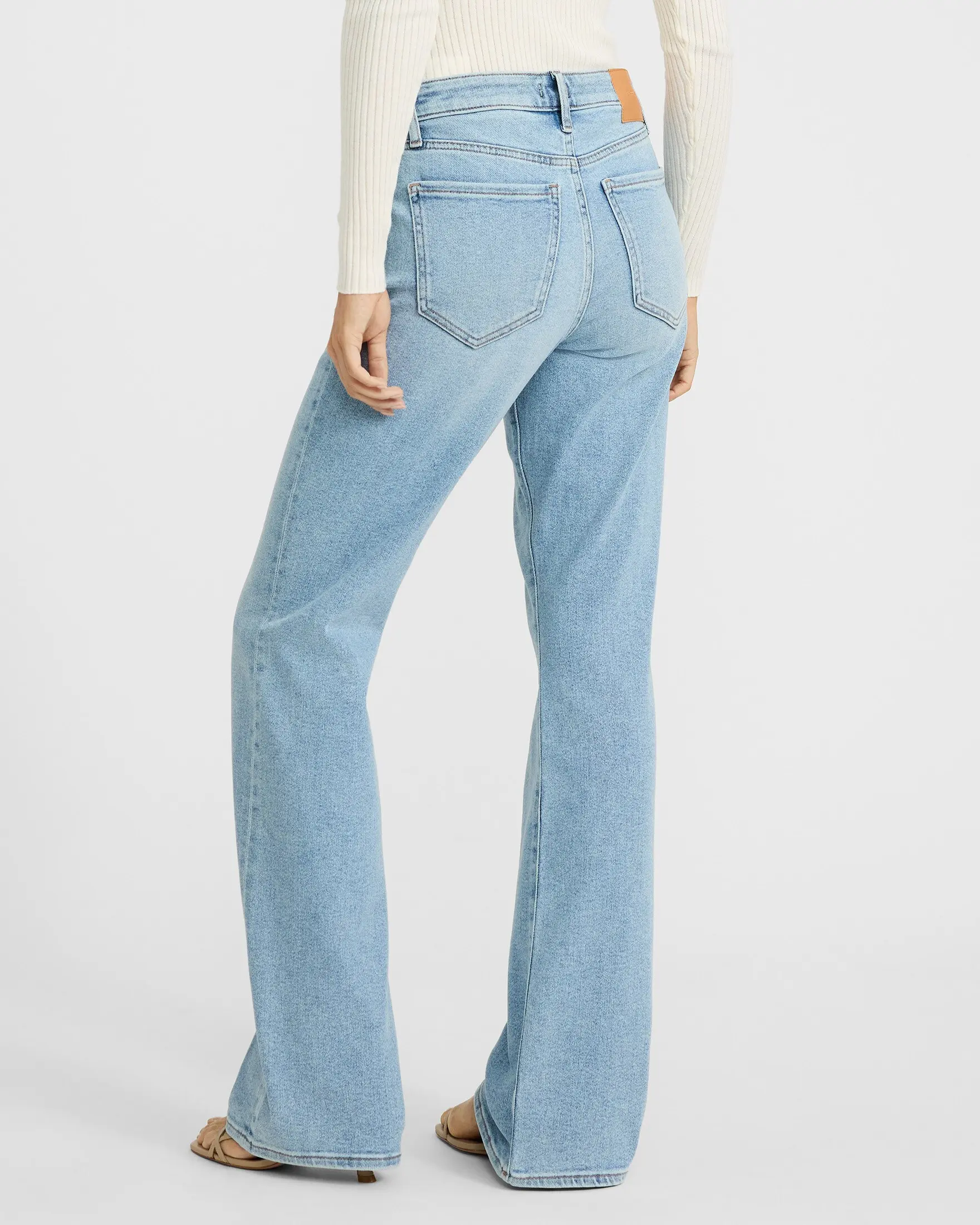 Sitting at mid-rise waist, this light wash jean is fitted through the hip, thigh and knee with a slight kick at the hem. With the most flattering compression denim for the most comfortable and confident fit. No more waist gapping, and better yet, these will retain their shape wear after wear.