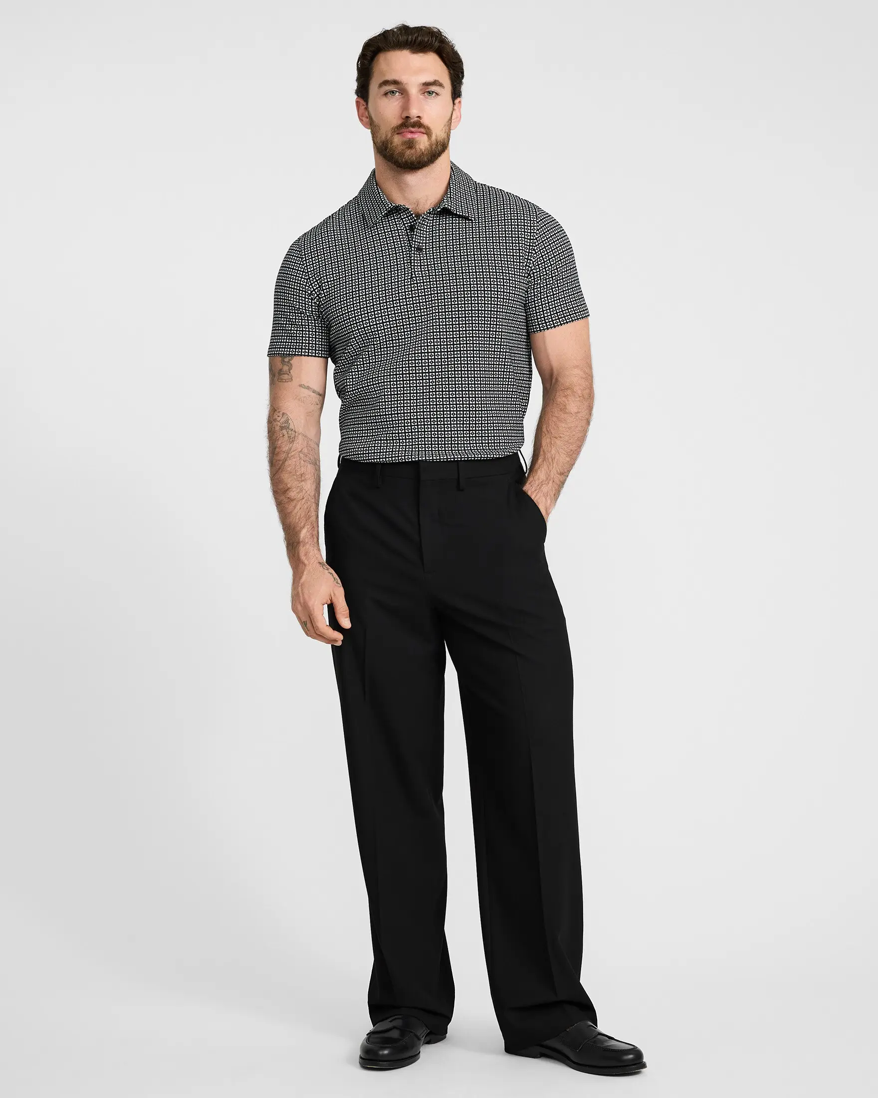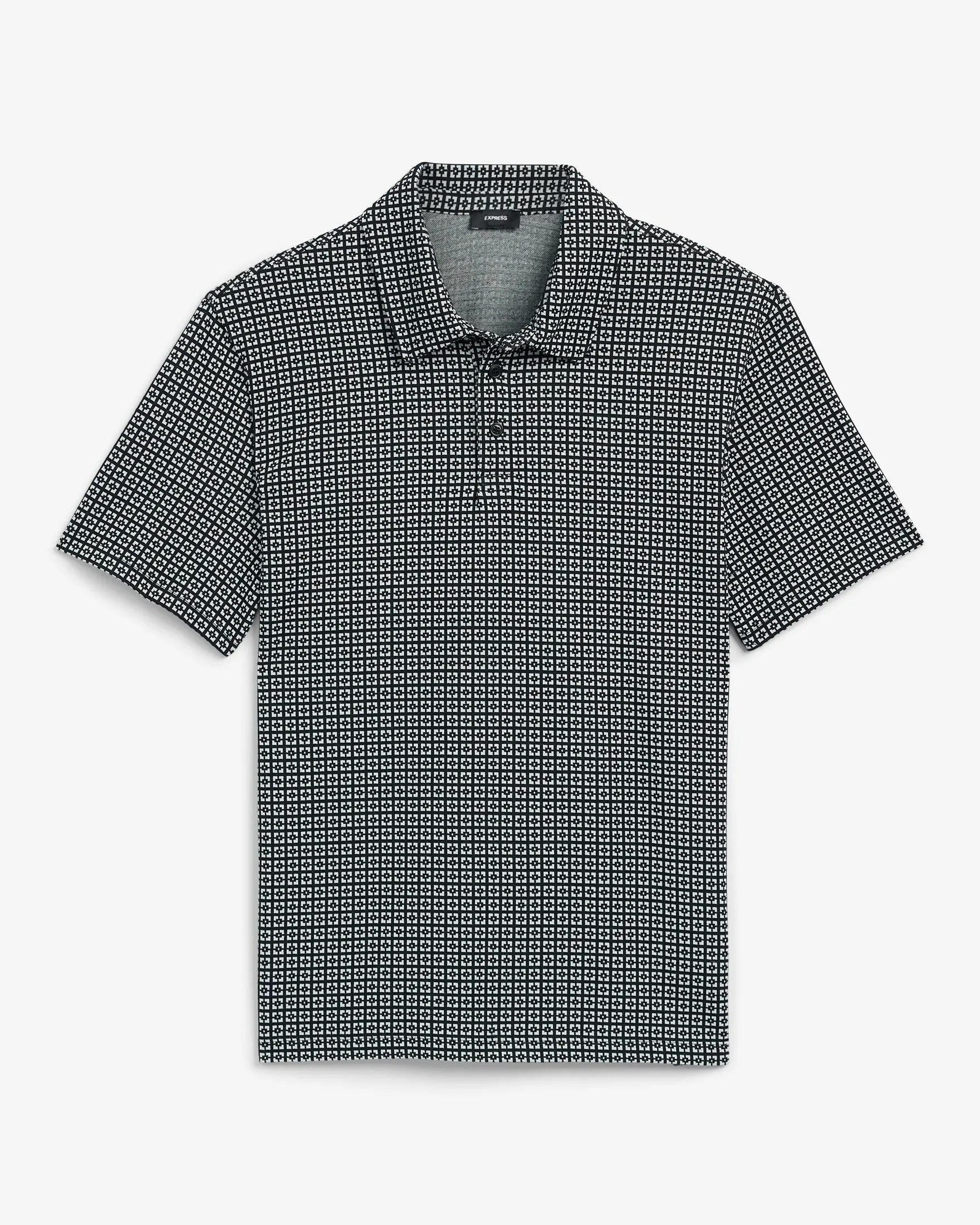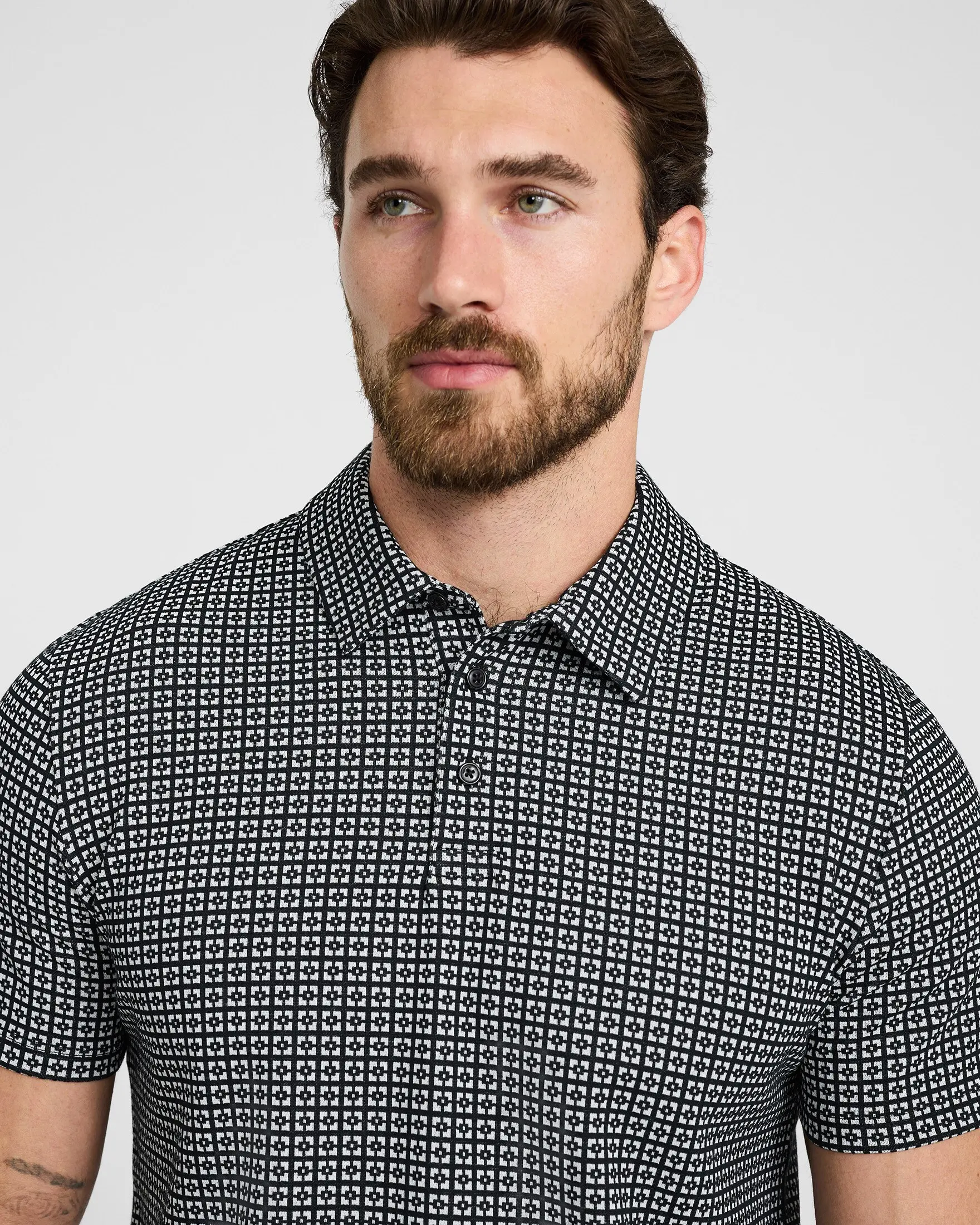 This timeless polo is designed with a point collar, a 3 button placket, and a textured geo block jacquard pattern. Layer with your favorite tank for a modern look or by itself for an easy go-to style.