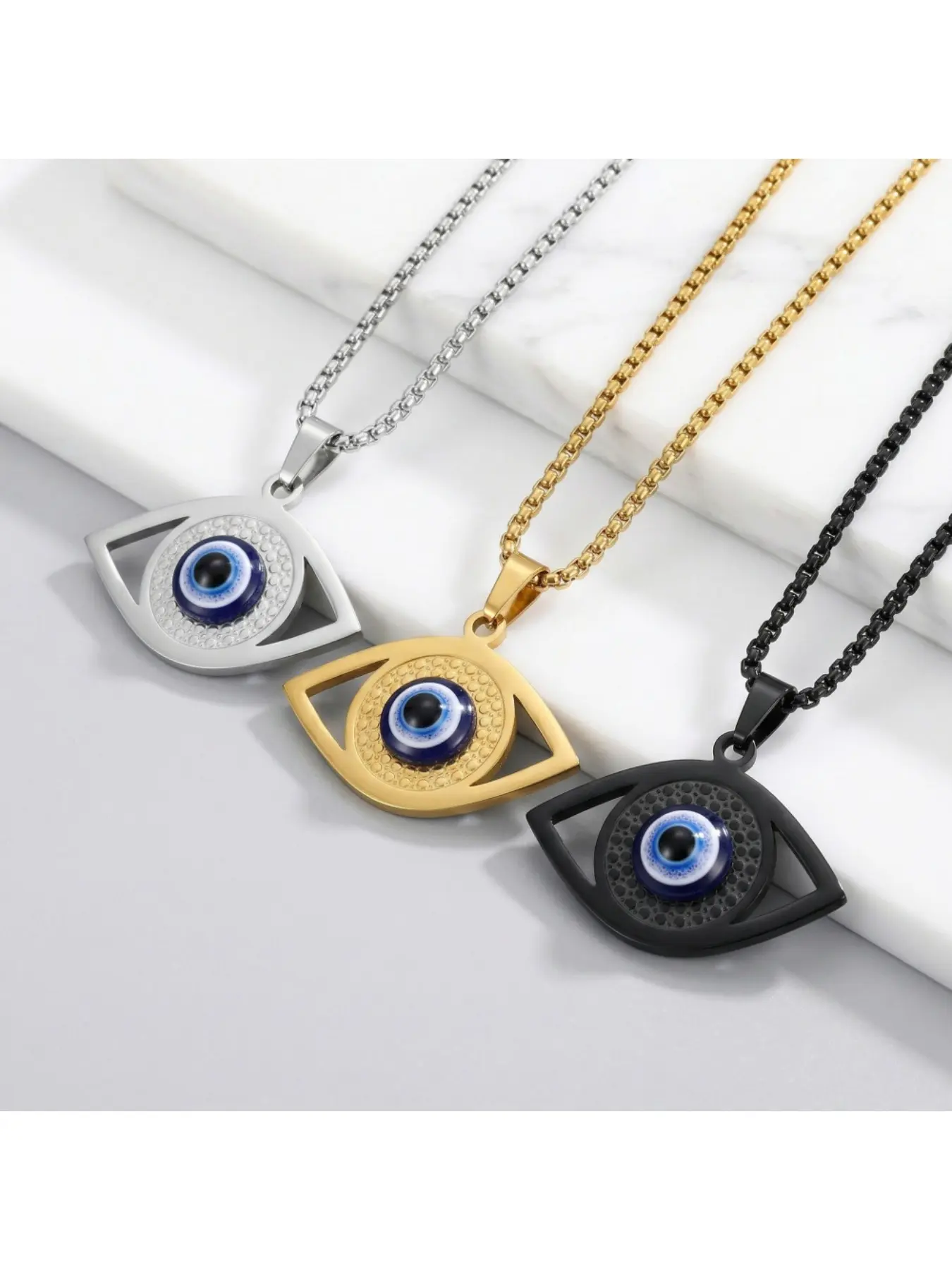 Classic Evil Eye Pendant Necklace - Stainless Steel Turkish Eye Jewelry for Men/Women