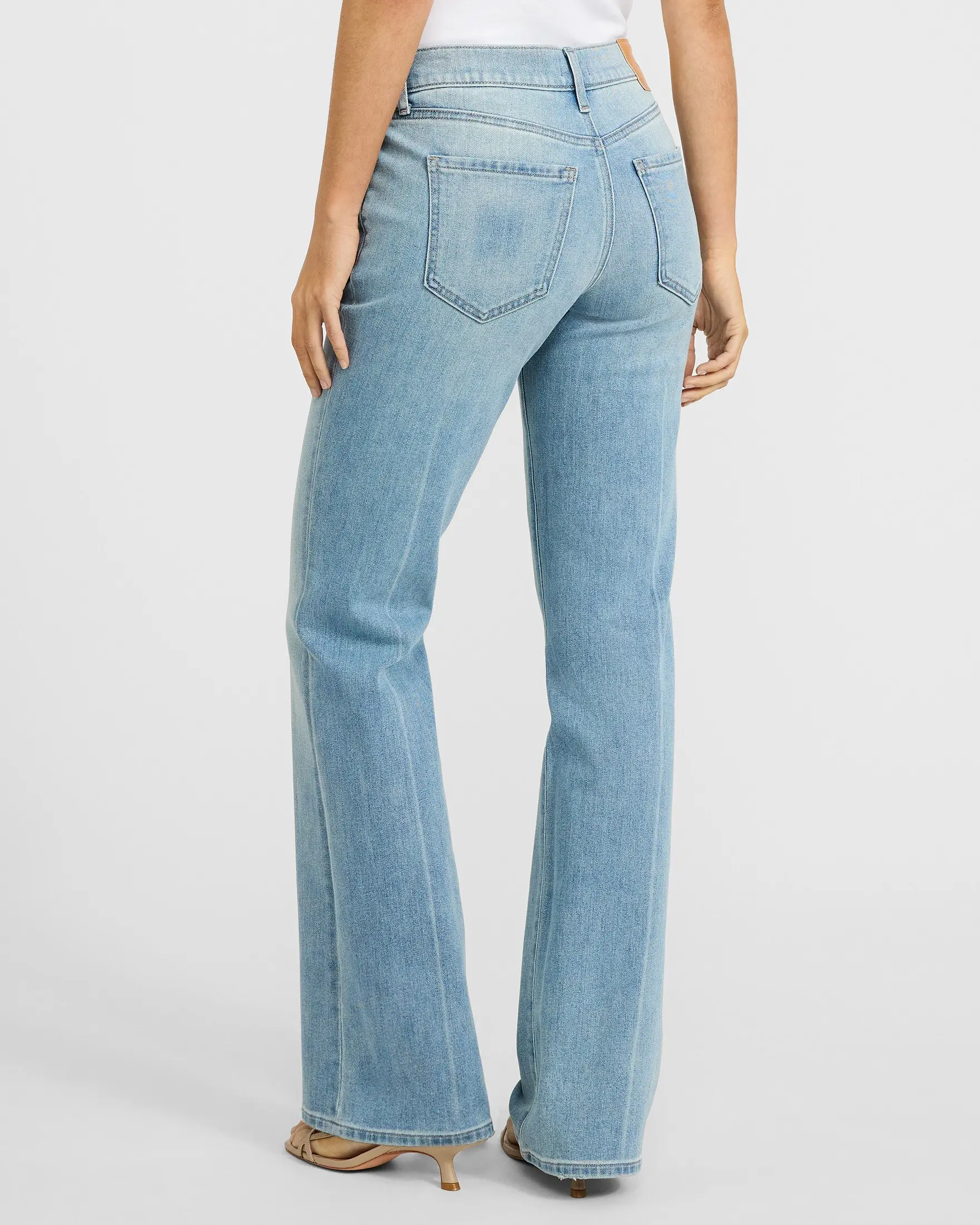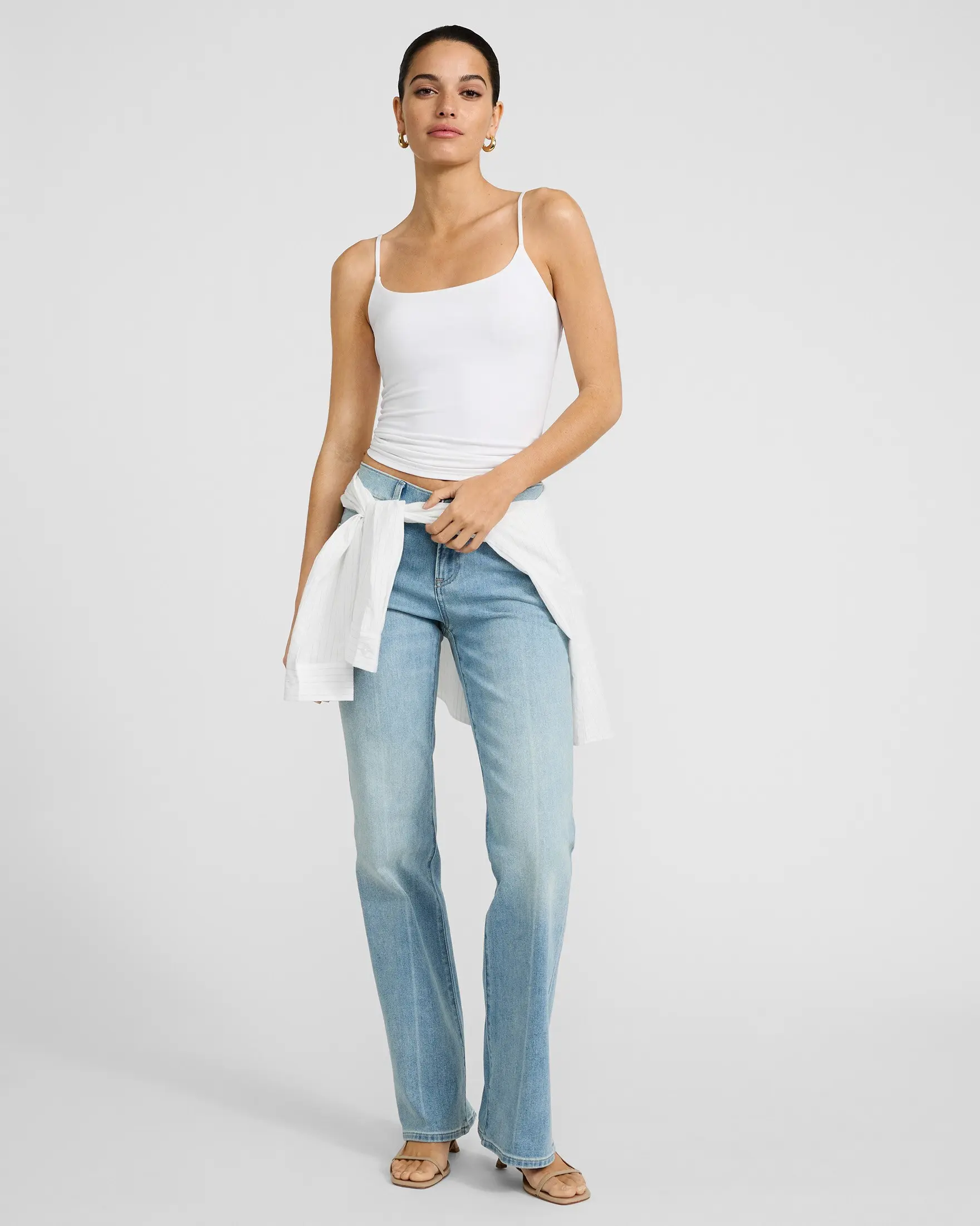Our sleek bootcut silhouette is designed to hug your hips and thighs while gradually flaring out past the knees for a very flattering nod to the '90s. This pant offers a low rise fit, light wash, and soft stretch fabric to keep you comfortable all-day long.