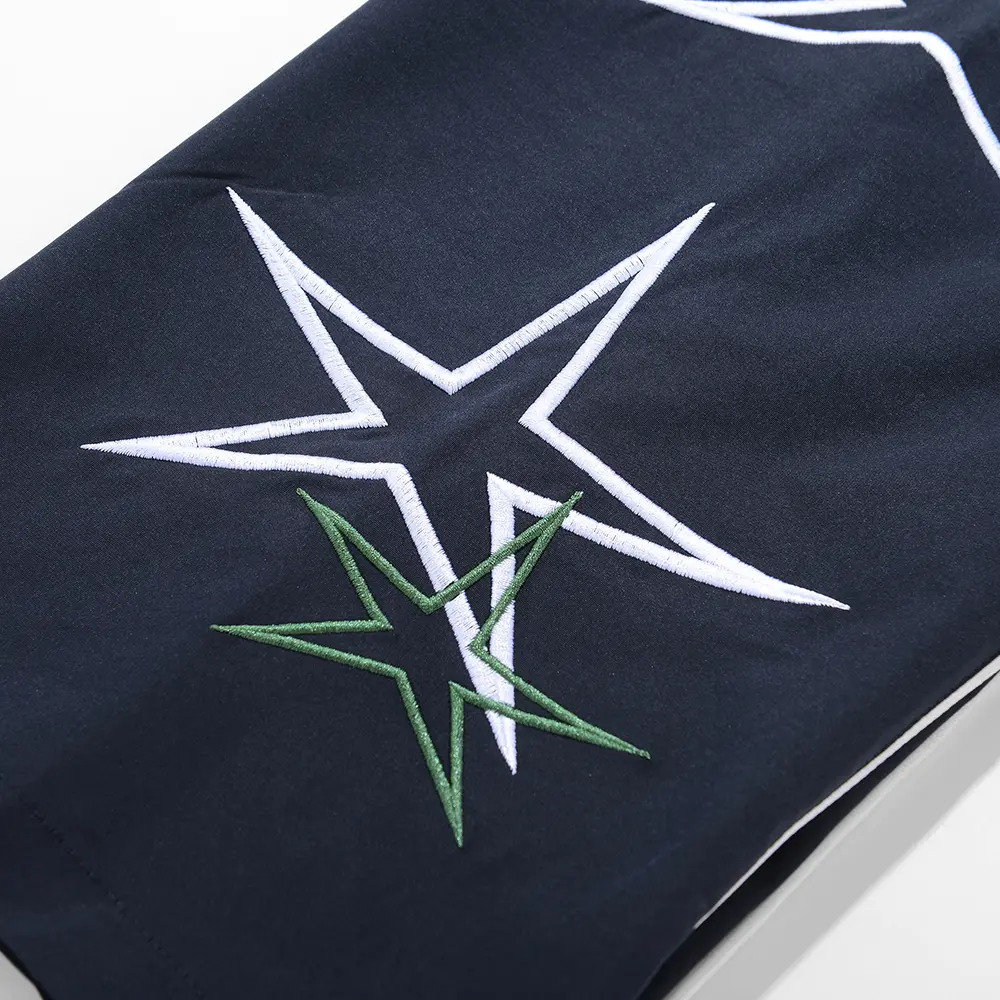 Spring/summer lightweight men’s solid-color athletic casual pants—slim straight-leg joggers with an elastic drawstring waistband and vintage star embroidery; suitable for everyday wear and American street dance styles for both men and women.