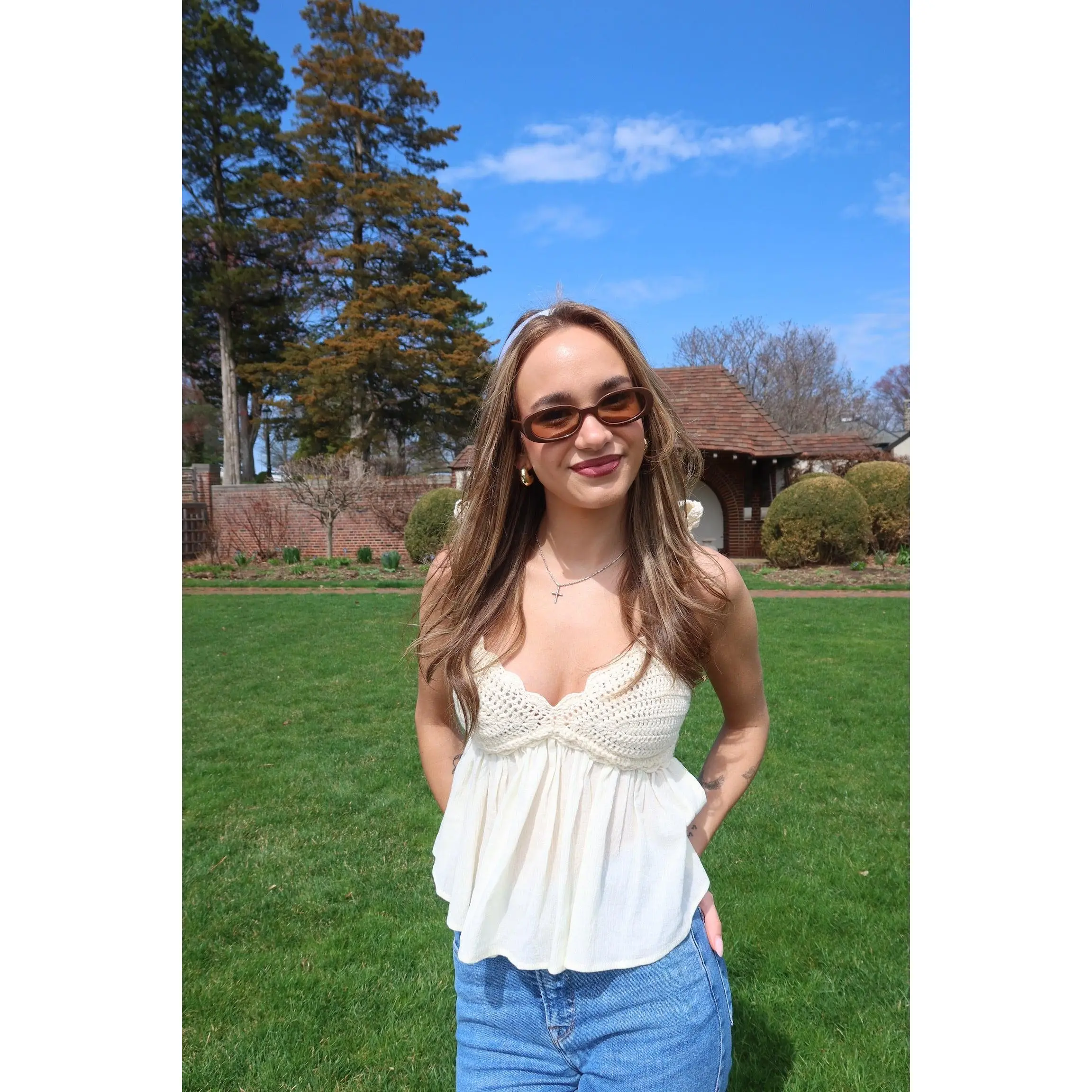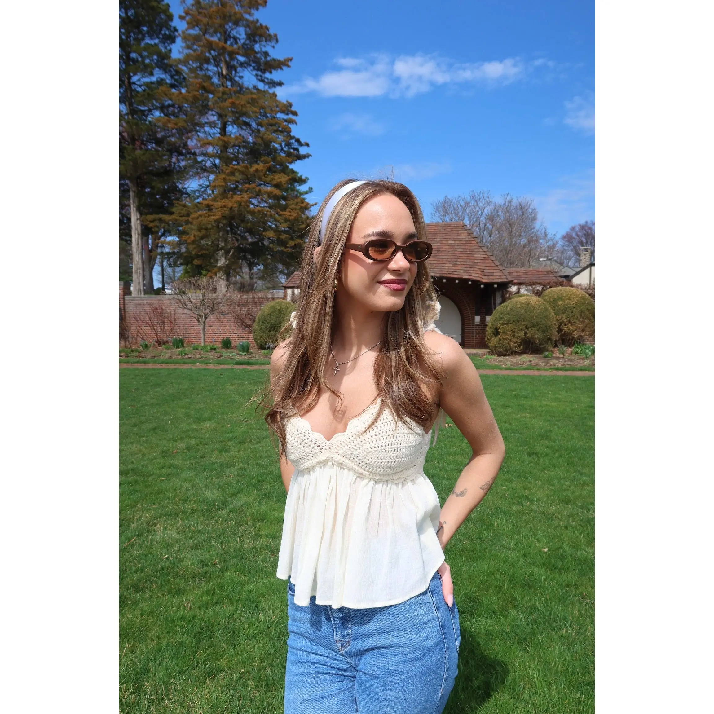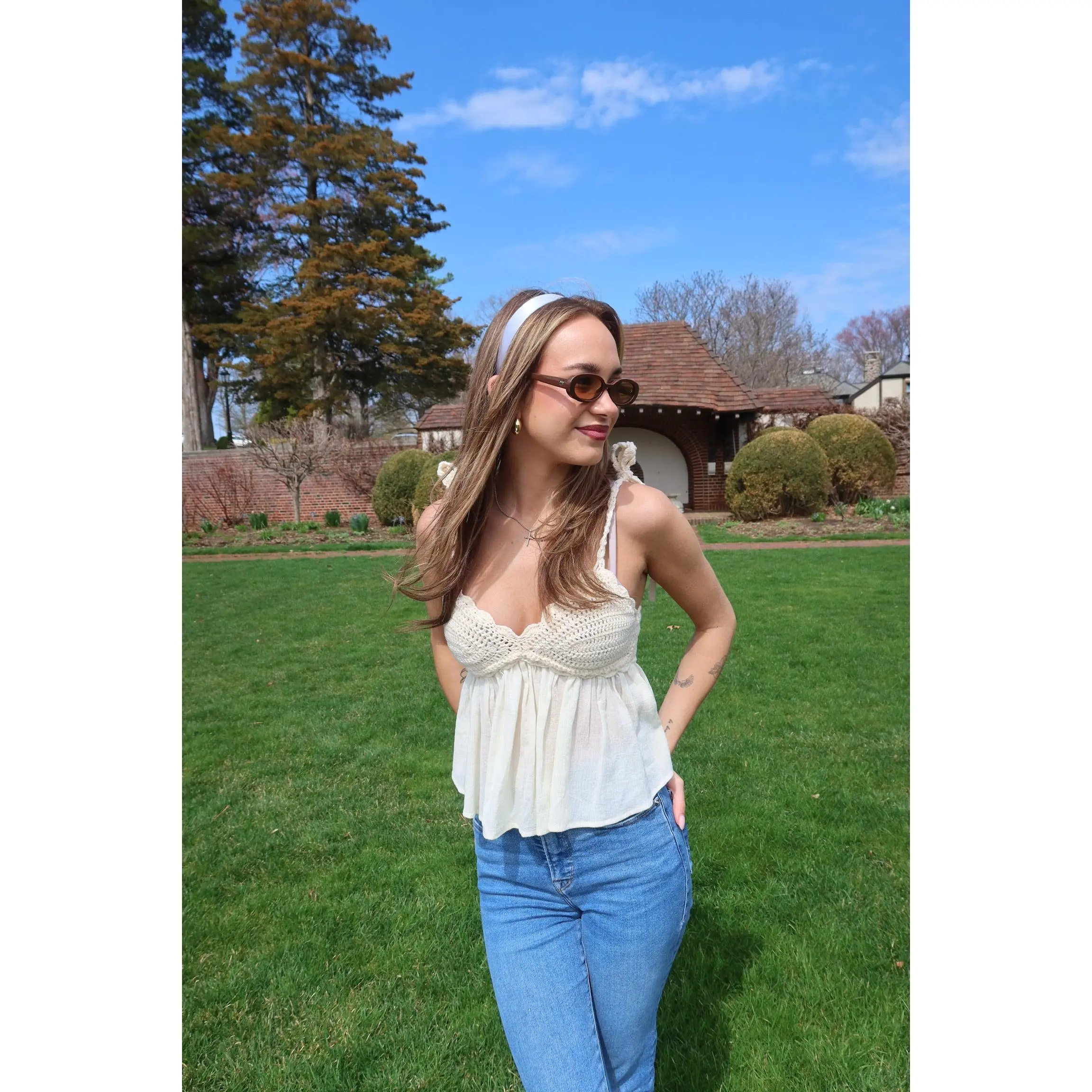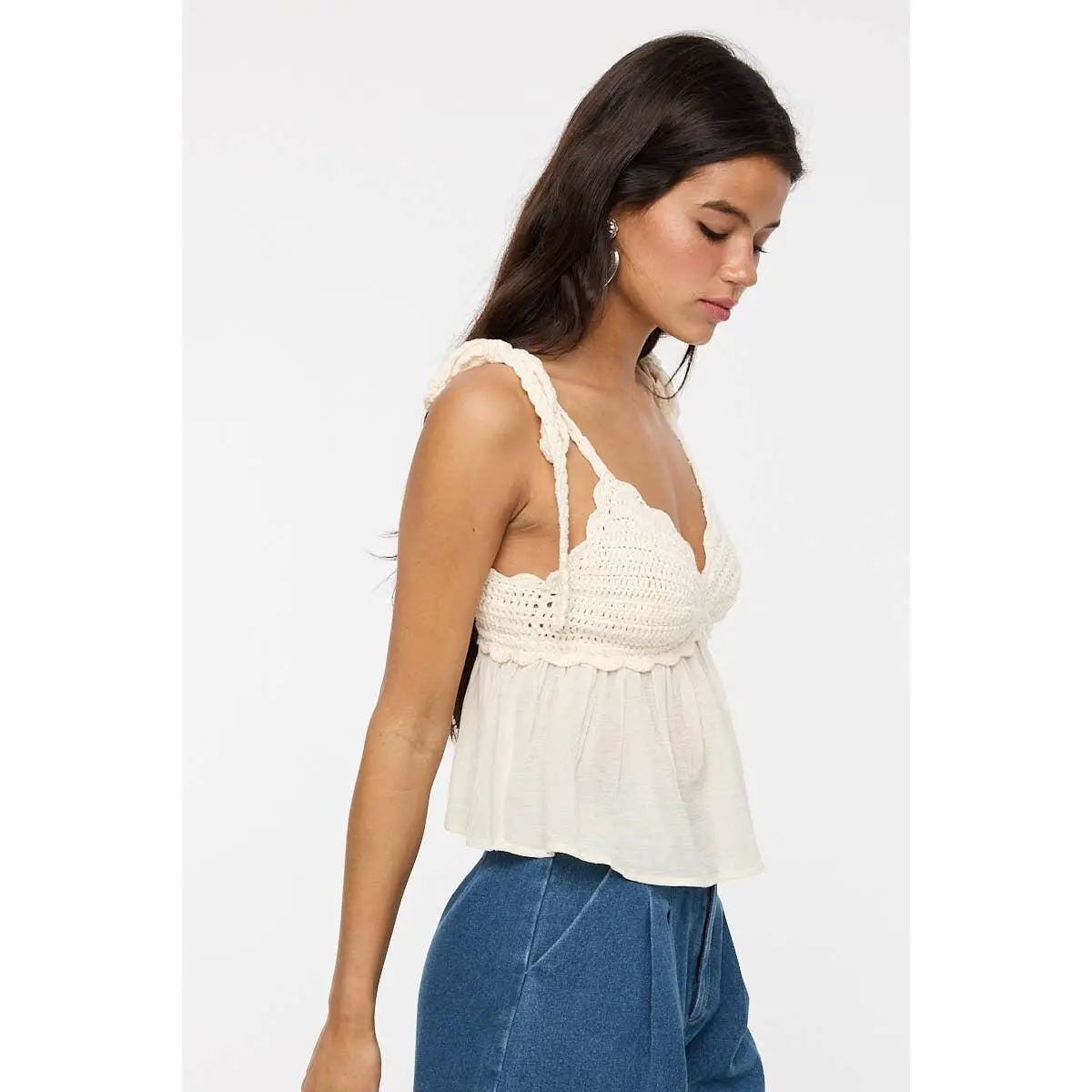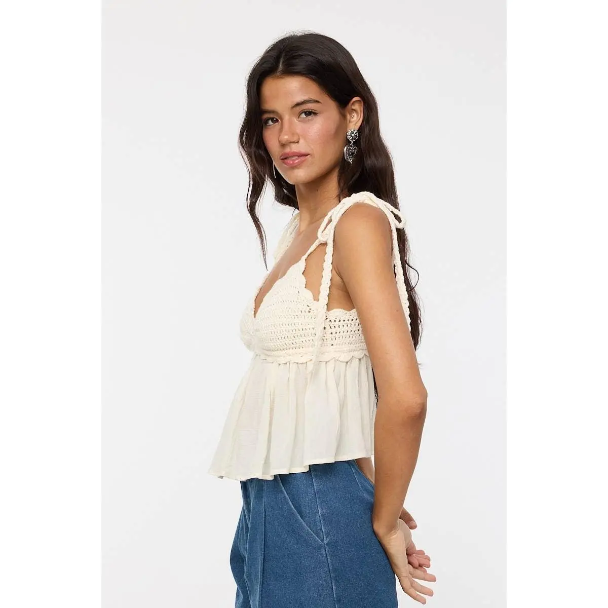 Effortlessly chic and breathable, the Luna Crochet & Linen Tank Top is a standout staple for warm-weather styling. Designed in a soft cream hue, this elevated tank features a beautifully detailed crochet bralette-style bodice that adds texture and a feminine, handcrafted feel.
