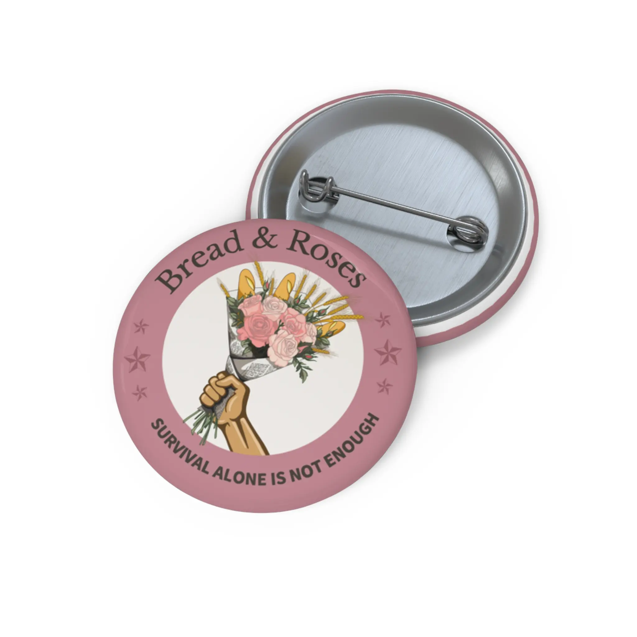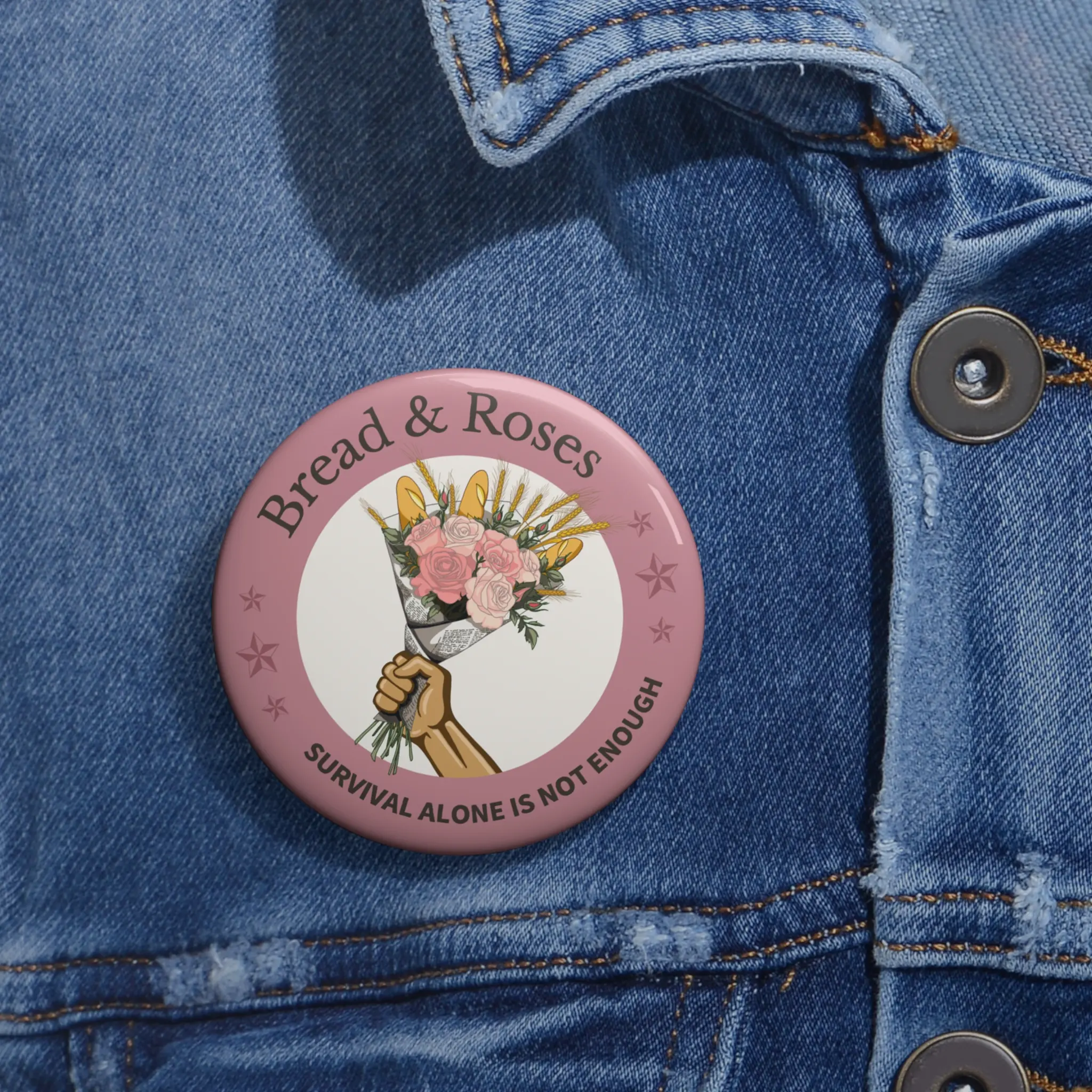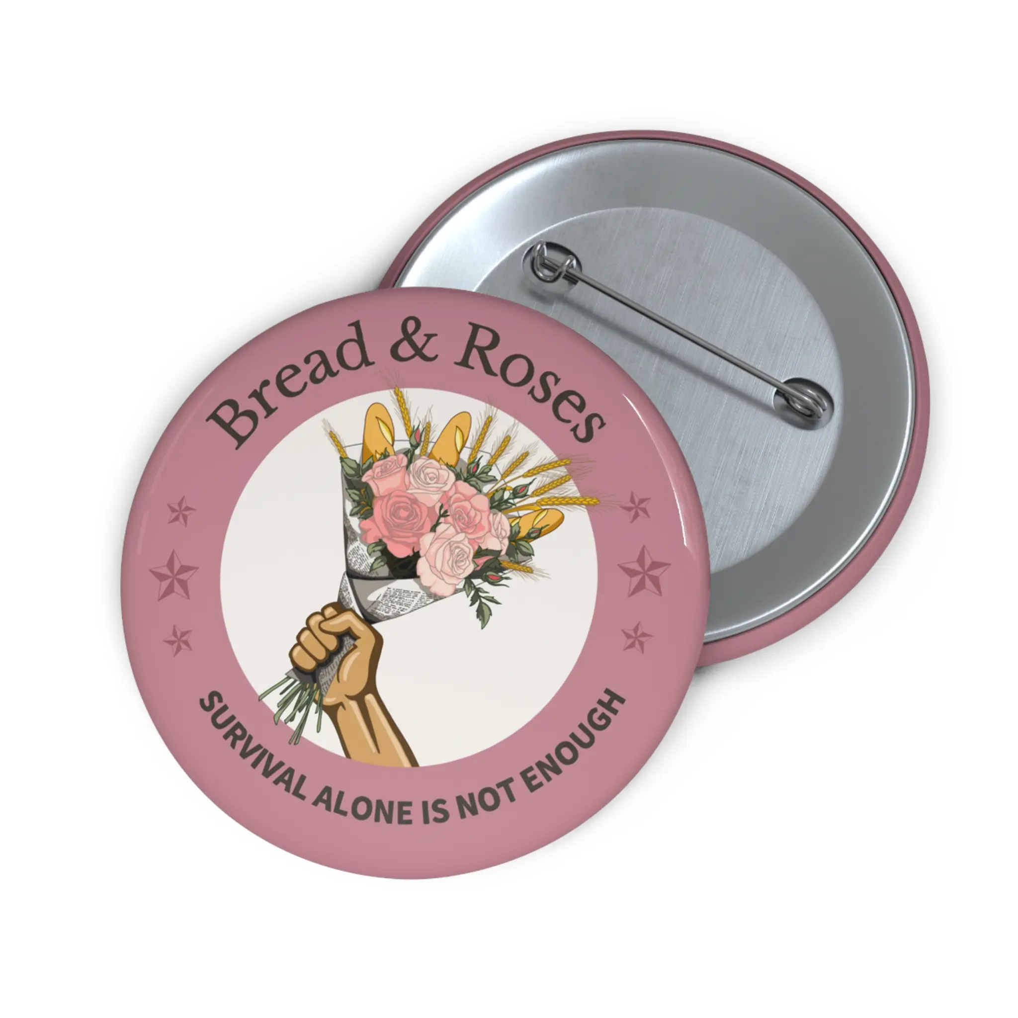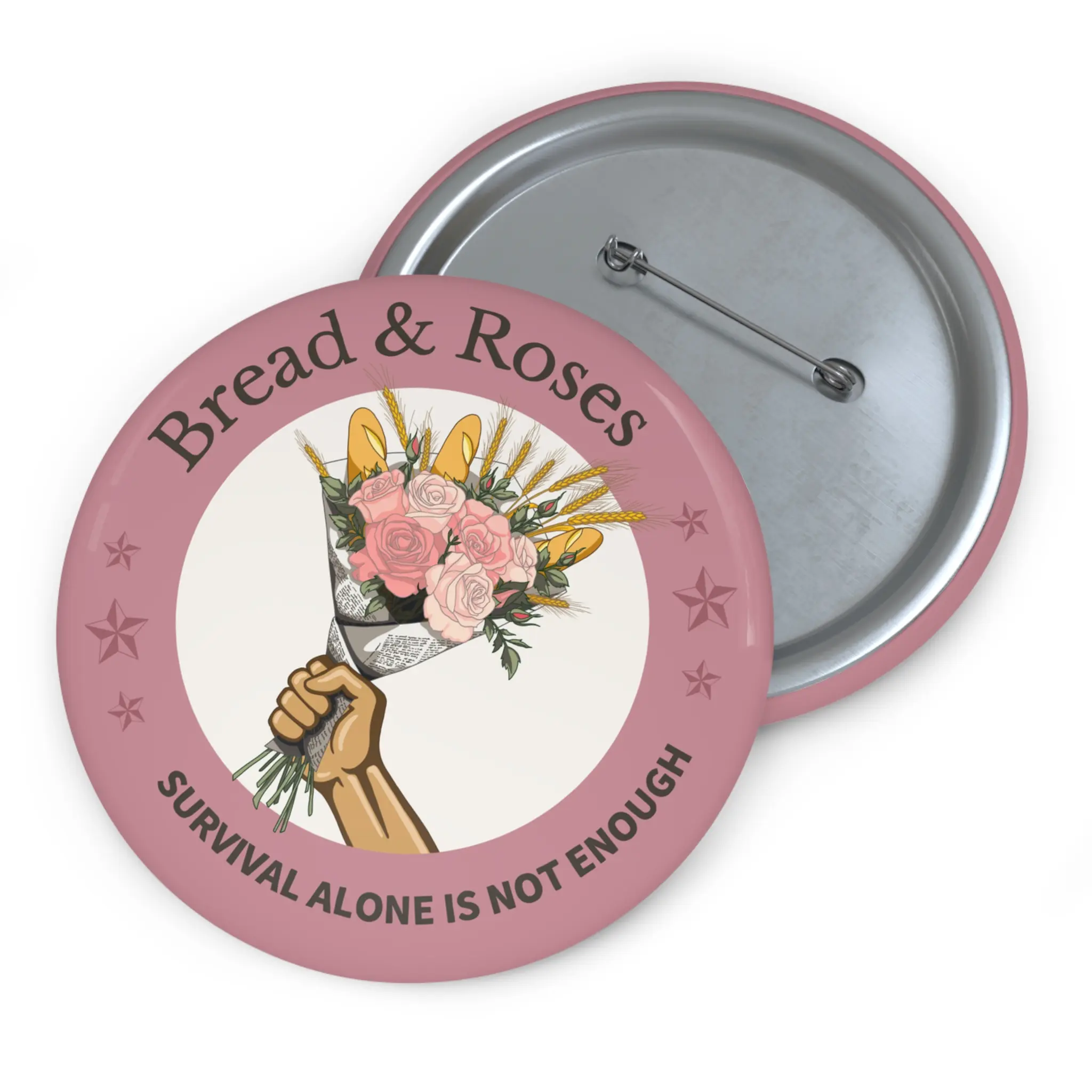 This design features the Bread & Roses bouquet held in a raised hand, with the phrase wrapped around it as a reminder of what that really means.