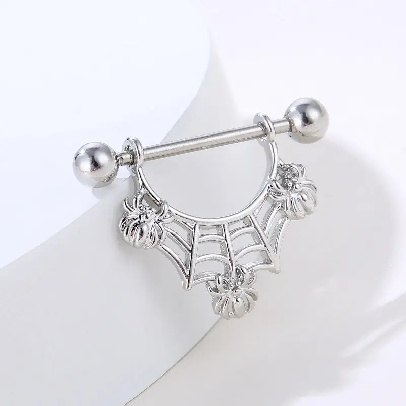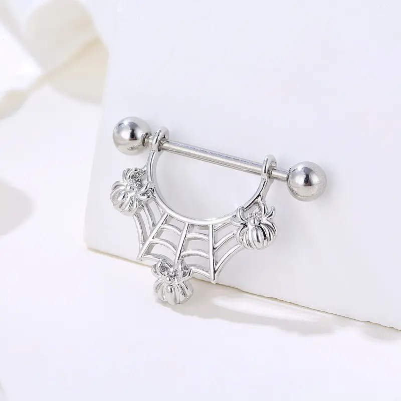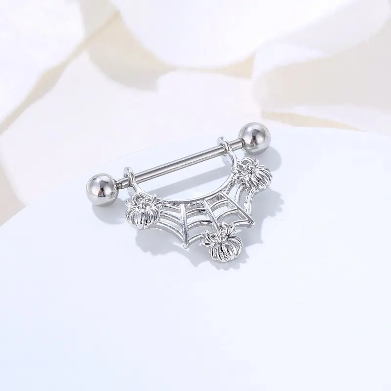 Vampire Teeth Nipple Ring, Stainless Steel Barbell, Creative Body Piercing Jewelry