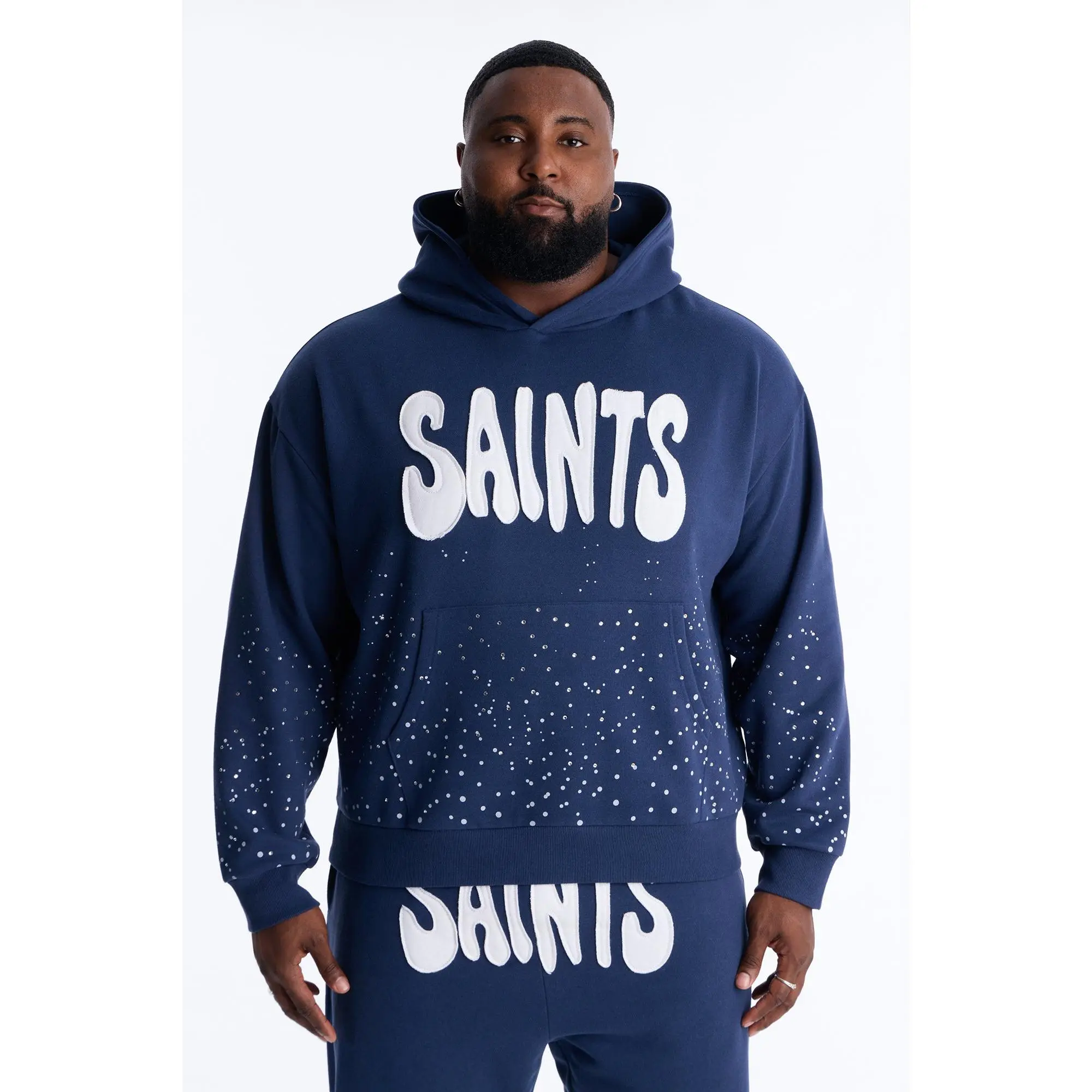5. Saints Rhinestones Oversized Hoodie - Navy