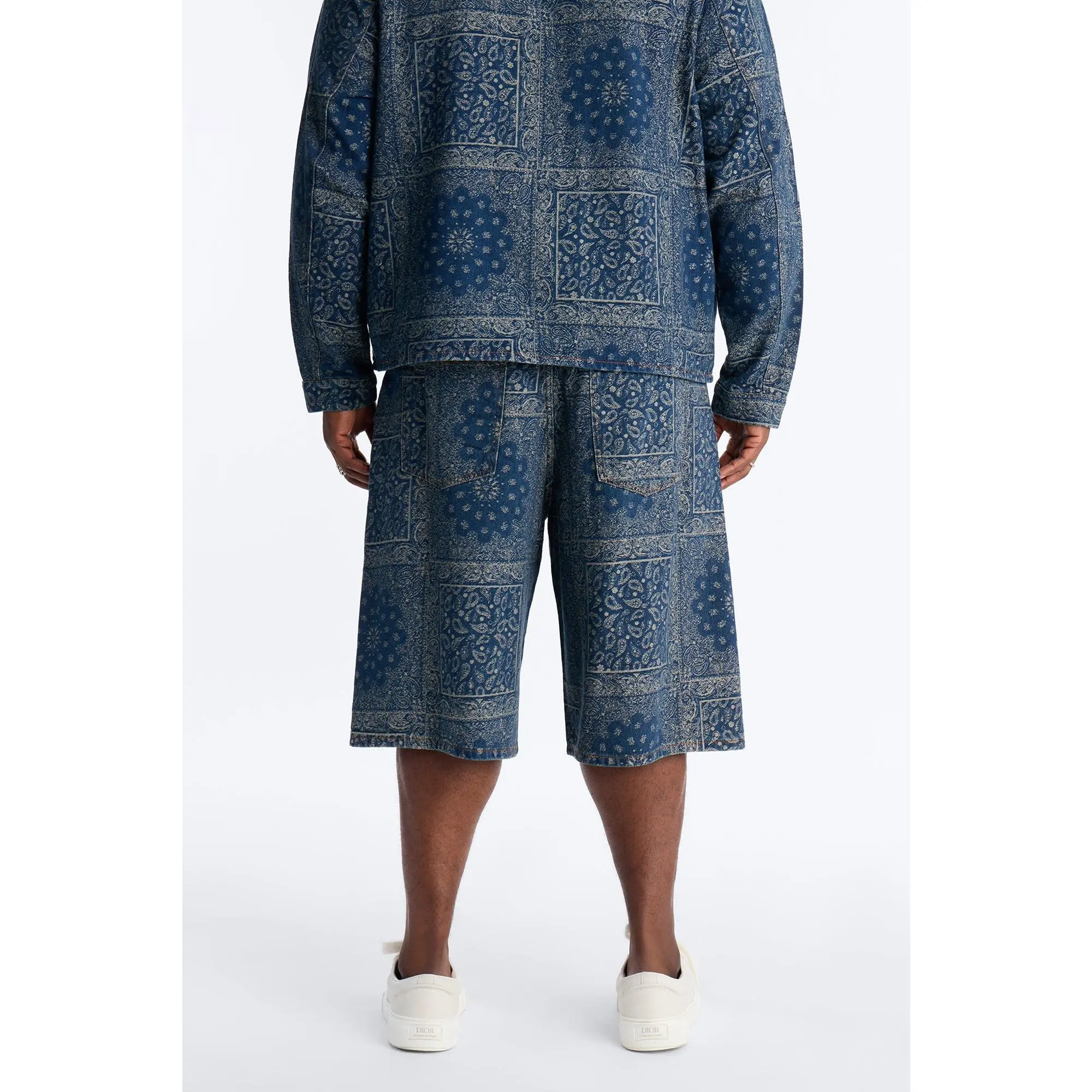 5. Baggy Street Paisley Denim Short - Dark Wash