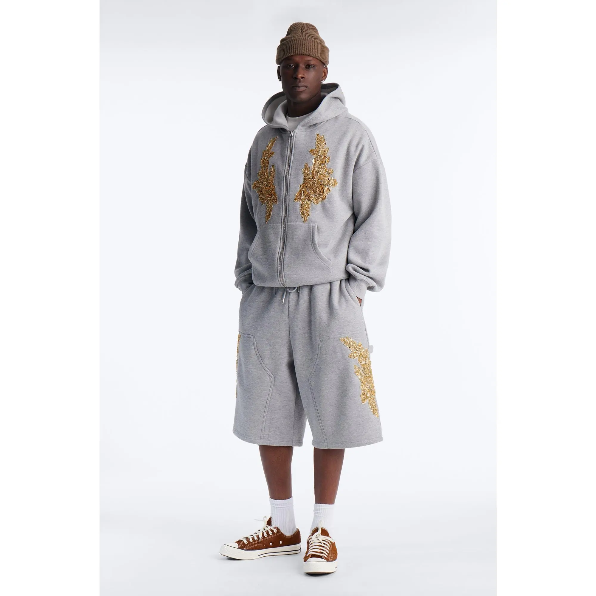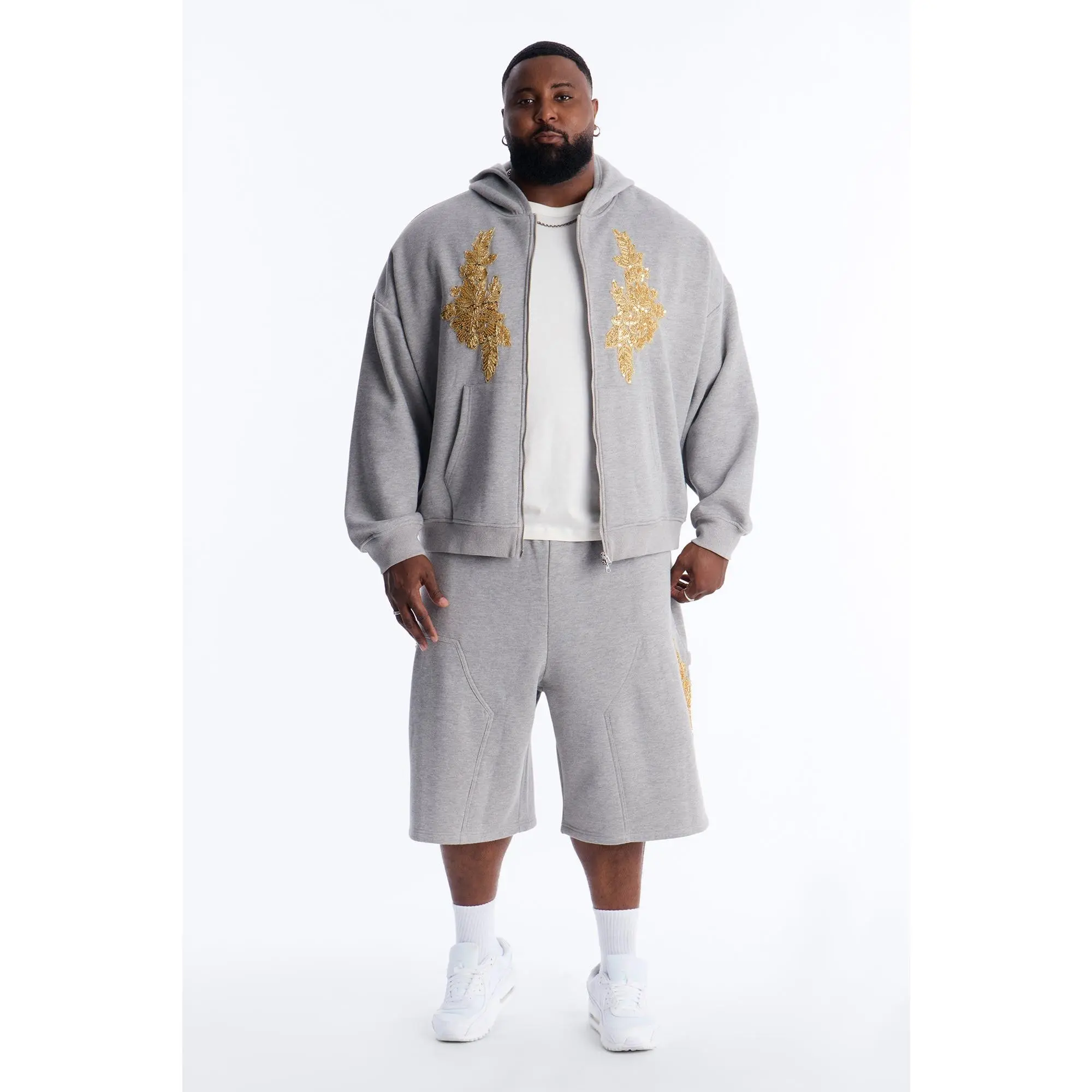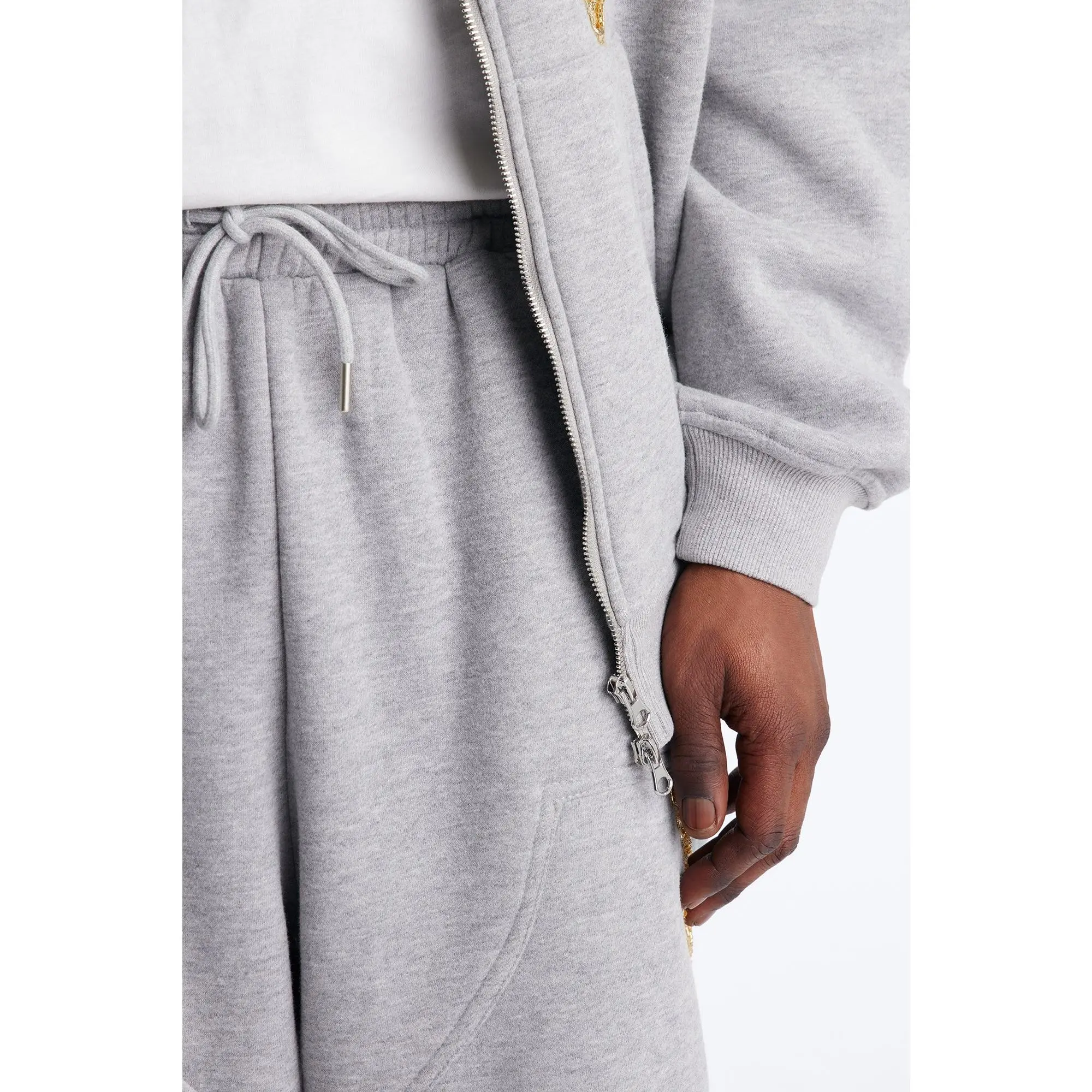 ·Pair With "Oversized Rogue Sequin Applique Zip Up Hoodie - Grey"