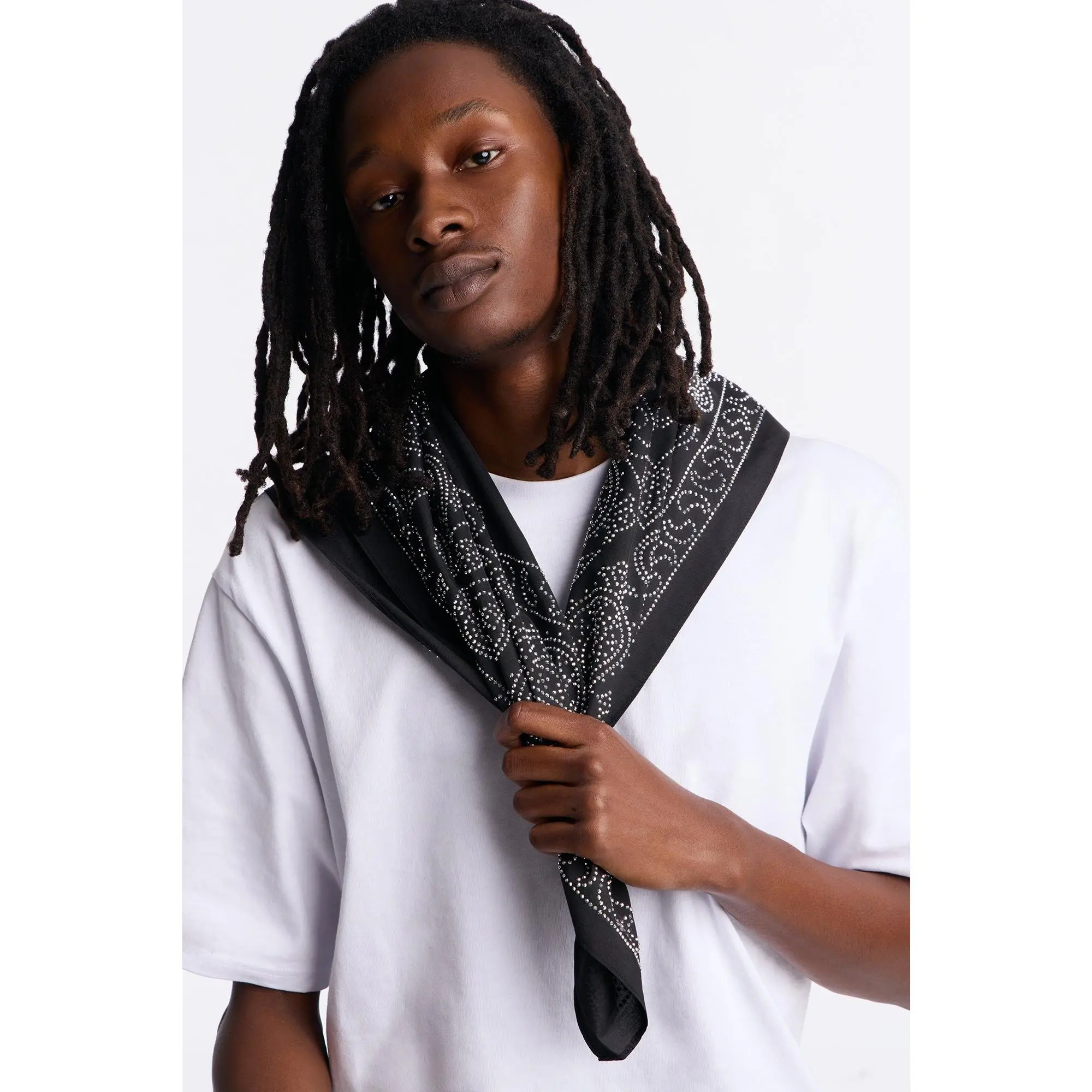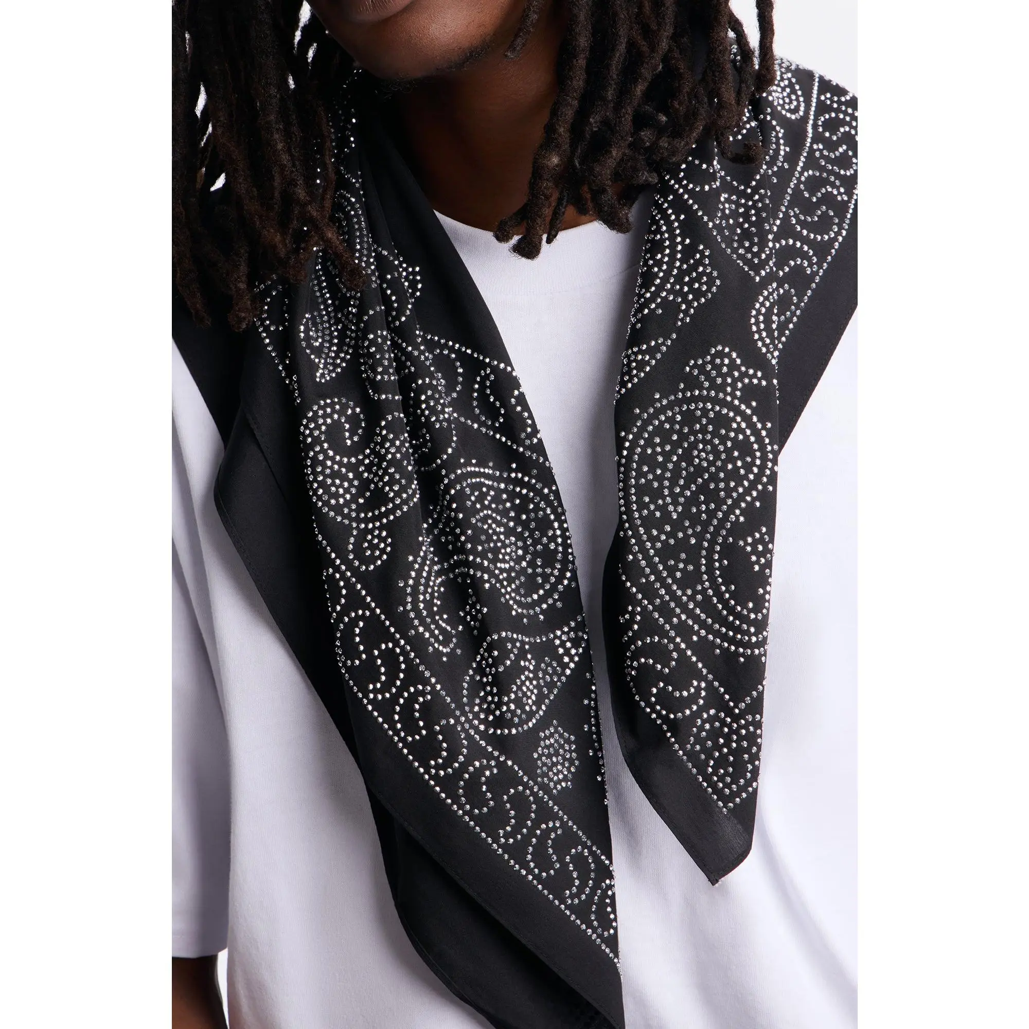 5. Rhinestone Embellished Paisley Bandana - Black