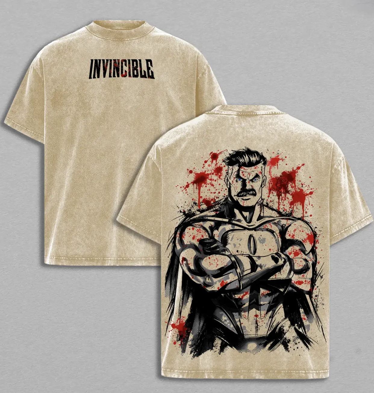 5. Omni-Man Washed Tee & Hoodie - Invincible Viltrumite Warrior Anime Graphic Double Printed T-Shirt, Menswear Heavy Cotton Unisex Oversize Streetwear Vintage Retro