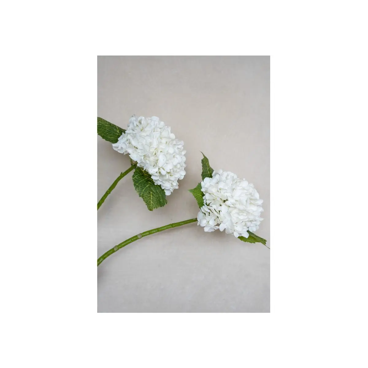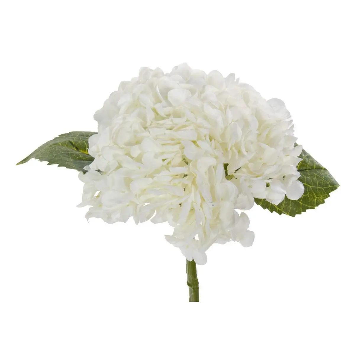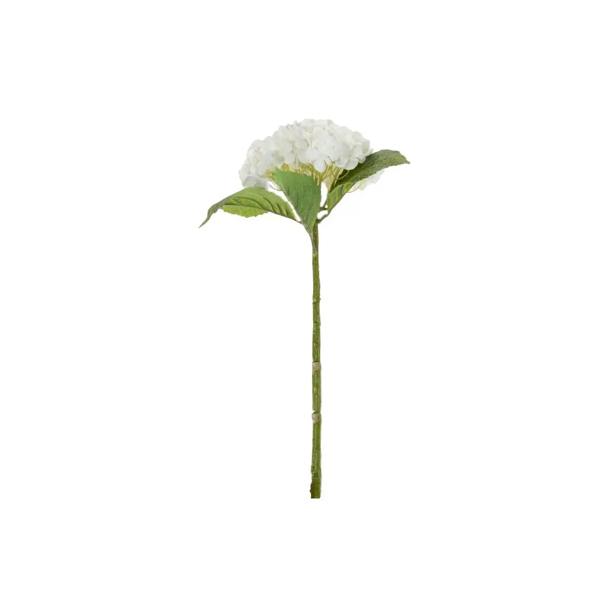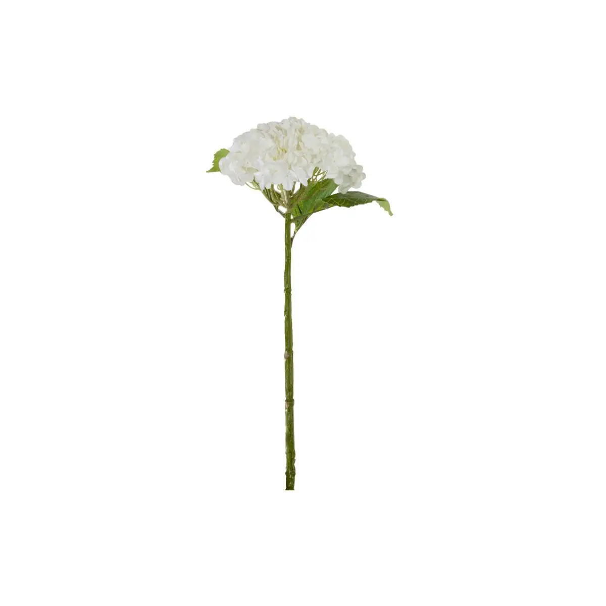 This faux hydrangea lends a fresh, ethereal touch. Its tall stem supports a beautiful blossom of lifelike white flowers complemented by green leaves. Create a sophisticated look by displaying clustering multiples for an elevated design.