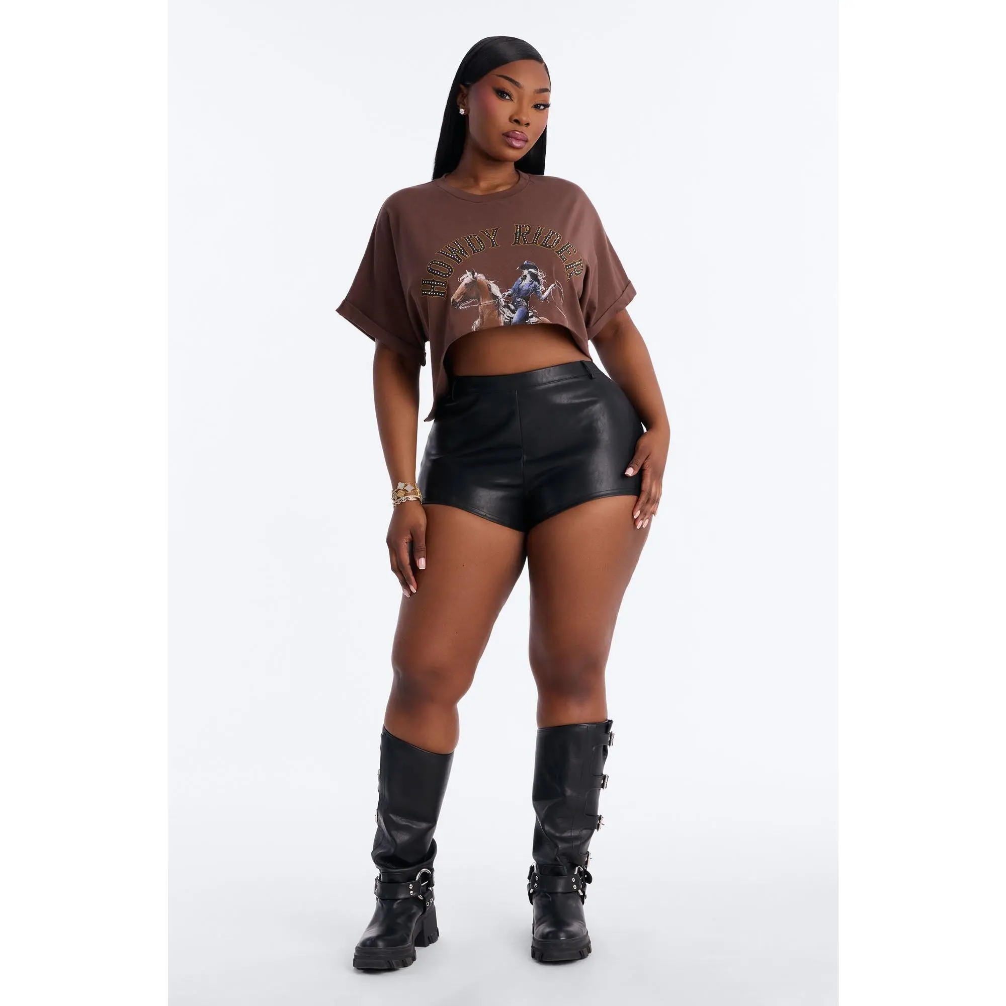 5. Howdy Rider Rhinestone Cropped Tee - Brown