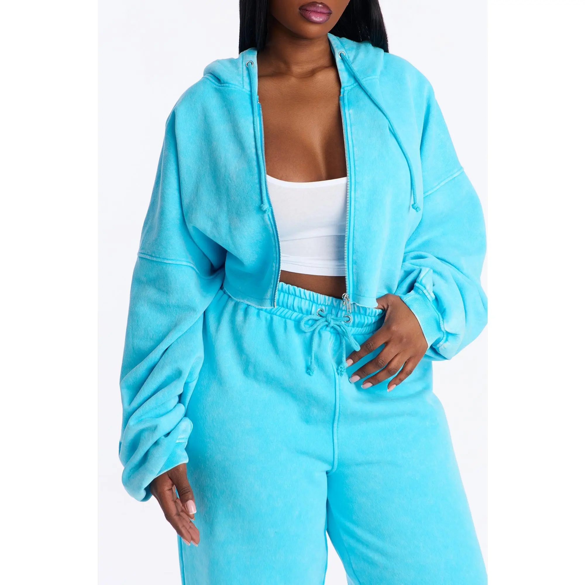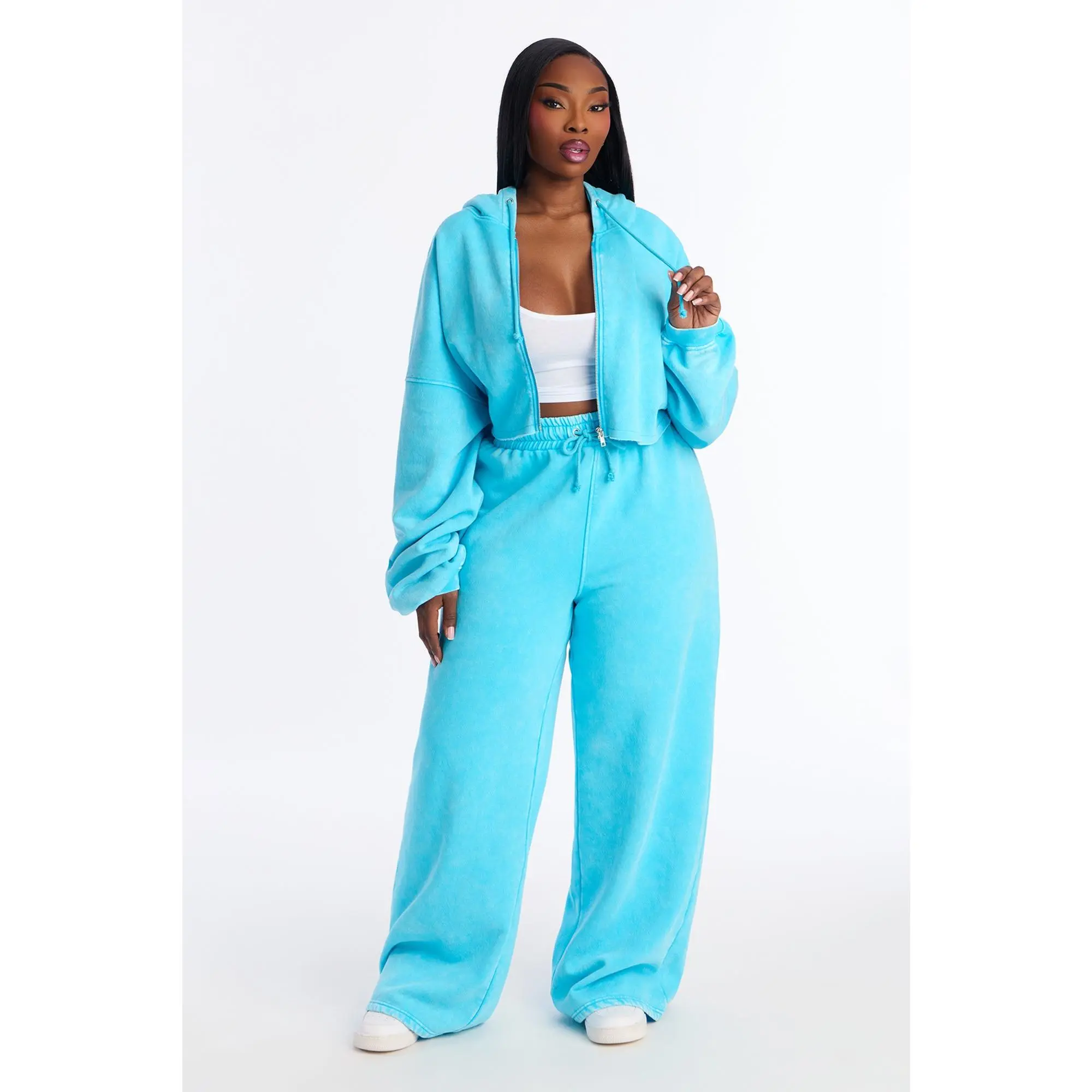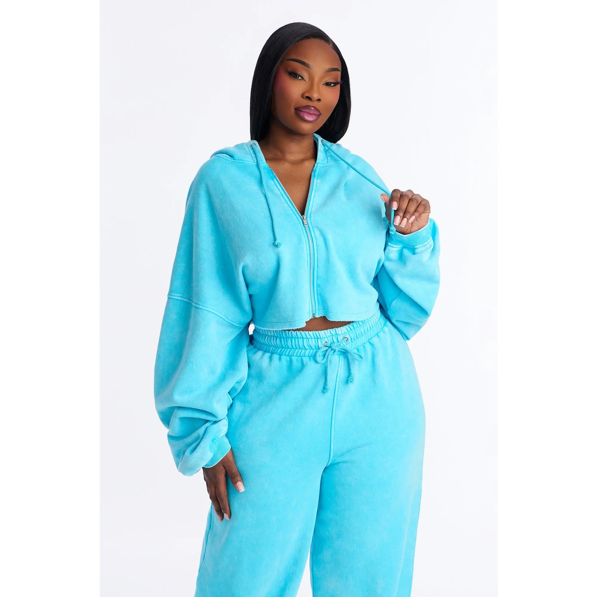 5. On The Go Fleece Pant Set - Aqua