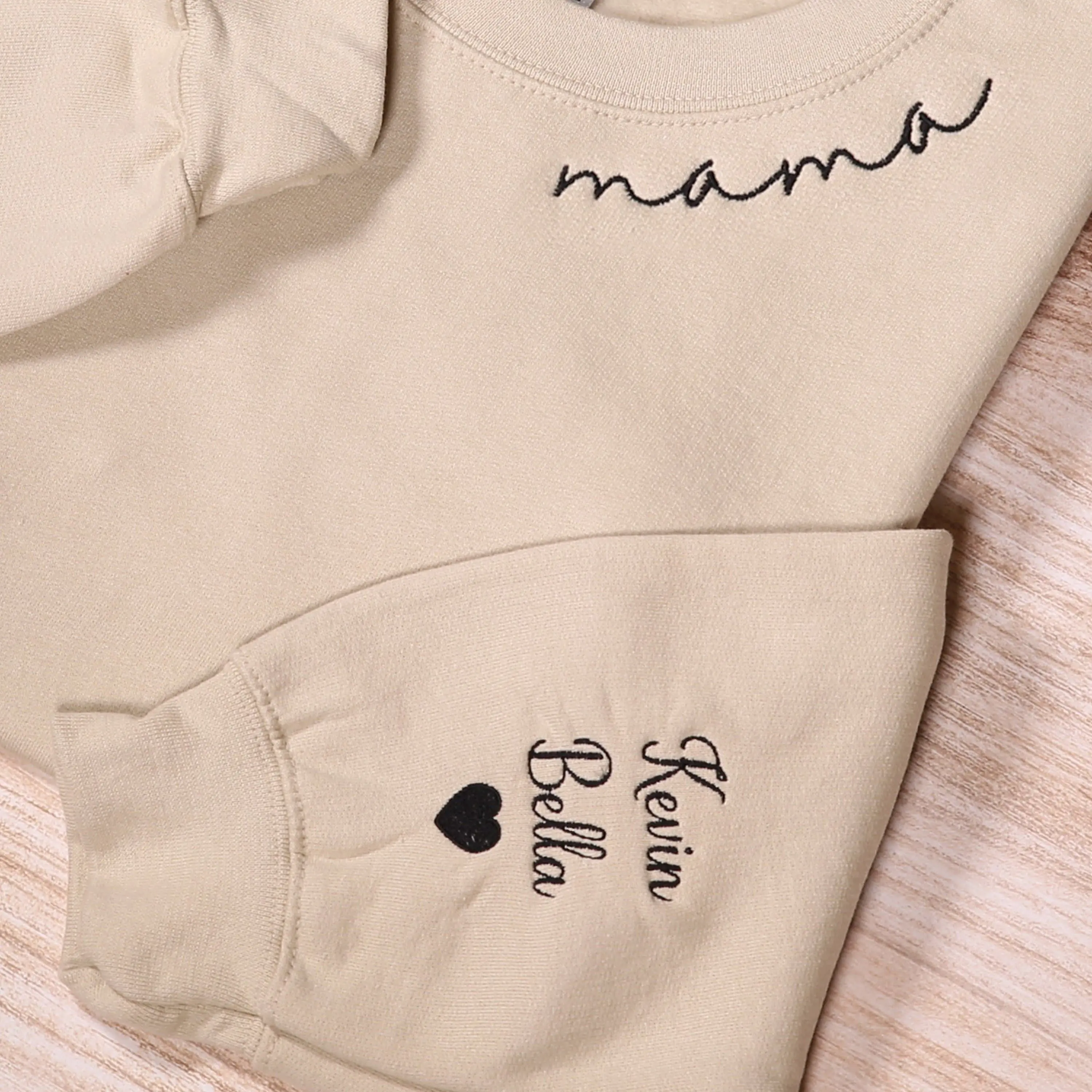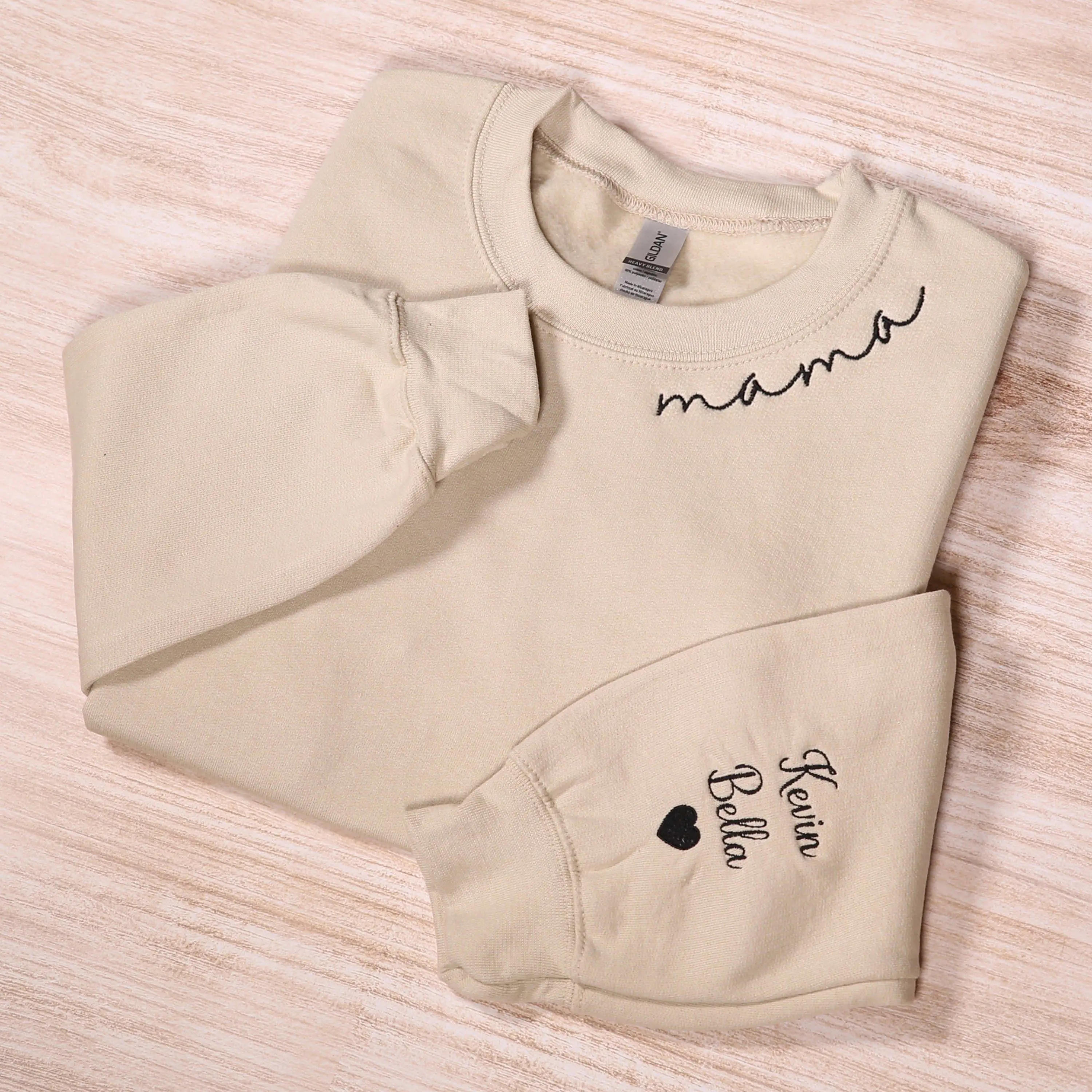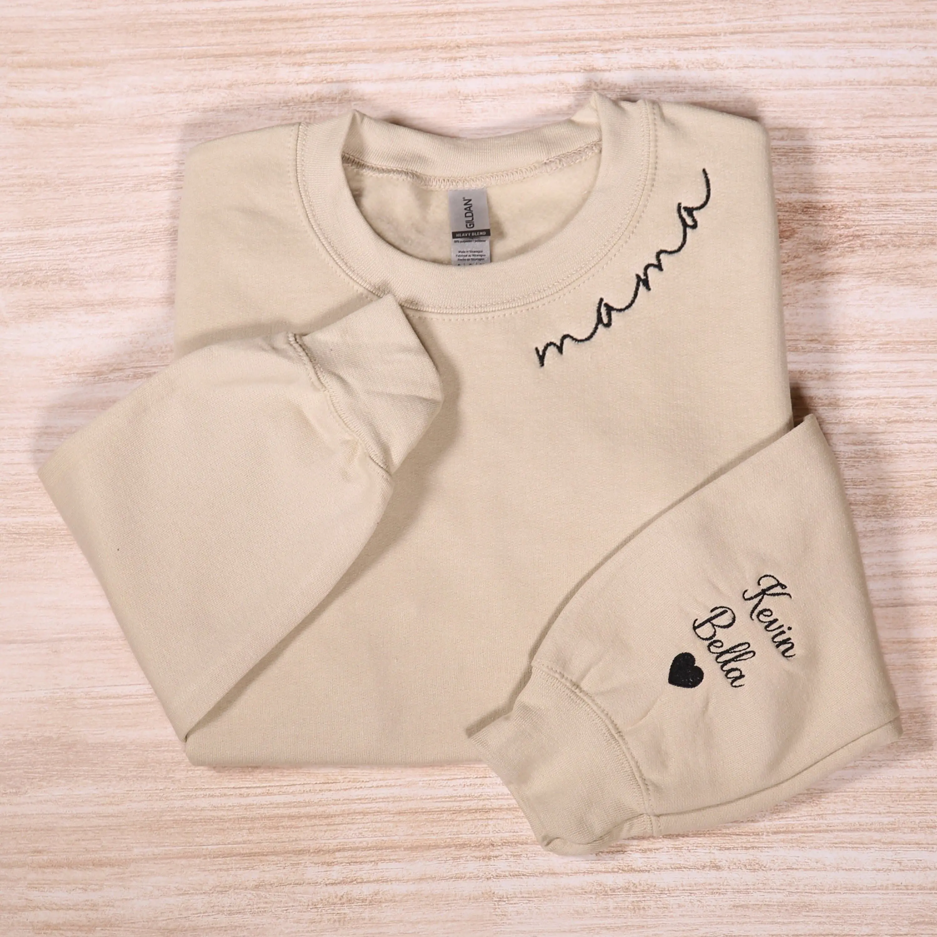 Custom Embroidered Mama Sweatshirt With Kids Names Sleeve, Personalized Mom Hoodie, Pregnancy Announcement Outfit, Mommy Mothers Day Gifts