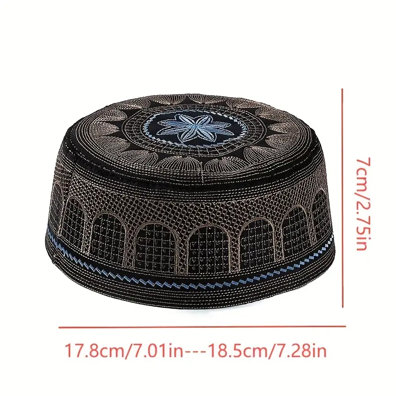 Men's Lightweight Breathable Mesh Arab Prayer Hat - Summer Summer Mubarak Muslim Taqiyah Cap for Ramadan, Eid & Casual Wear, PVC-Coated, Hand Washable, Solid Colors (Black/Grey/Brown/Beige), Religious Headwear | Arabic Pattern Hat | Durable Cap
